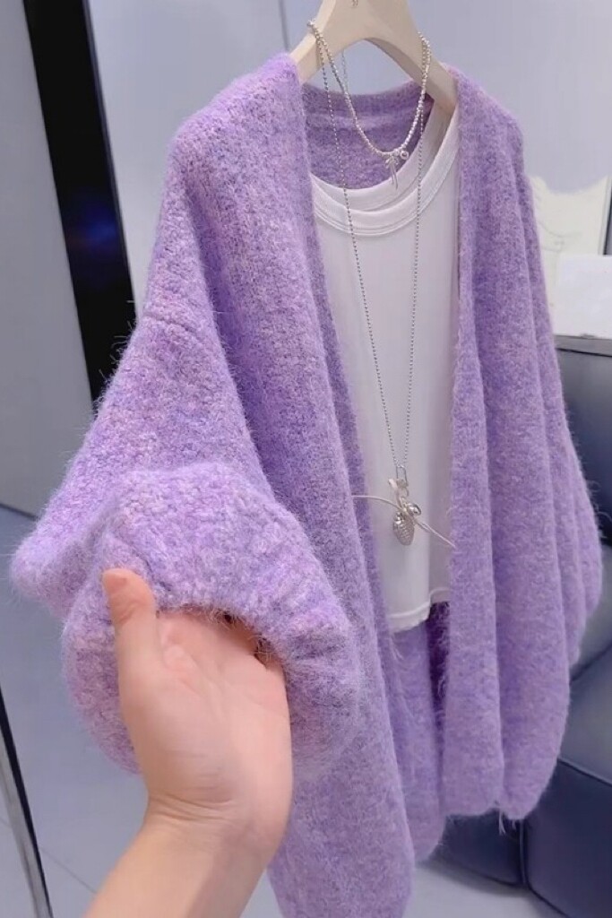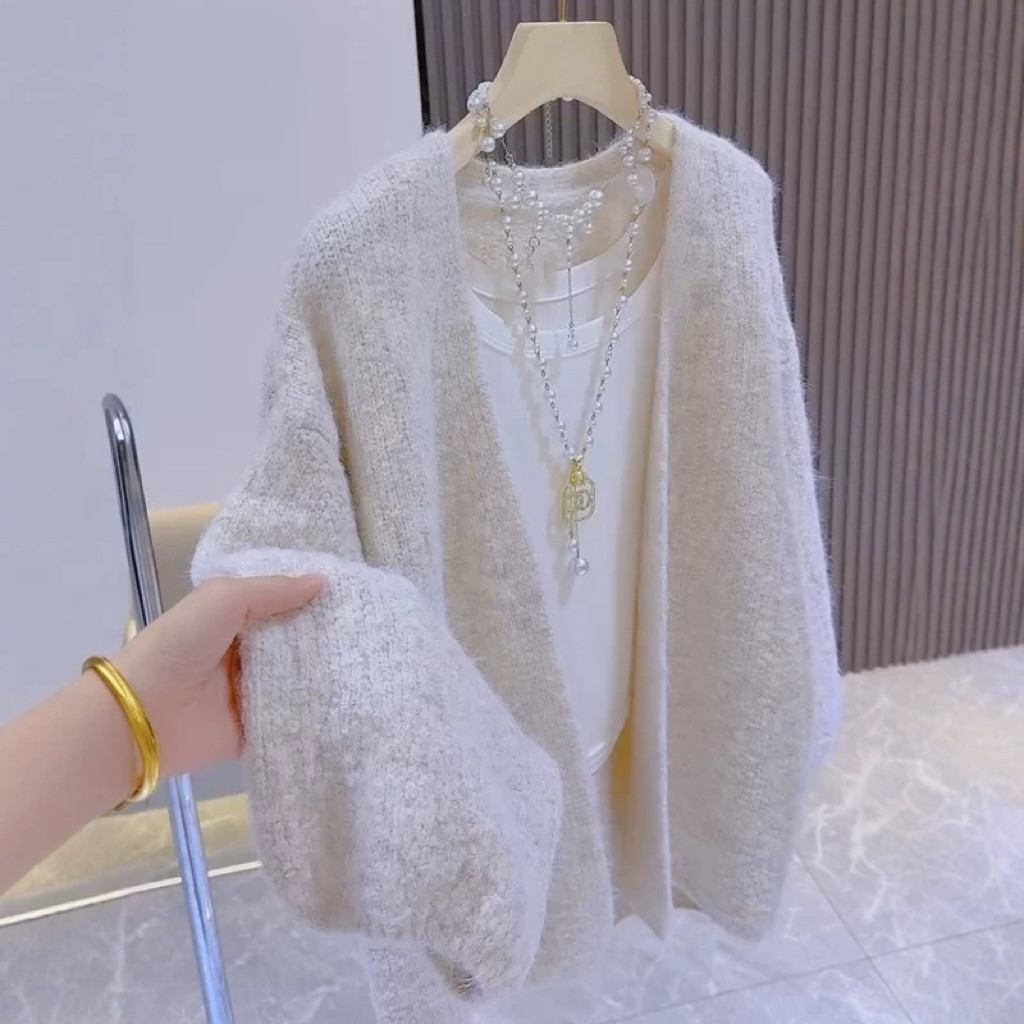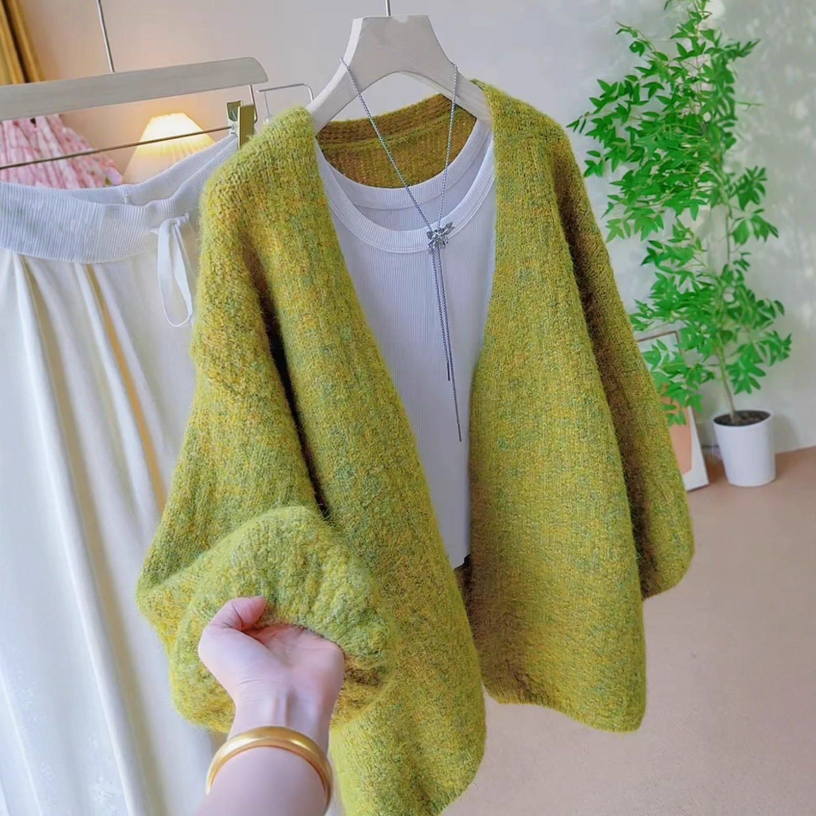 高級感中長款燈籠袖毛衣外套女早秋款慵懶寬松軟糯溫柔風針織開衫