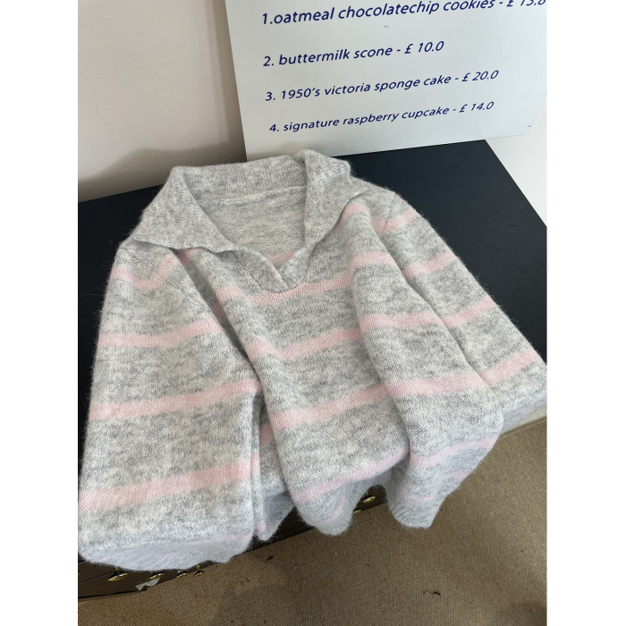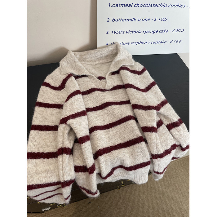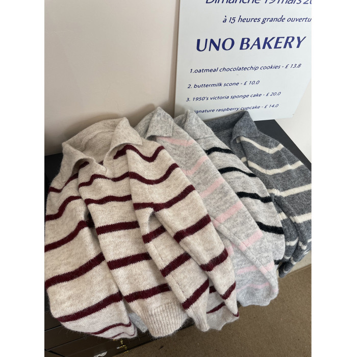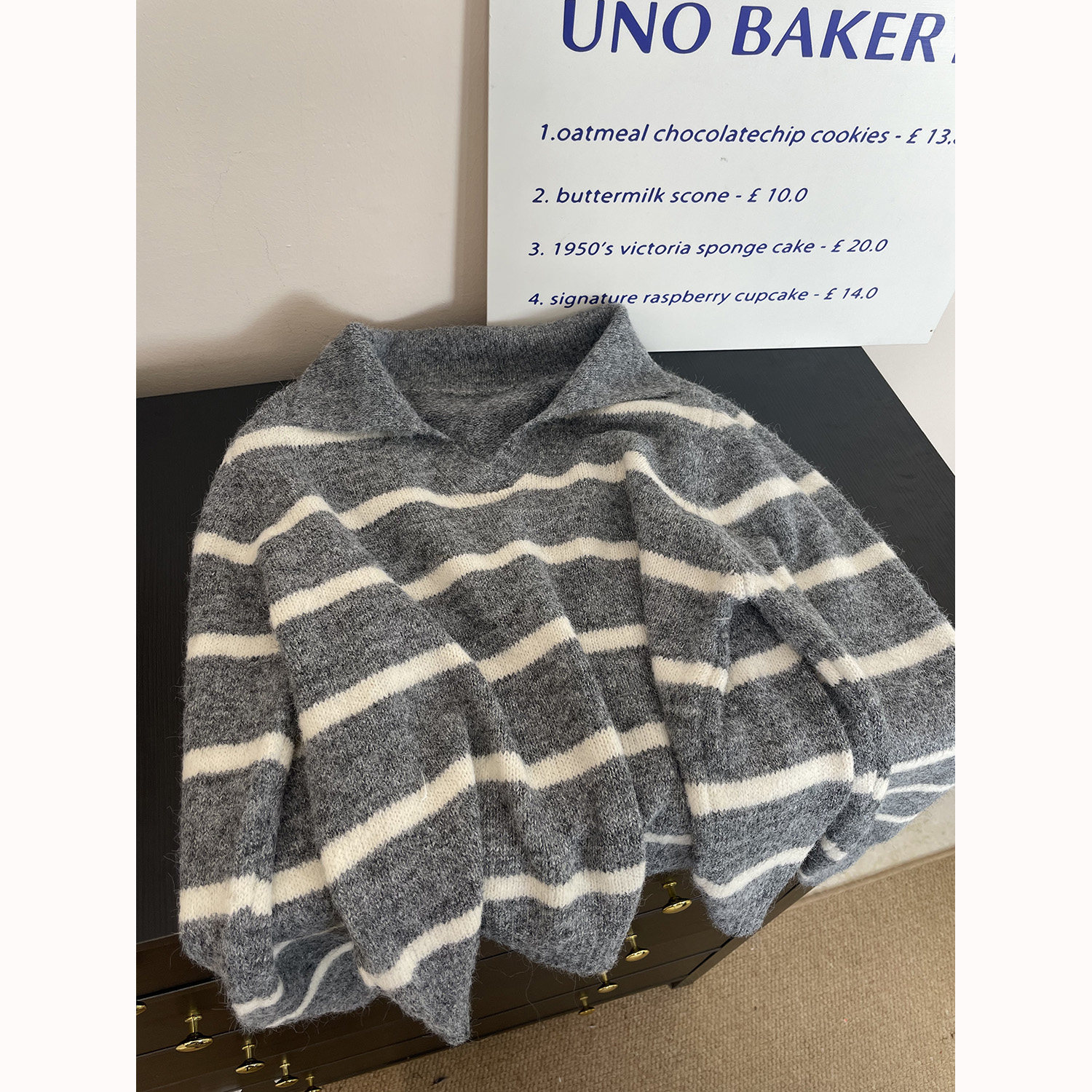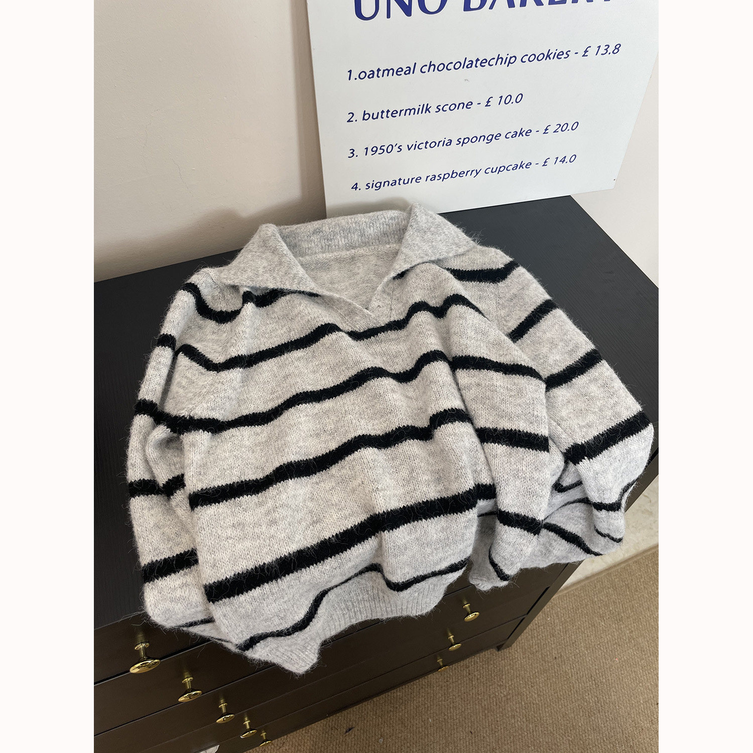 松弛感軟糯撞色條紋長袖毛衣女秋季2025新款百搭針織寬松小衆上衣