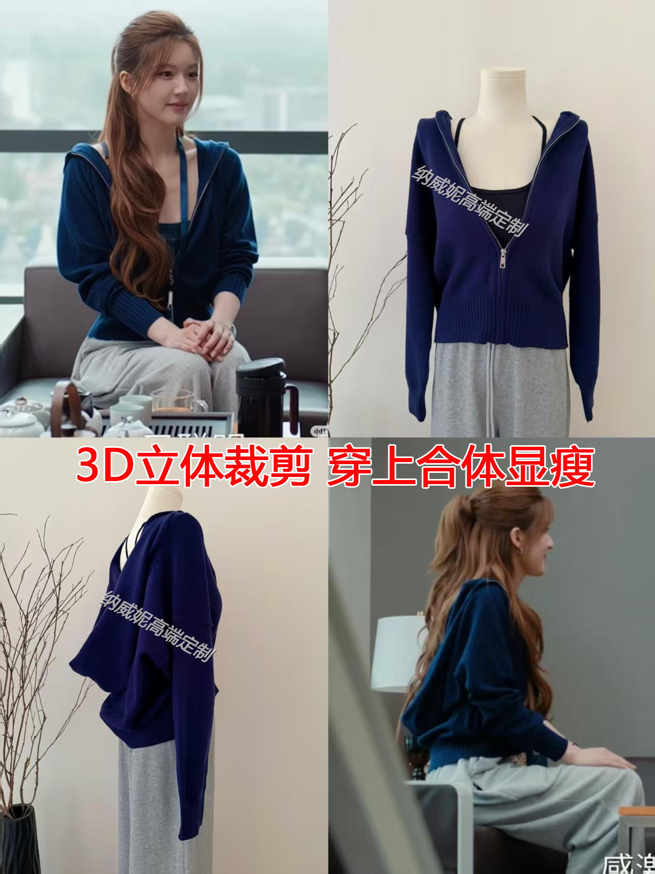 許我耀眼趙露思許妍同款針織衫連帽衛衣女秋休閒開衫外套上衣套裝