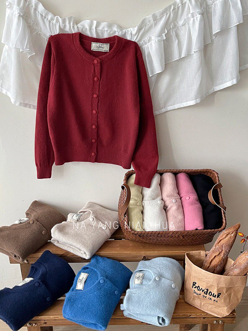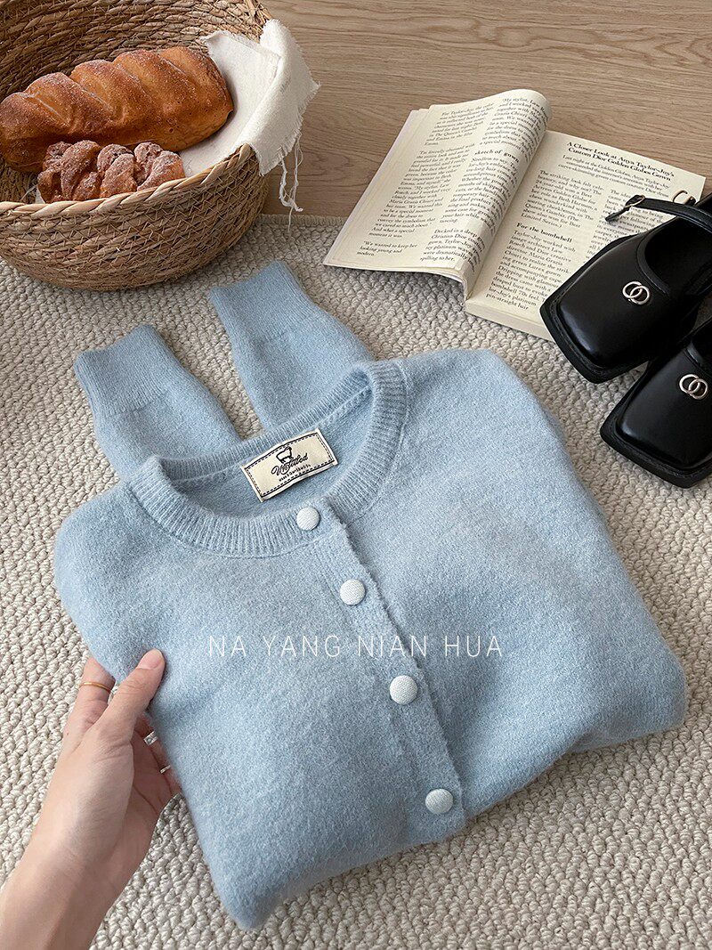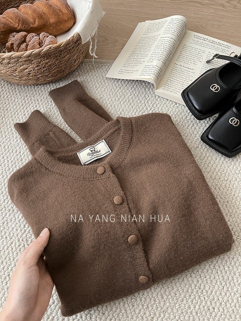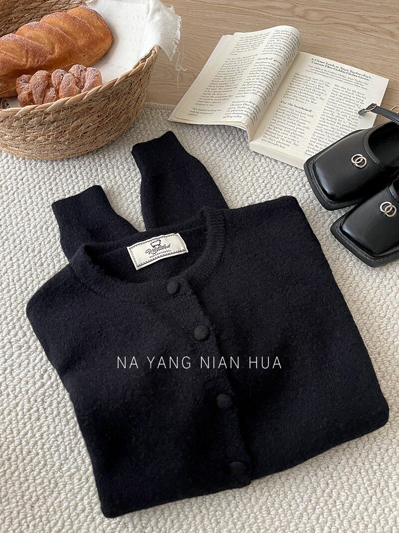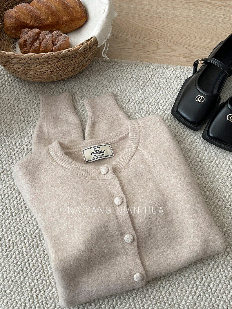 日韓系復古軟糯羊絨毛針織開衫女秋溫柔洋氣休閒顯瘦百搭外套上衣