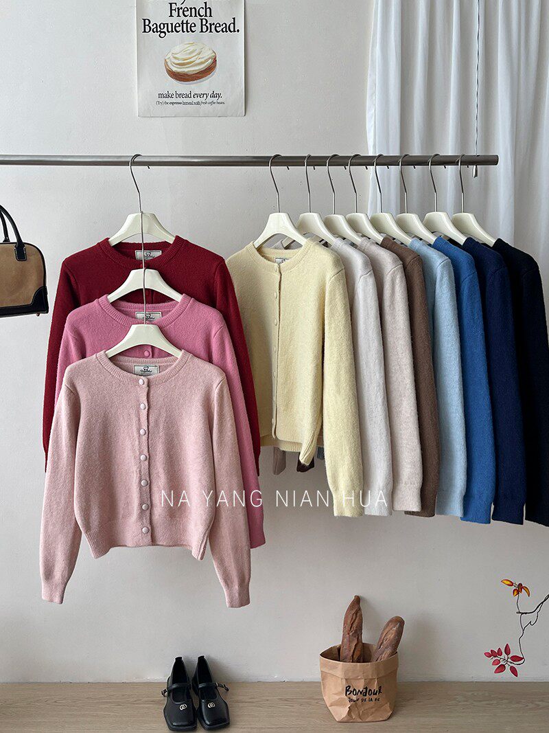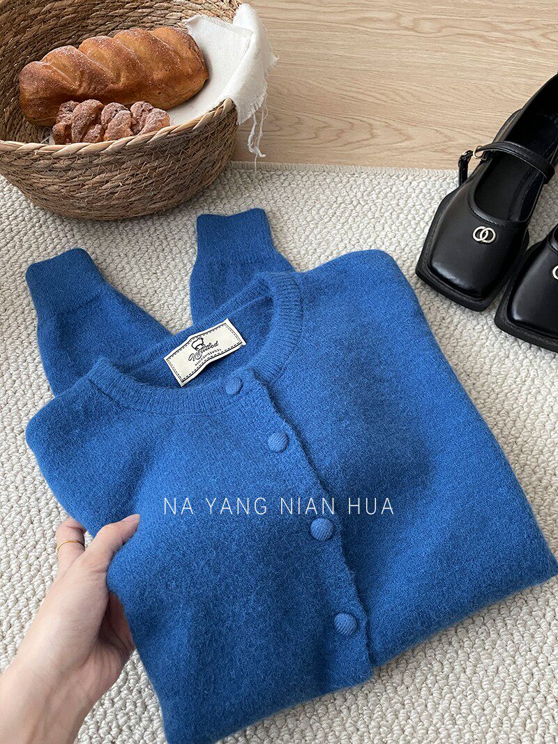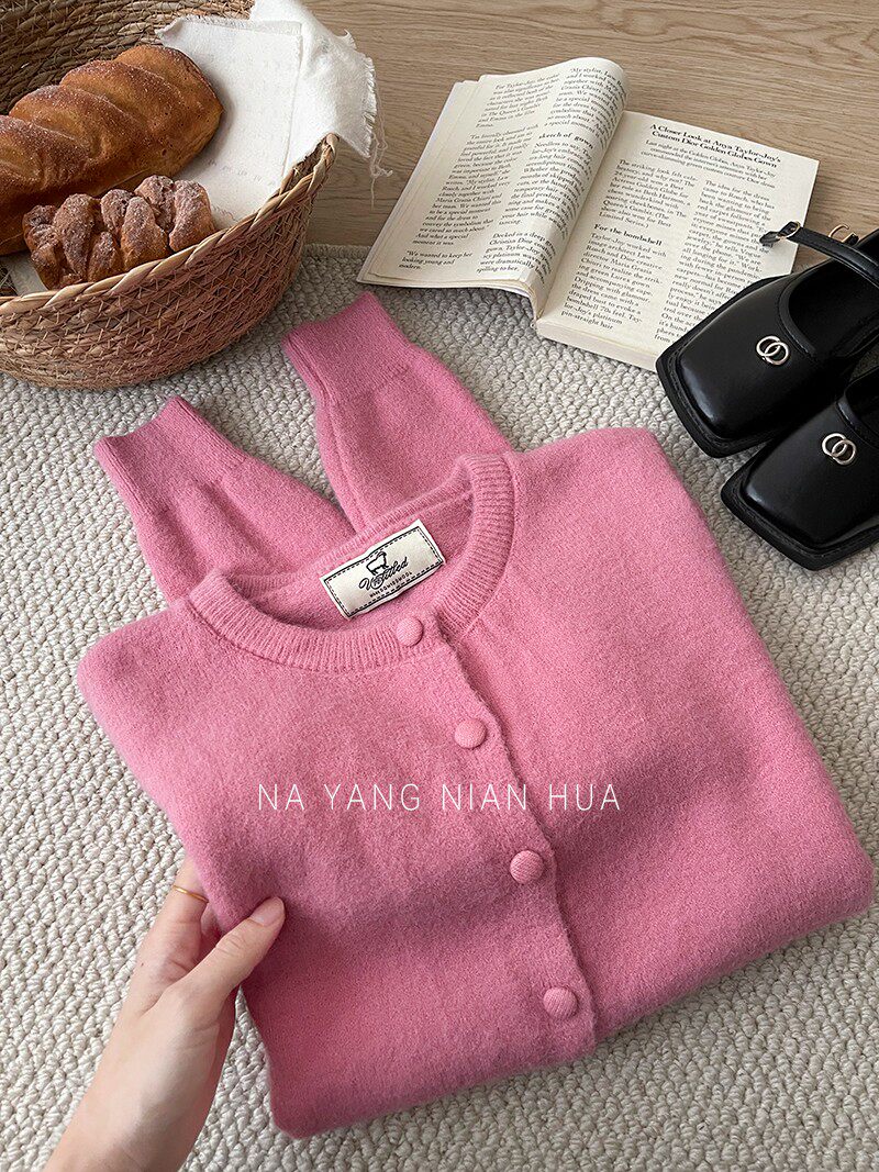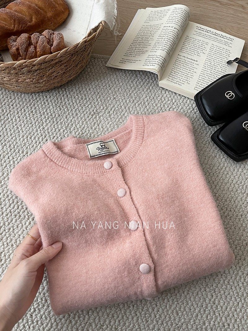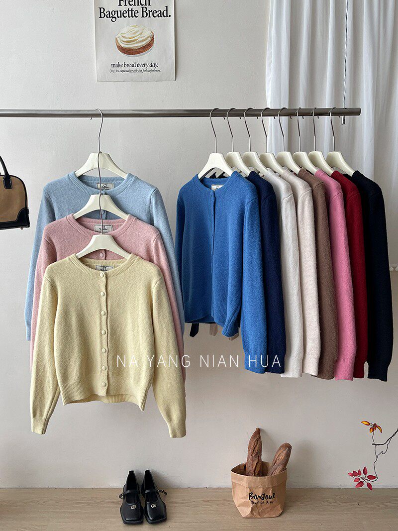 日韓系復古軟糯羊絨毛針織開衫女秋溫柔洋氣休閒顯瘦百搭外套上衣