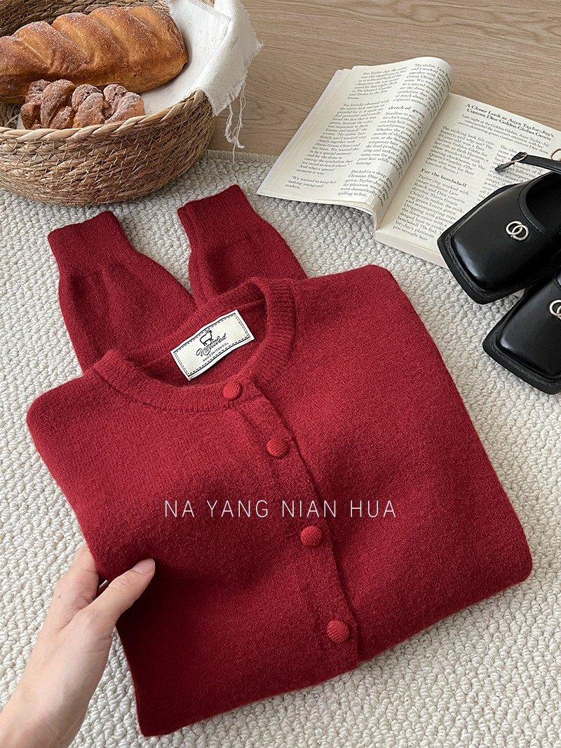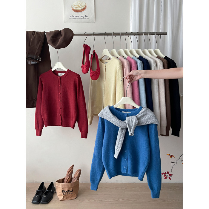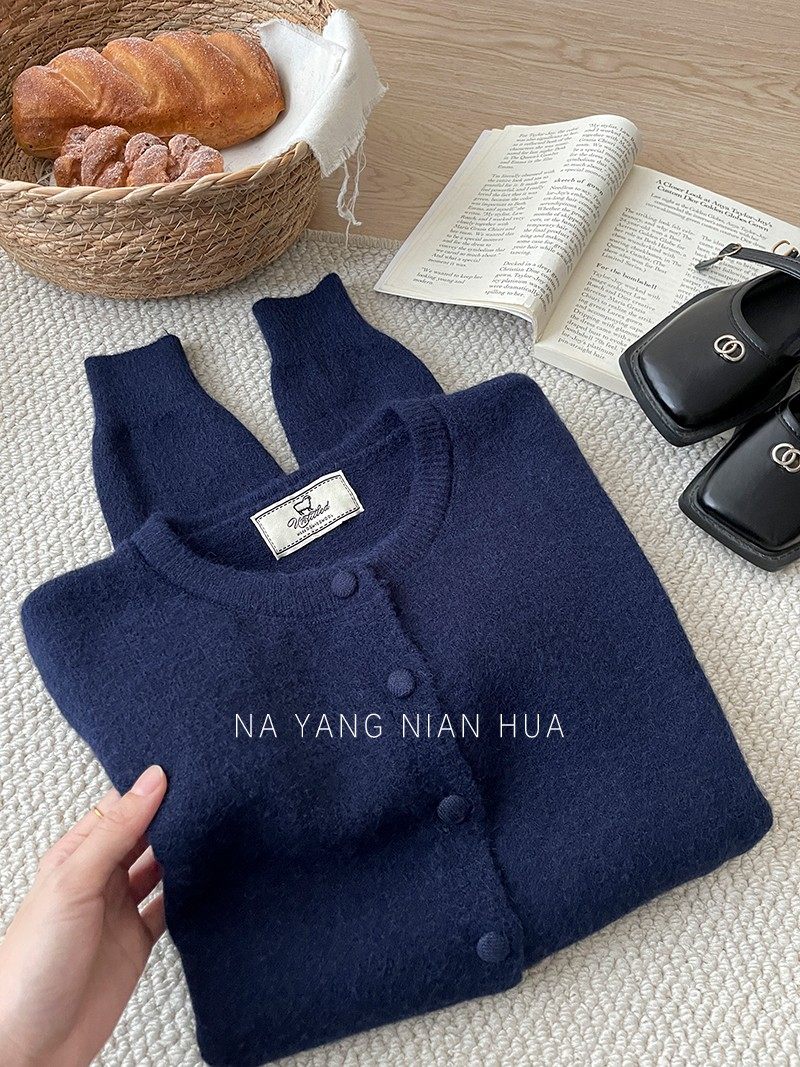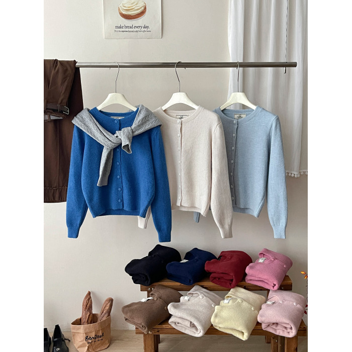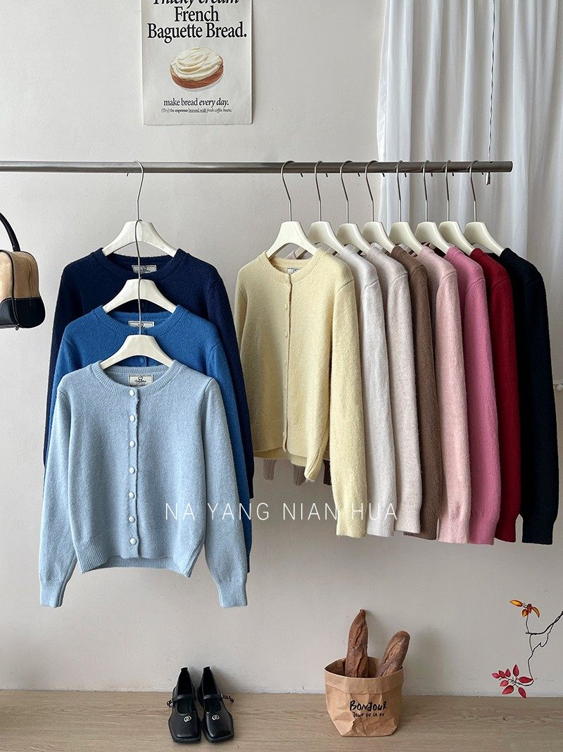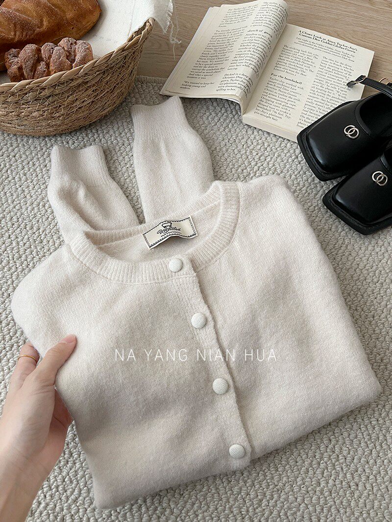 日韓系復古軟糯羊絨毛針織開衫女秋溫柔洋氣休閒顯瘦百搭外套上衣