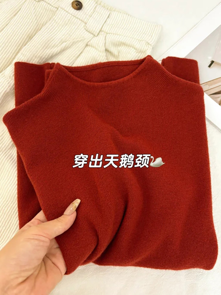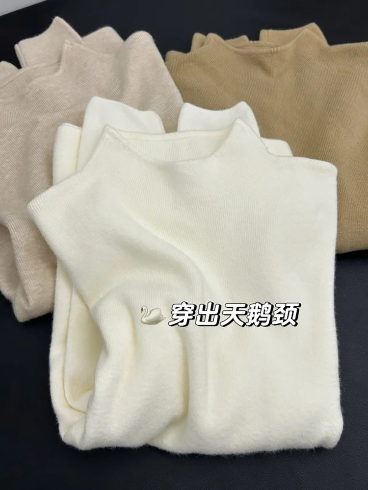 海鹽藍軟糯chic半高領毛針織衫女秋冬曡穿小立領氣質內搭打底上衣