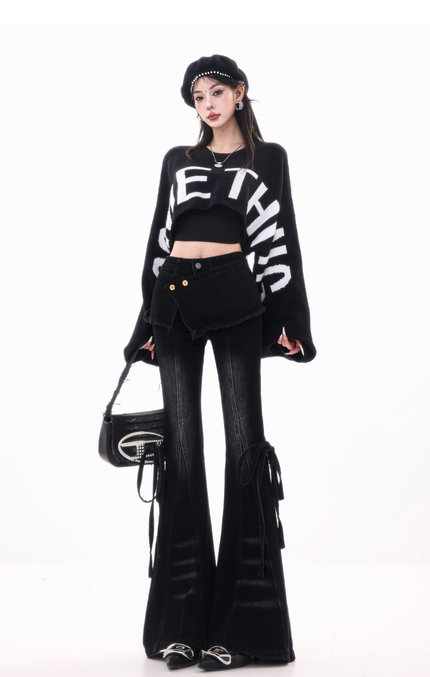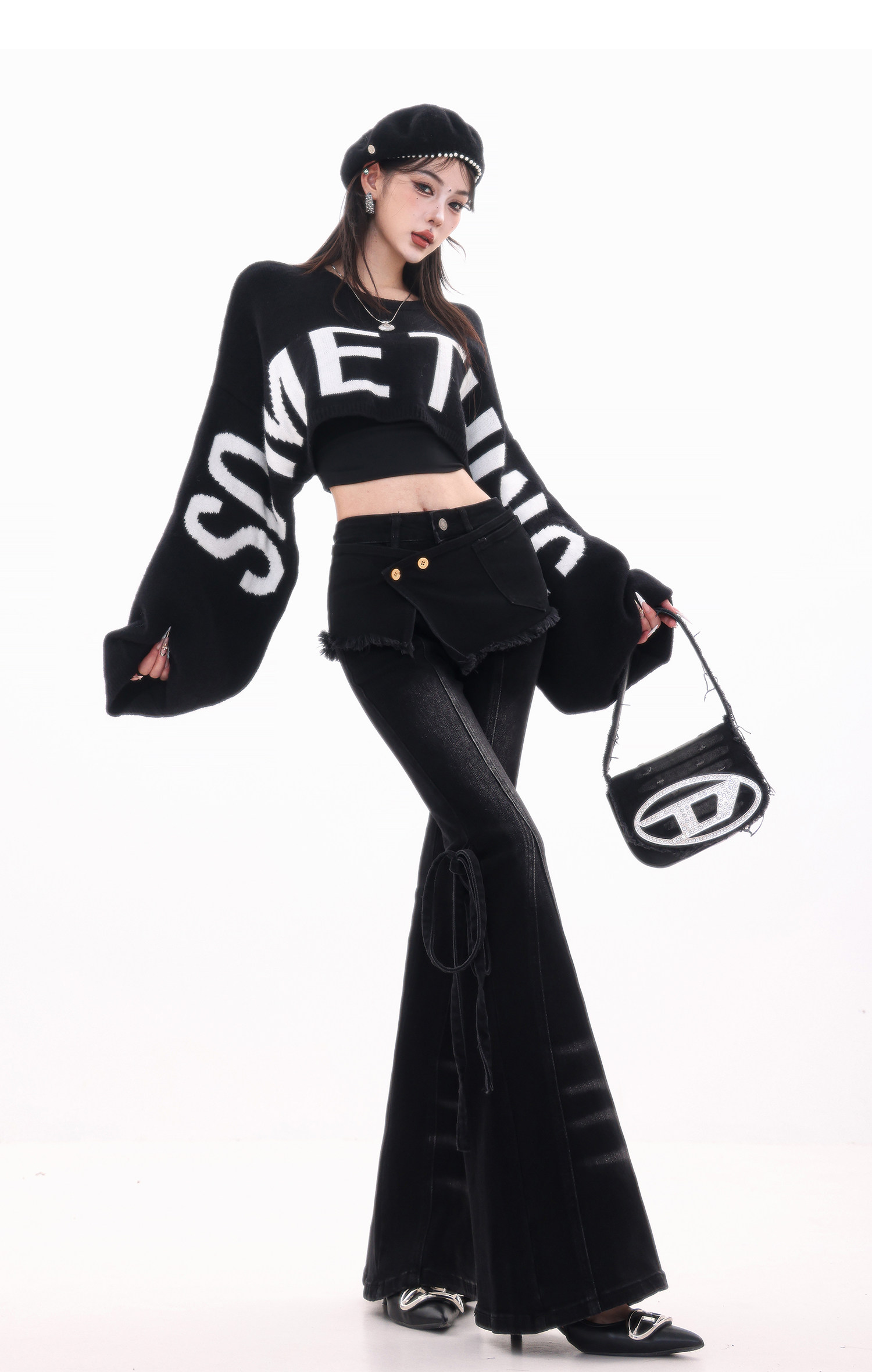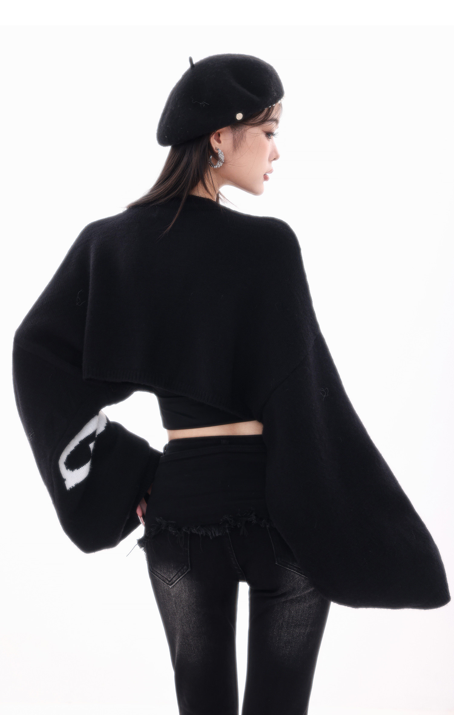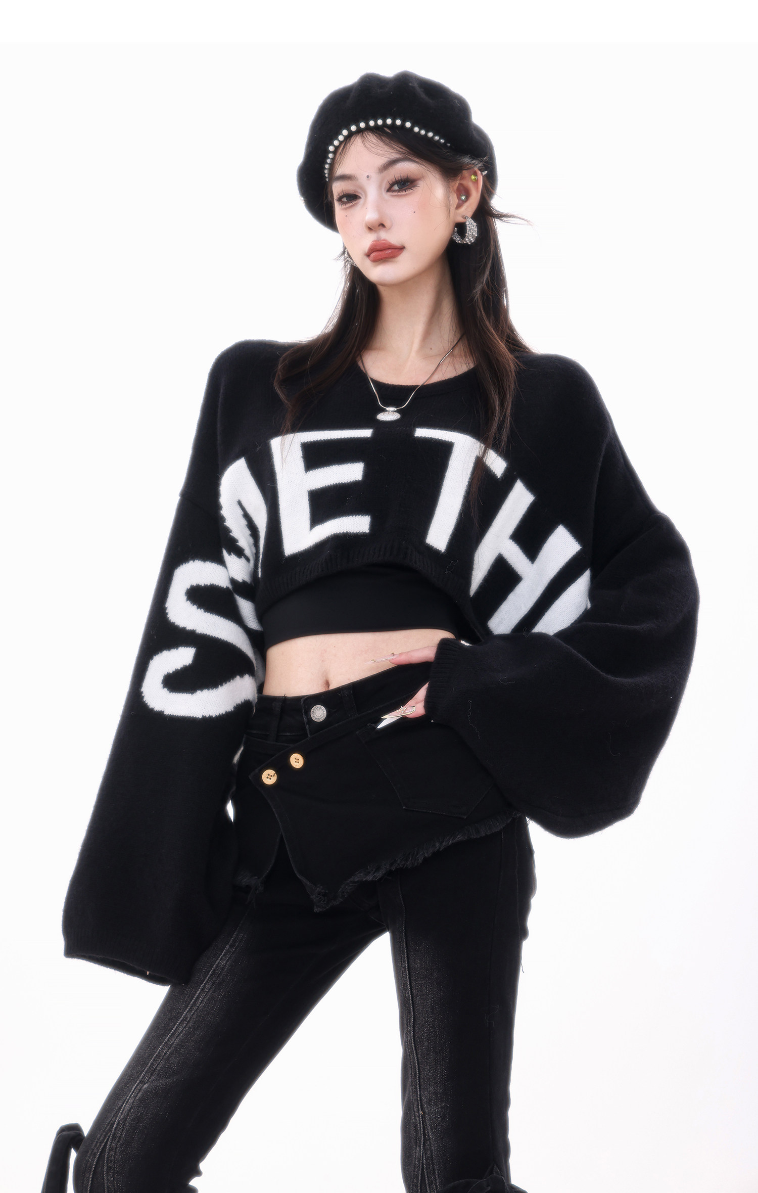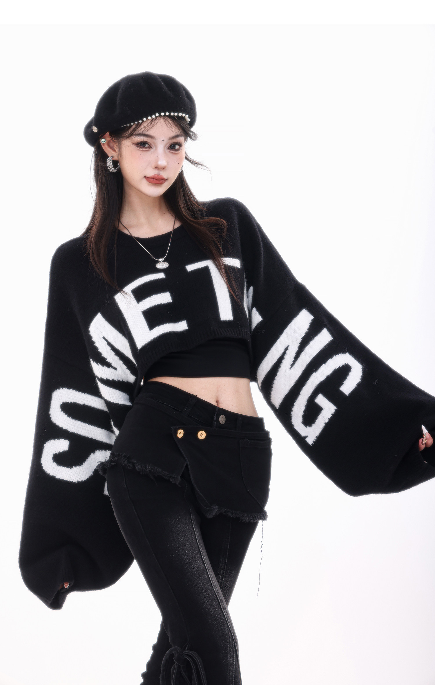 ABWLR潮流速遞-原創韓式蝙蝠袖毛針織衫女寬松百搭字母設計感毛衣
