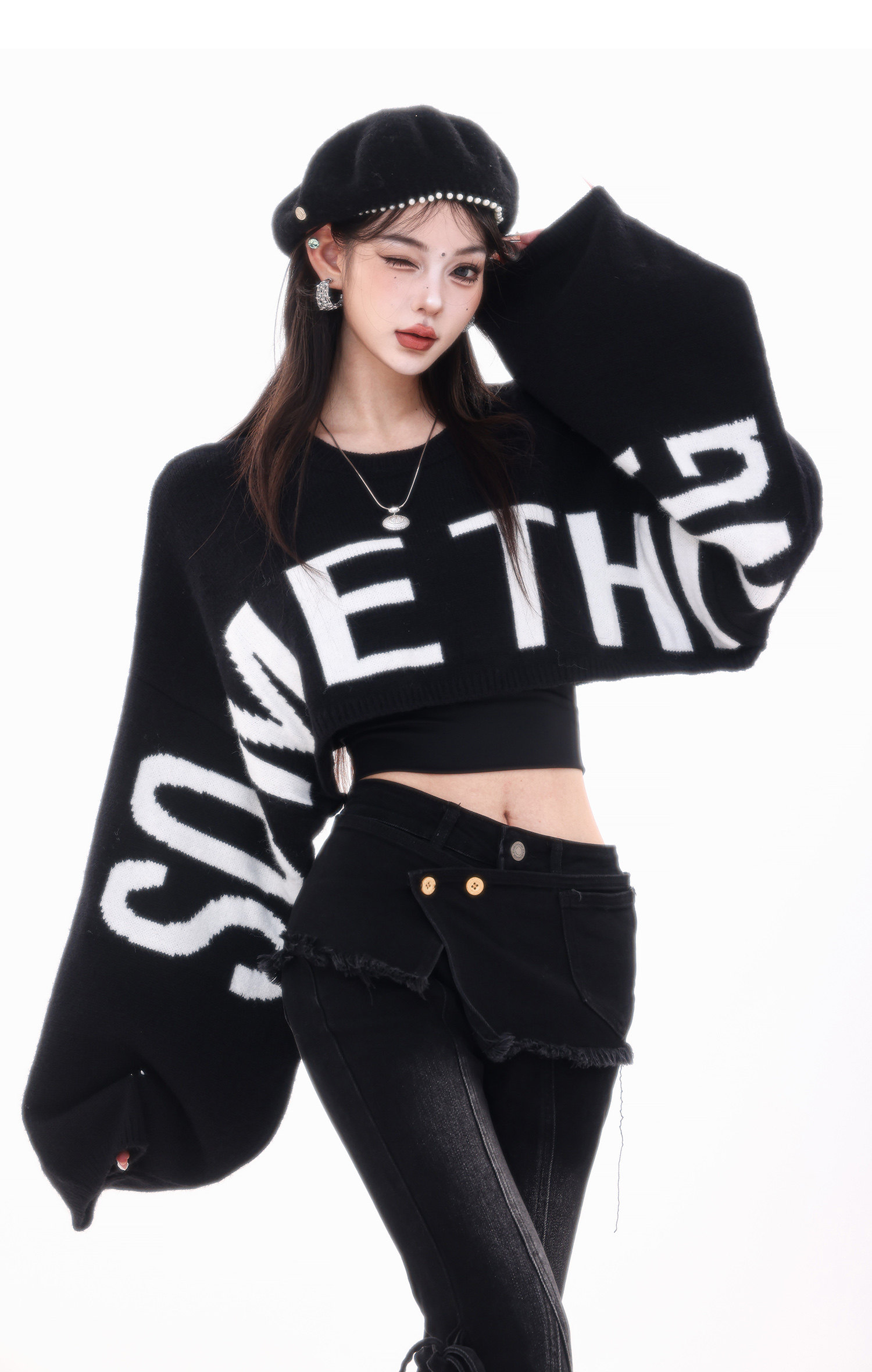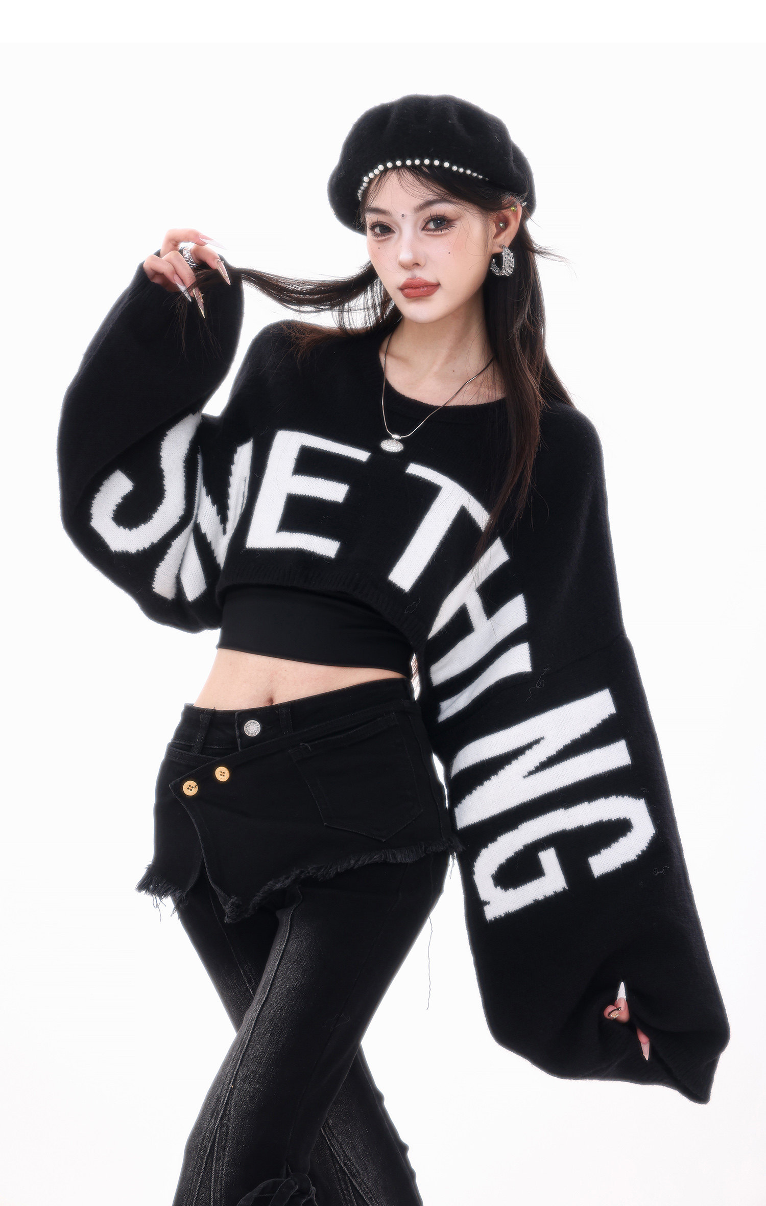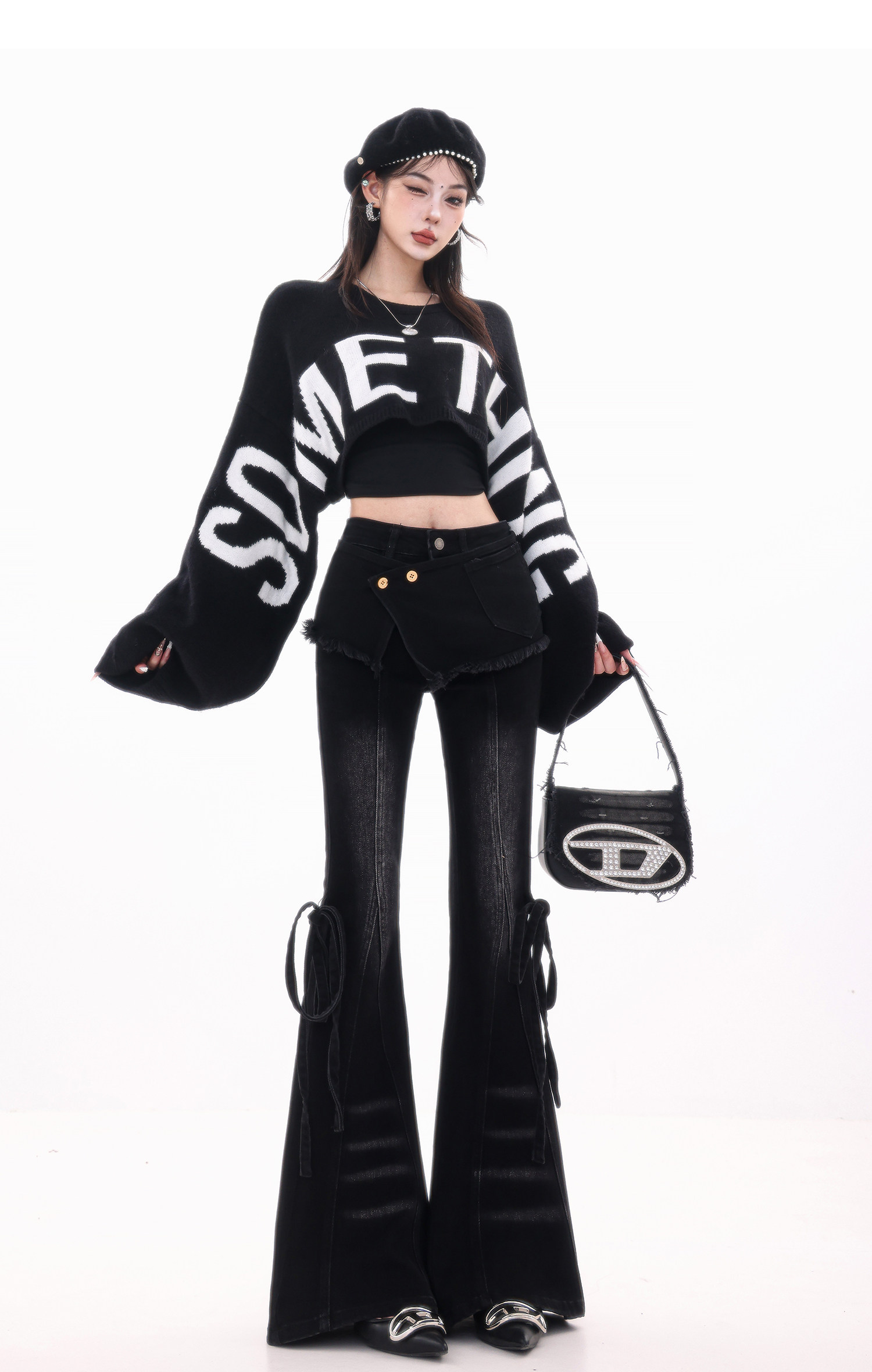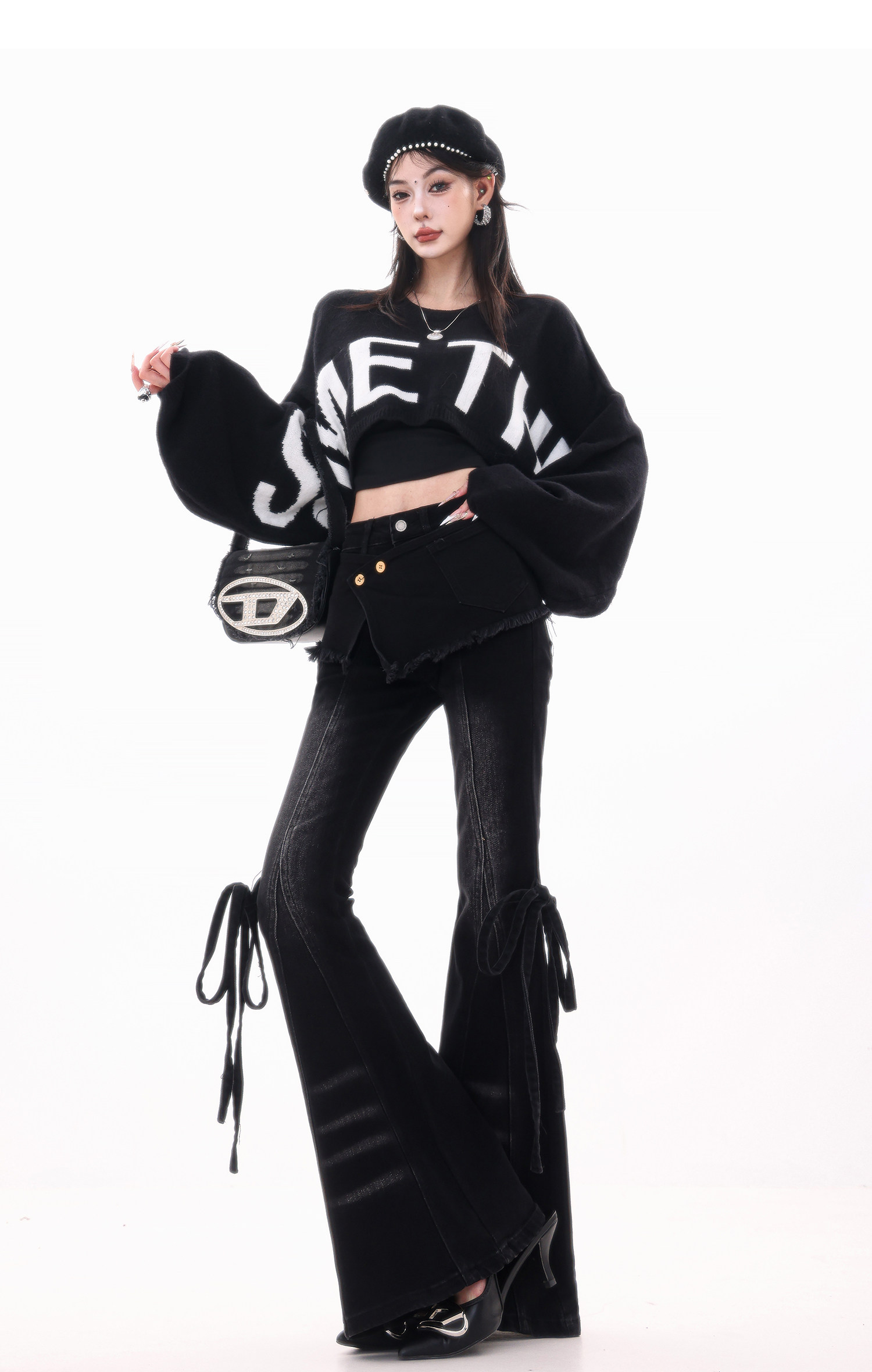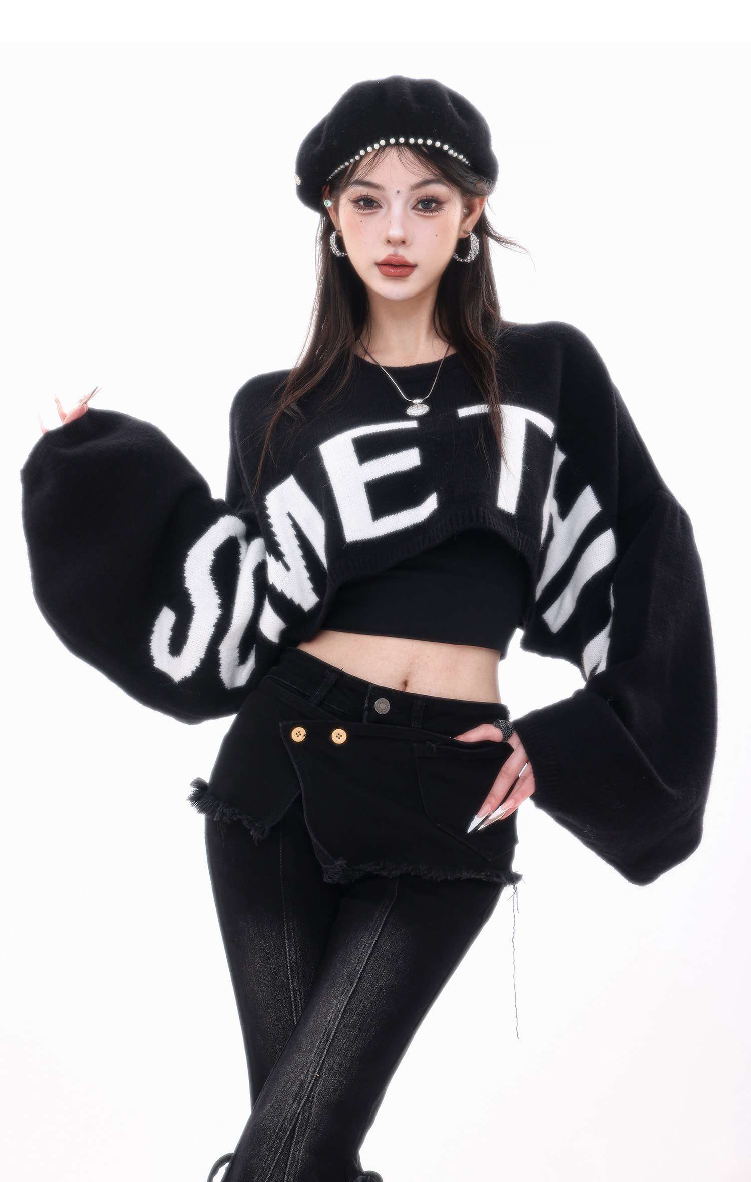 ABWLR潮流速遞-原創韓式蝙蝠袖毛針織衫女寬松百搭字母設計感毛衣