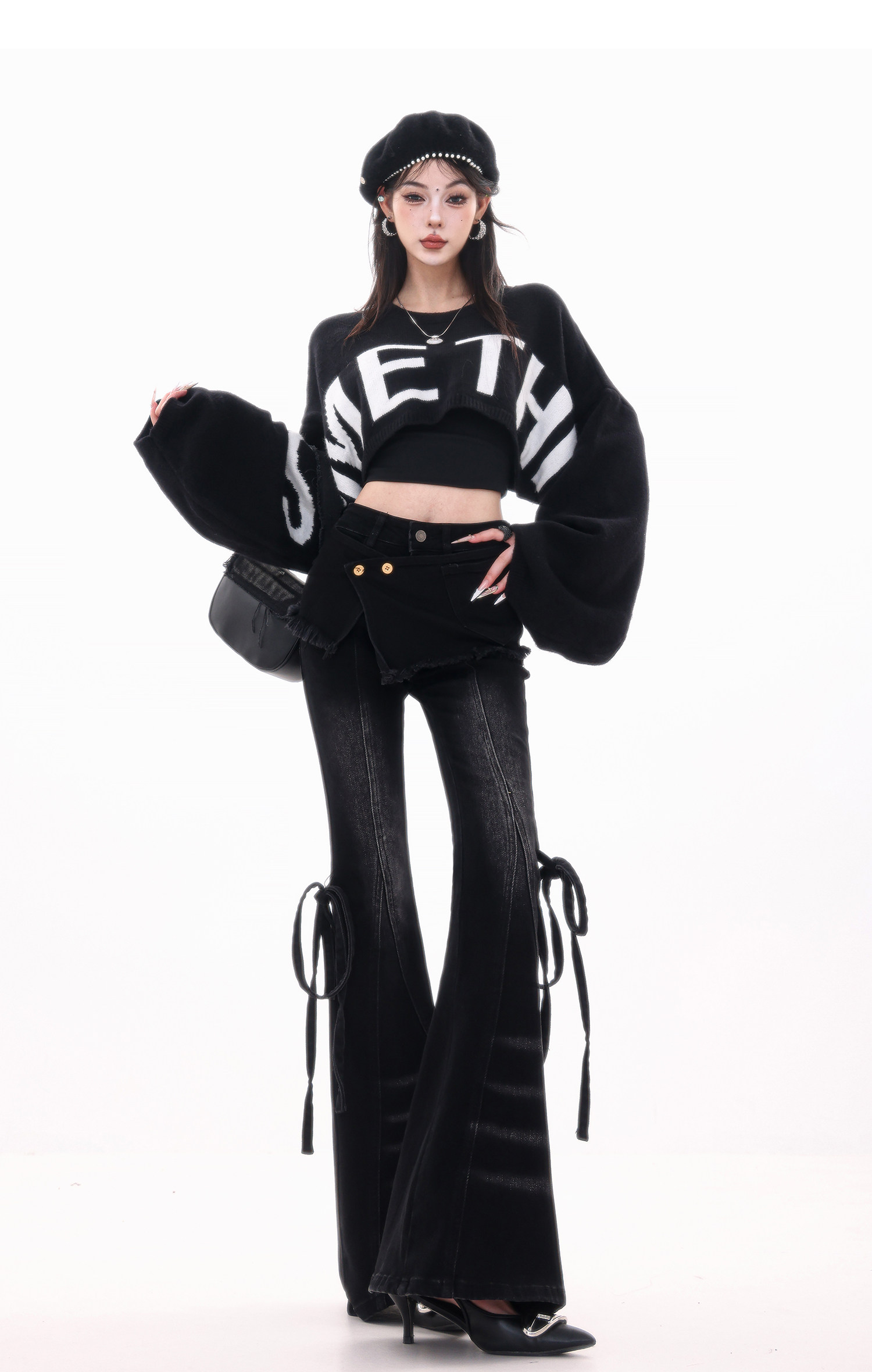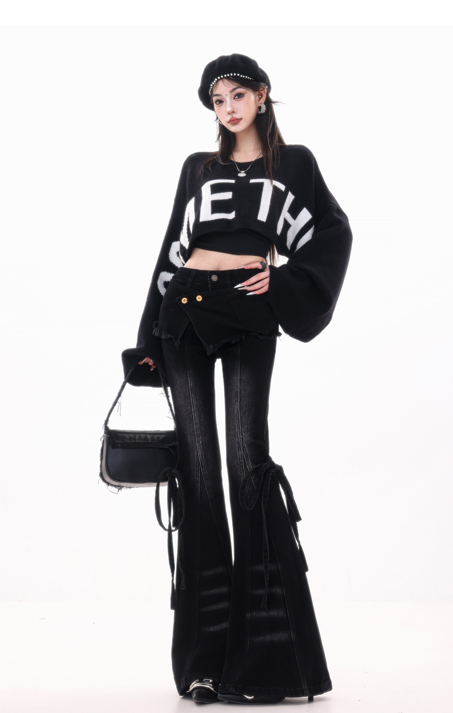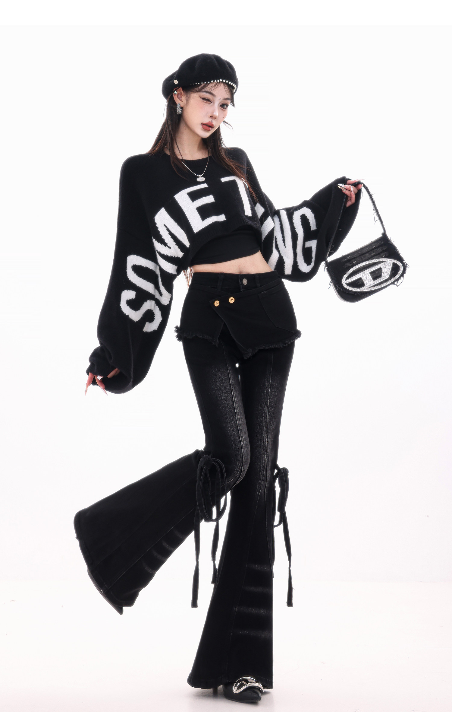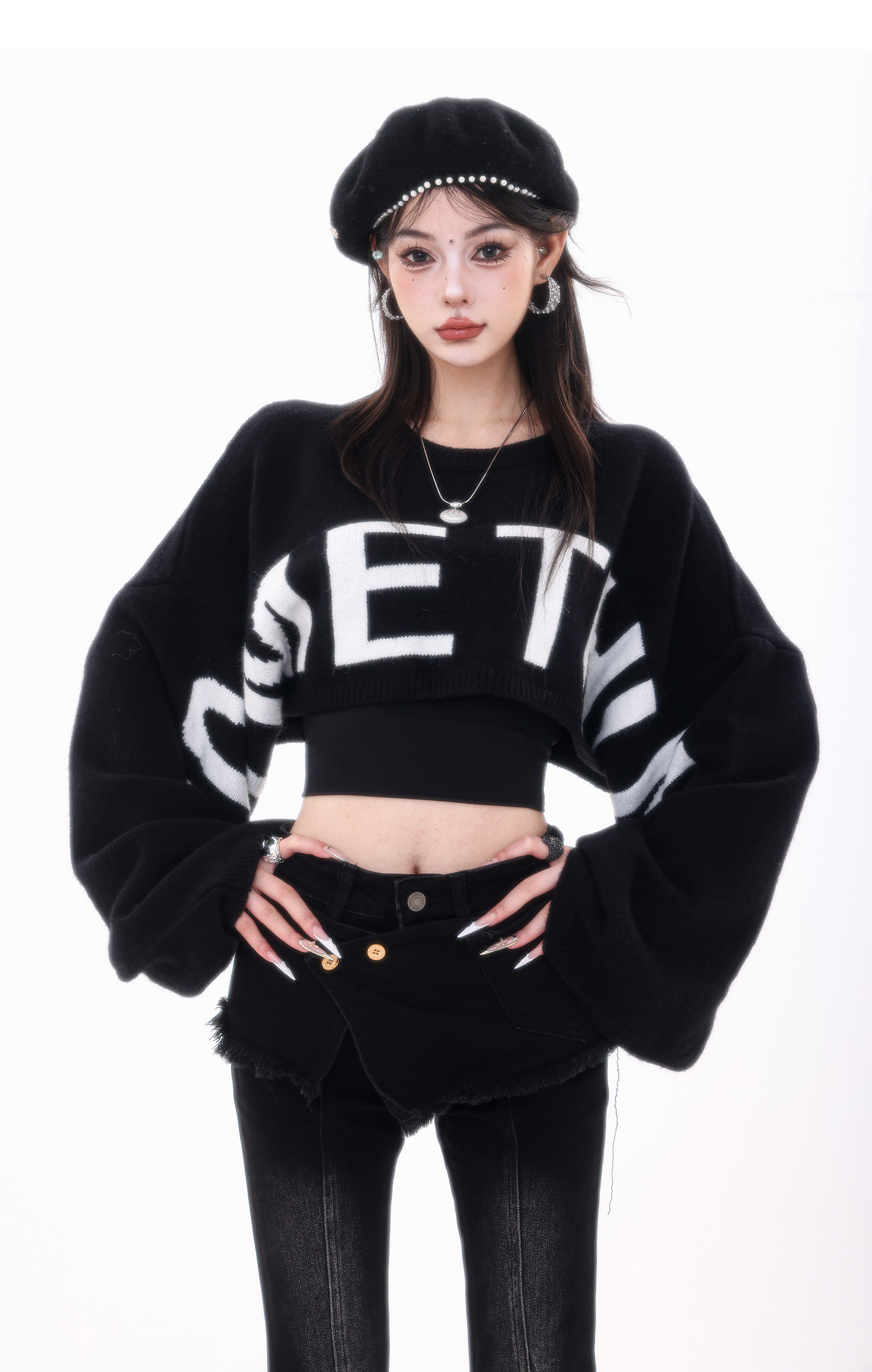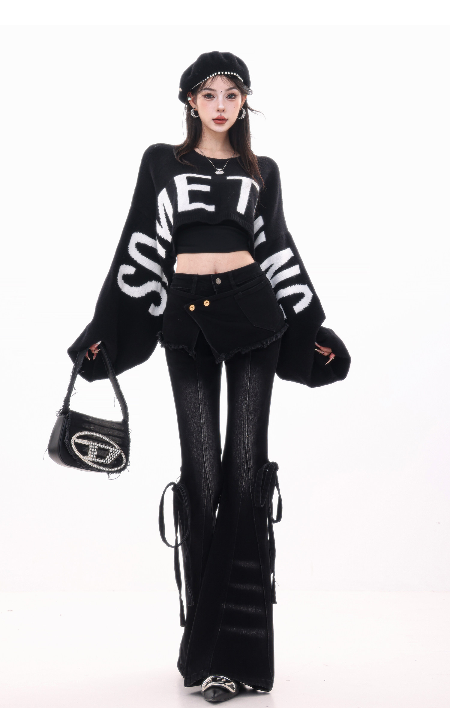 ABWLR潮流速遞-原創韓式蝙蝠袖毛針織衫女寬松百搭字母設計感毛衣