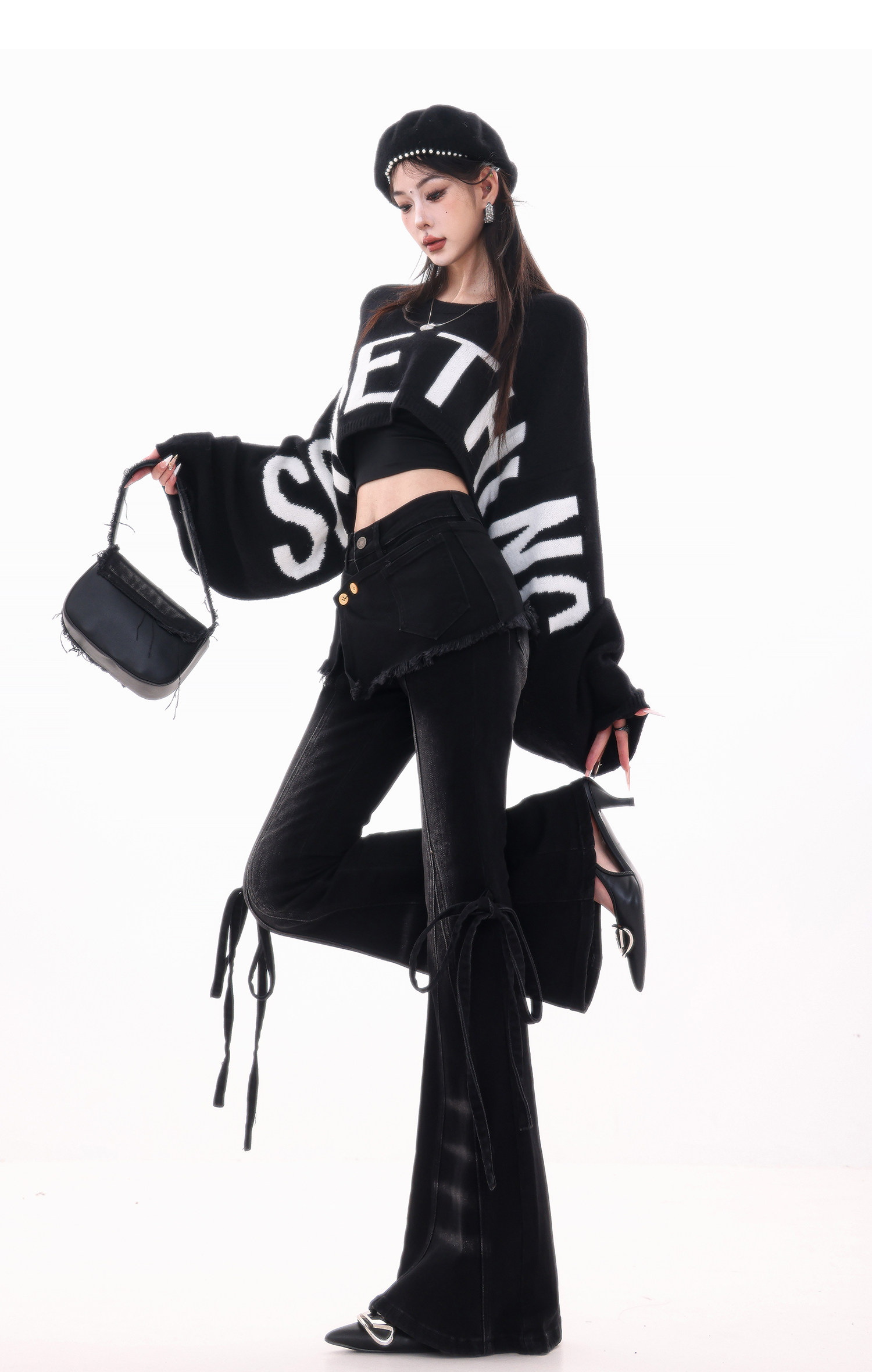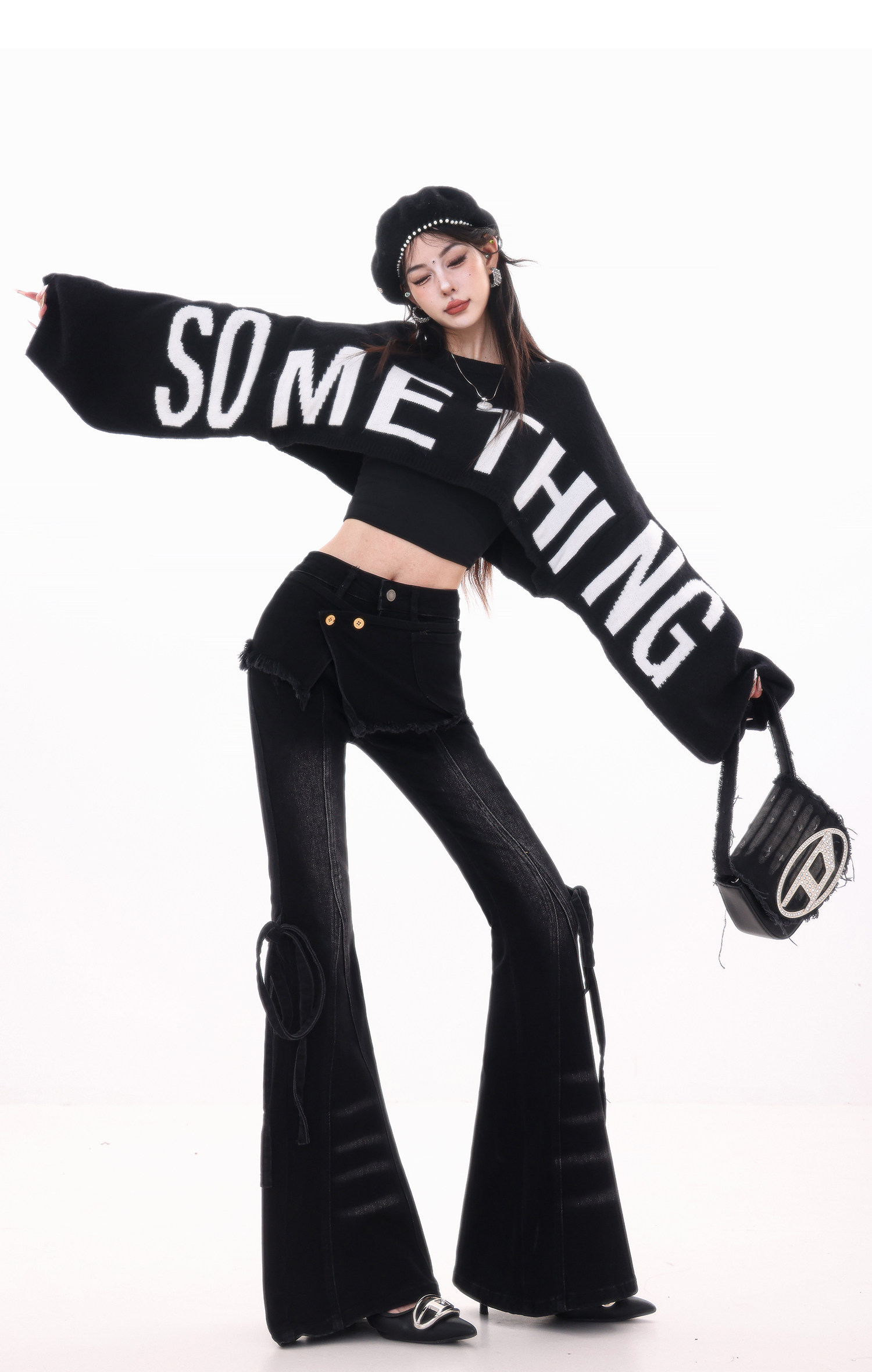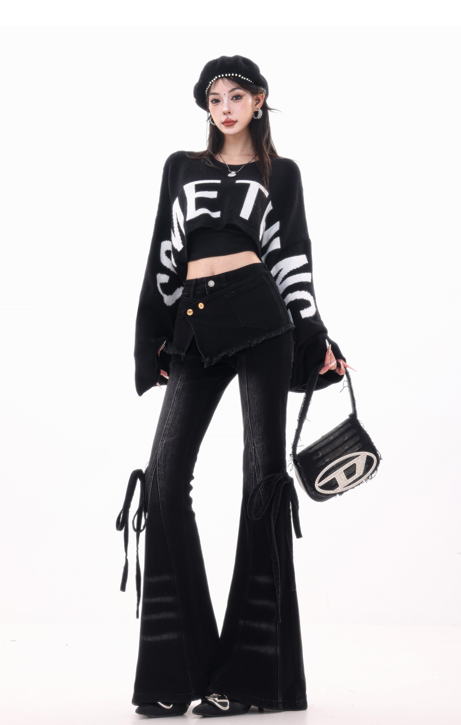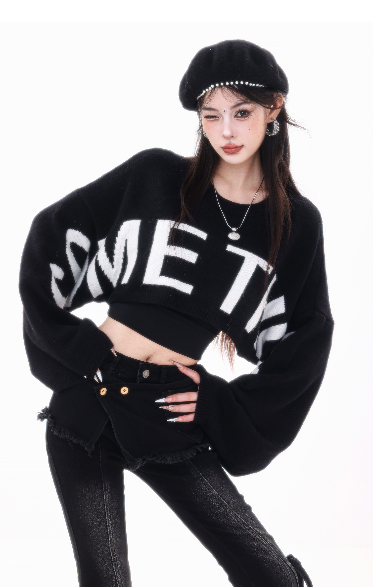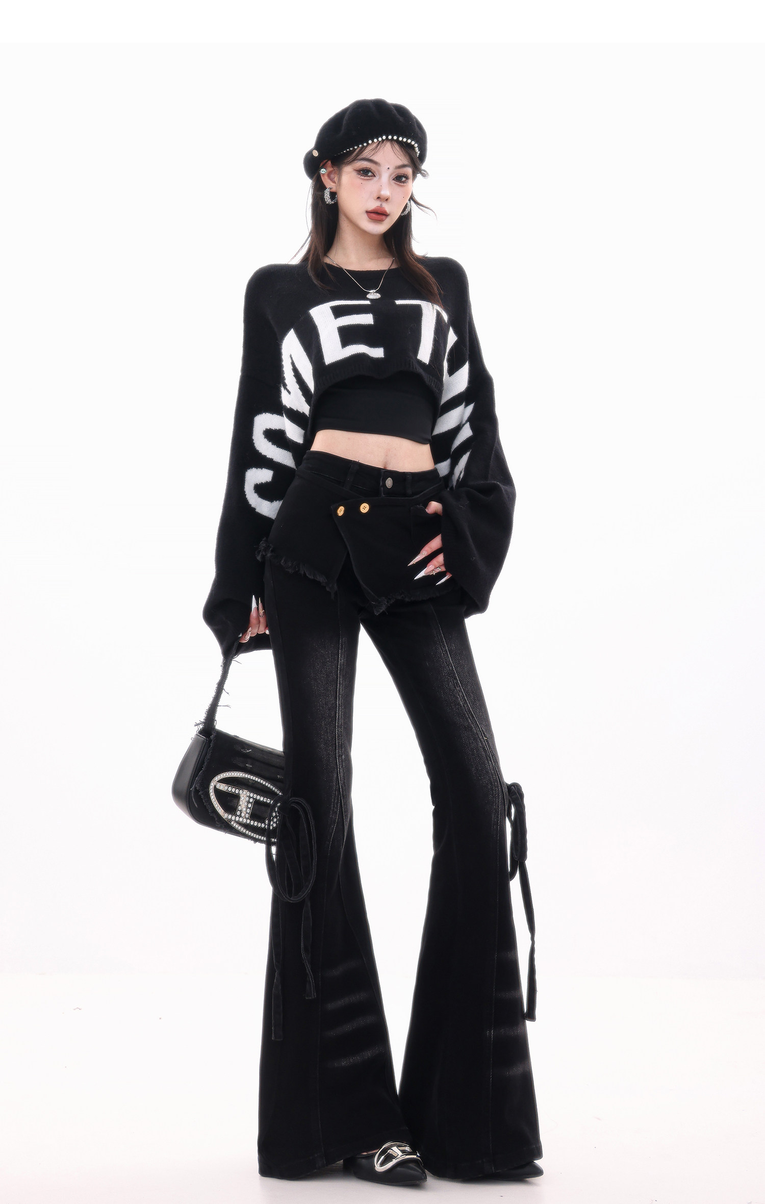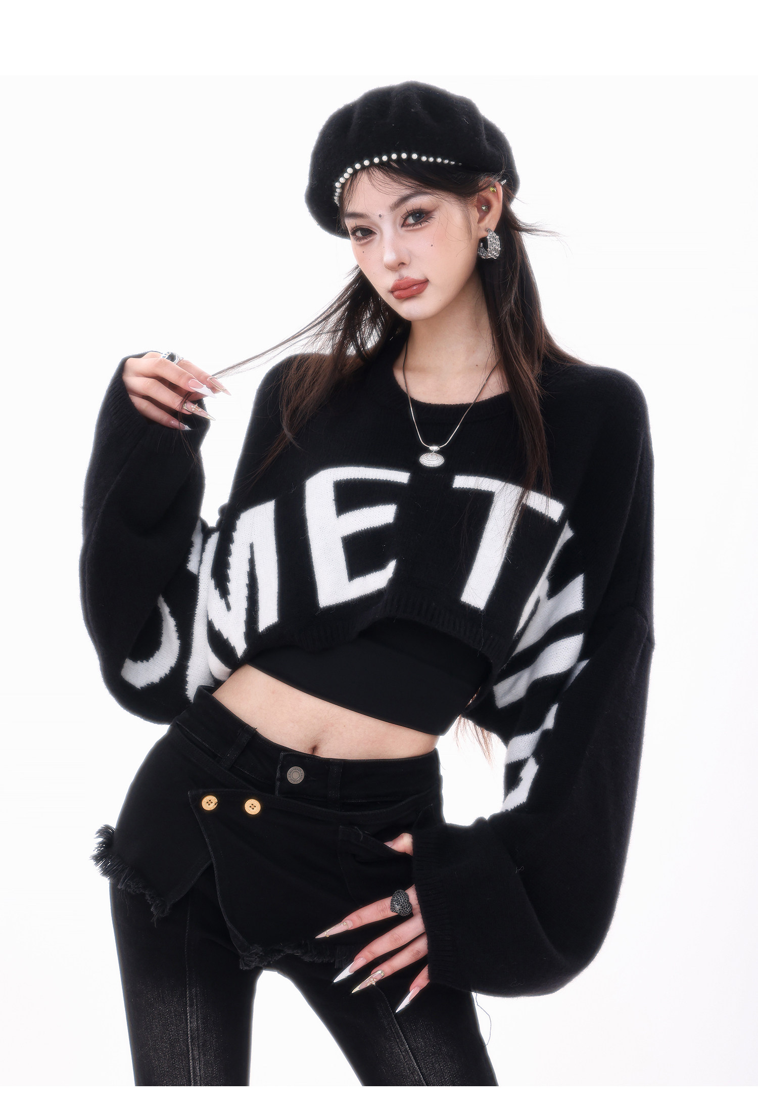 ABWLR潮流速遞-原創韓式蝙蝠袖毛針織衫女寬松百搭字母設計感毛衣