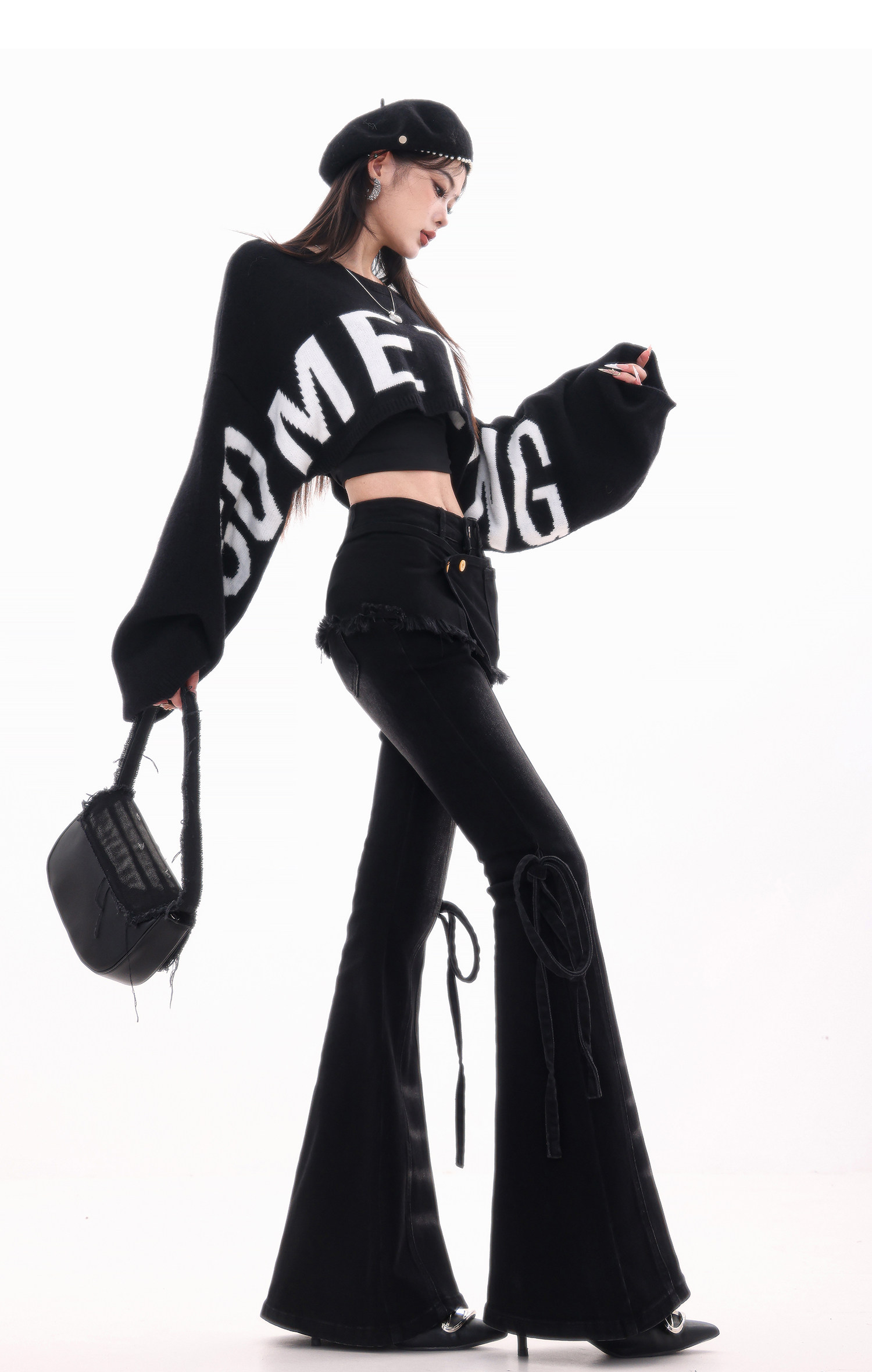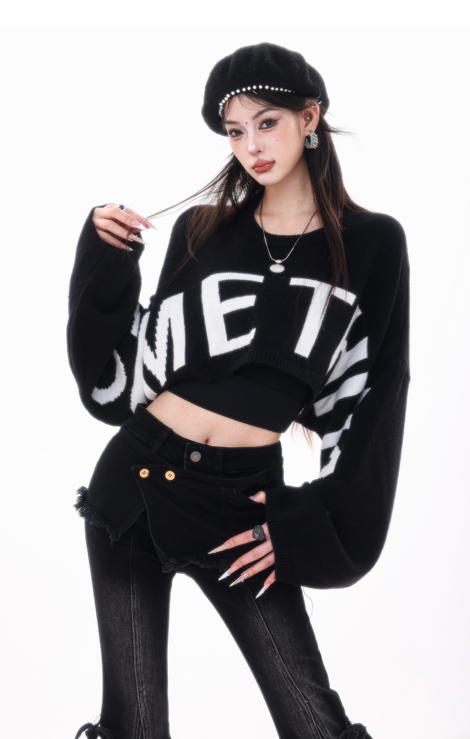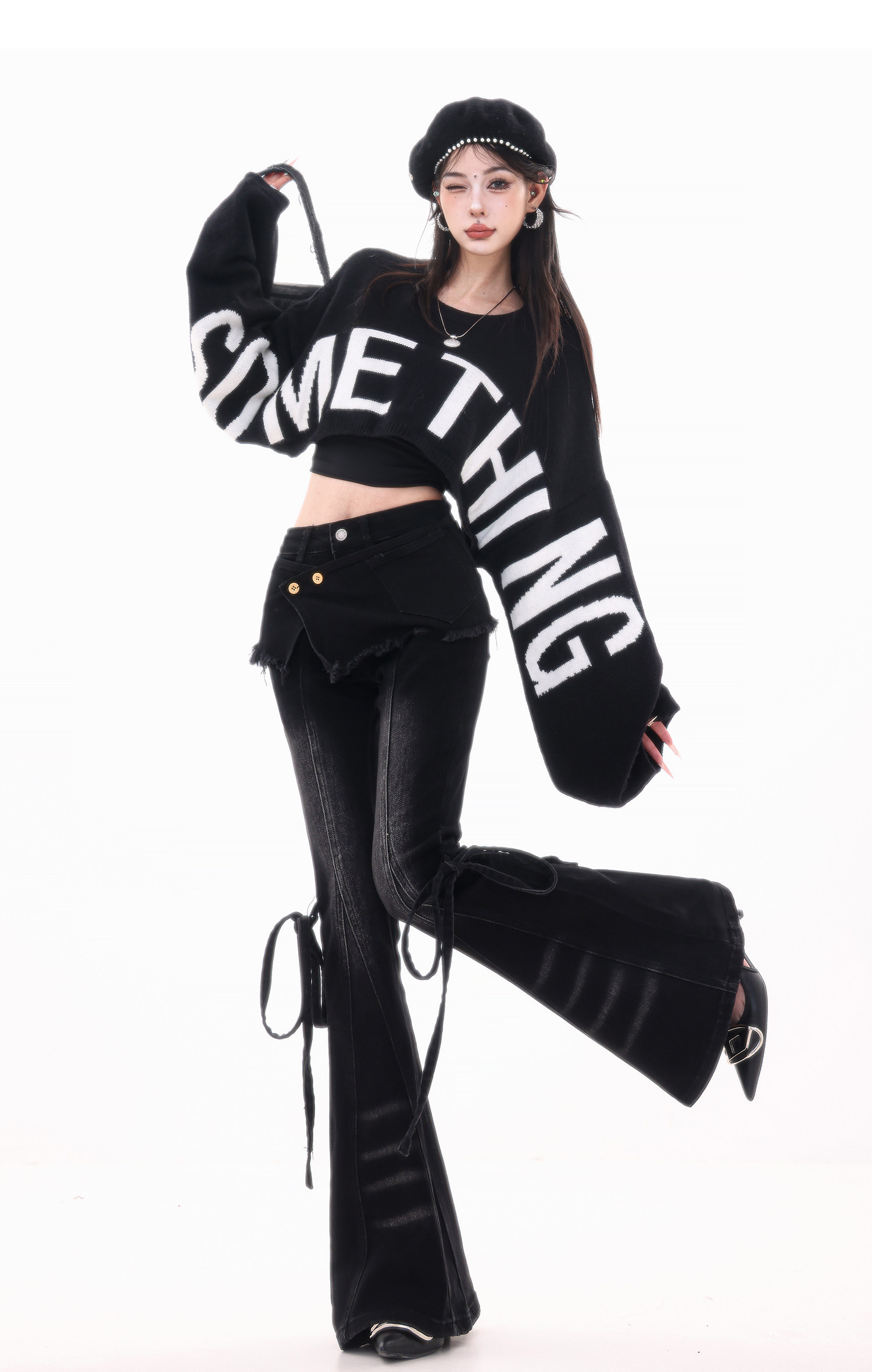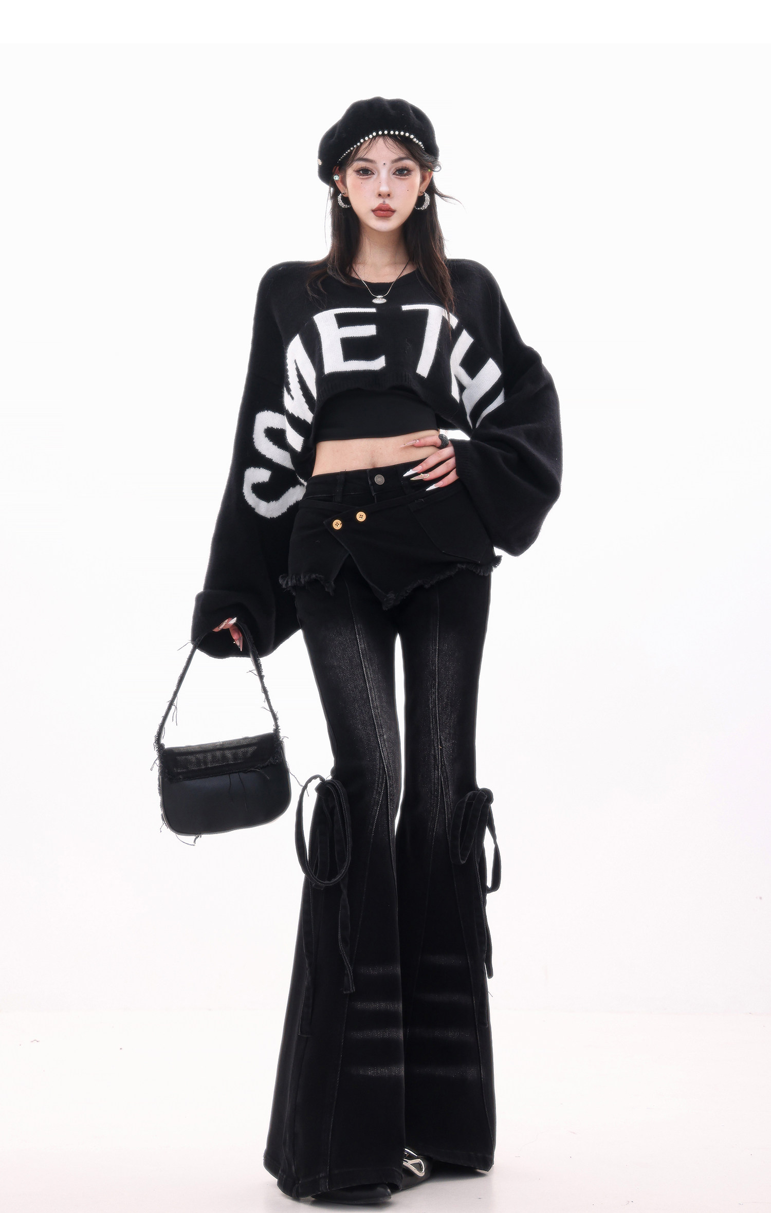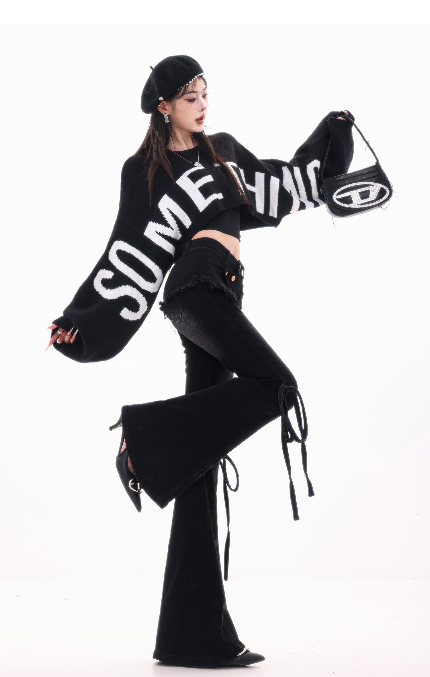 ABWLR潮流速遞-原創韓式蝙蝠袖毛針織衫女寬松百搭字母設計感毛衣