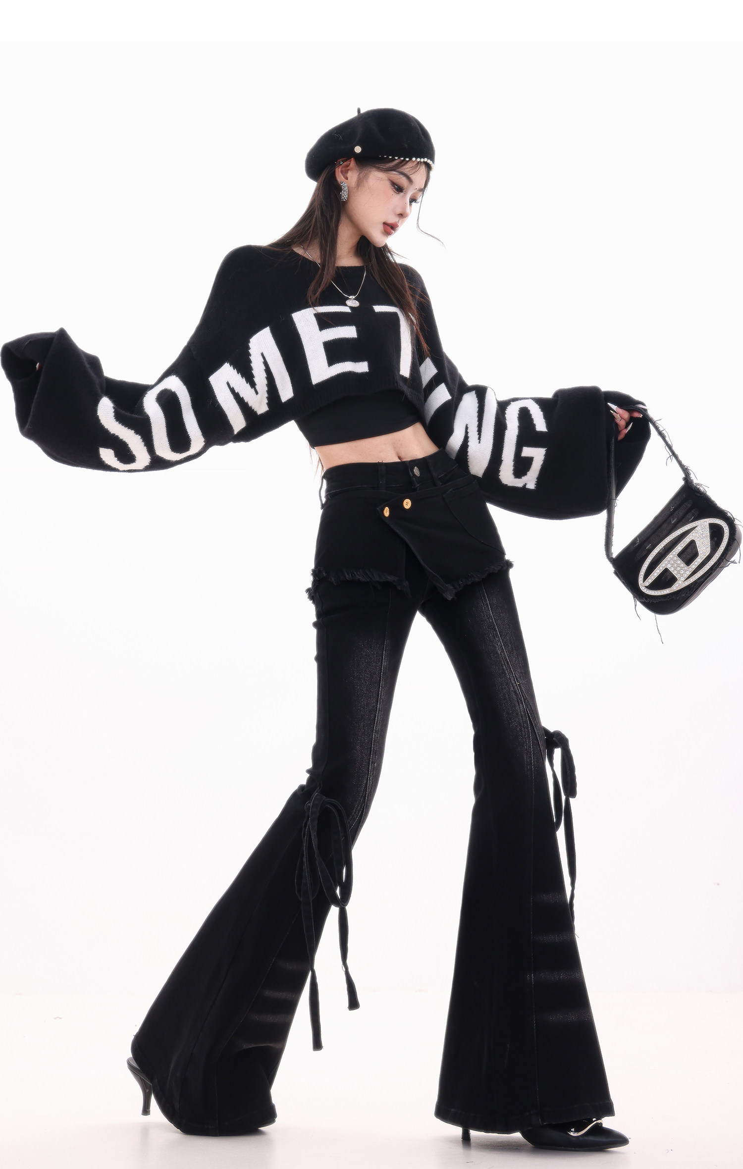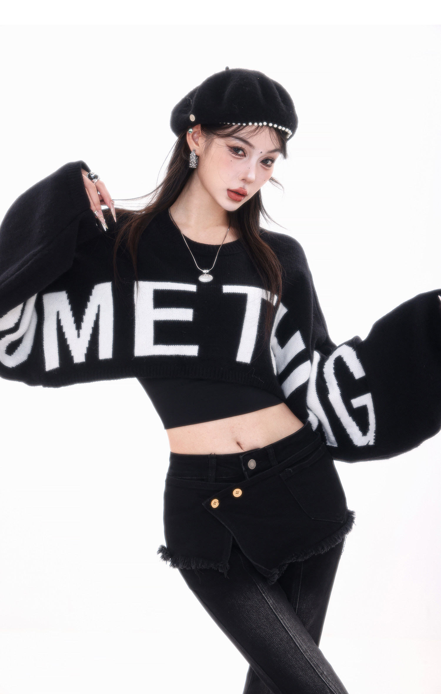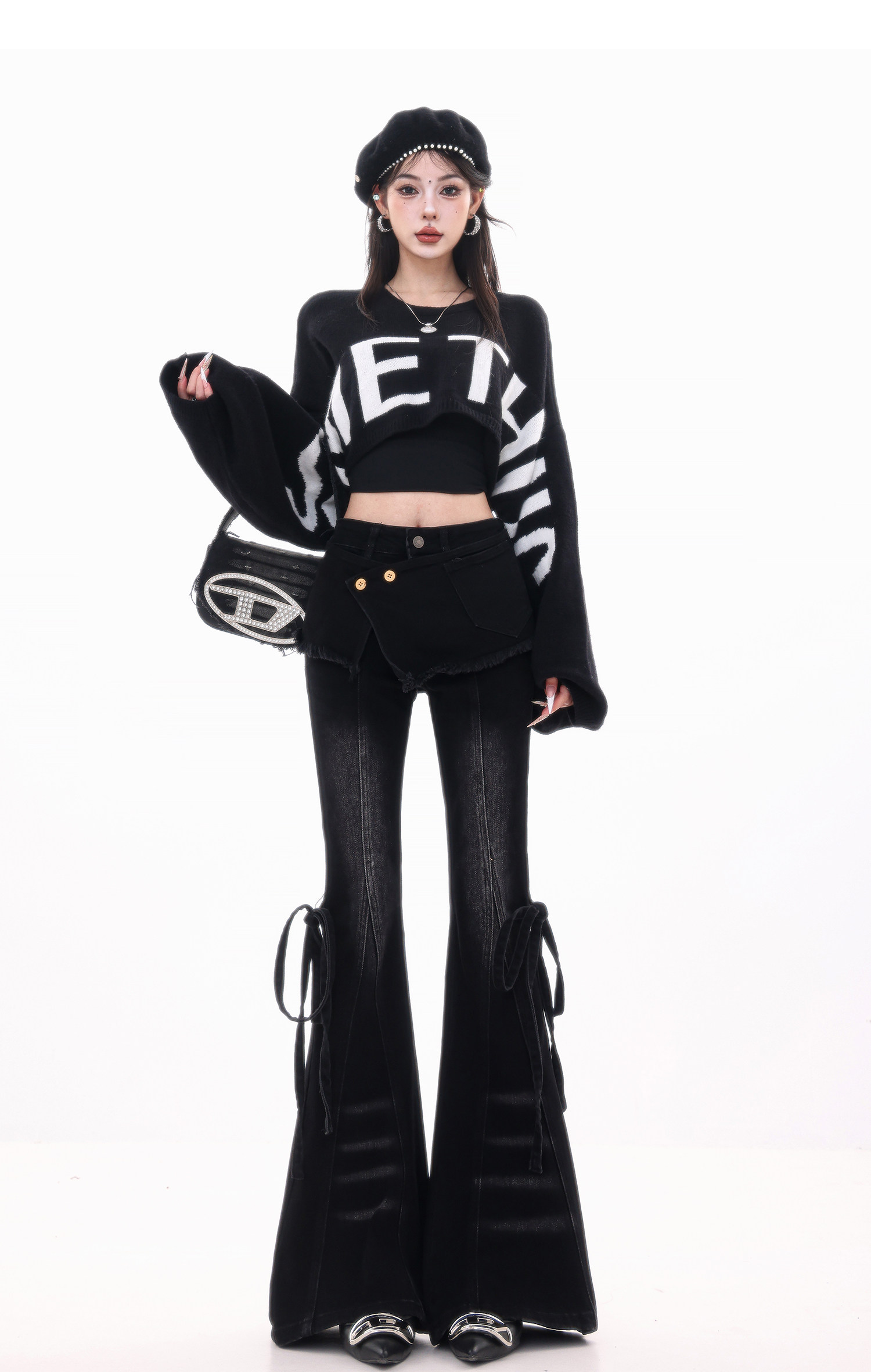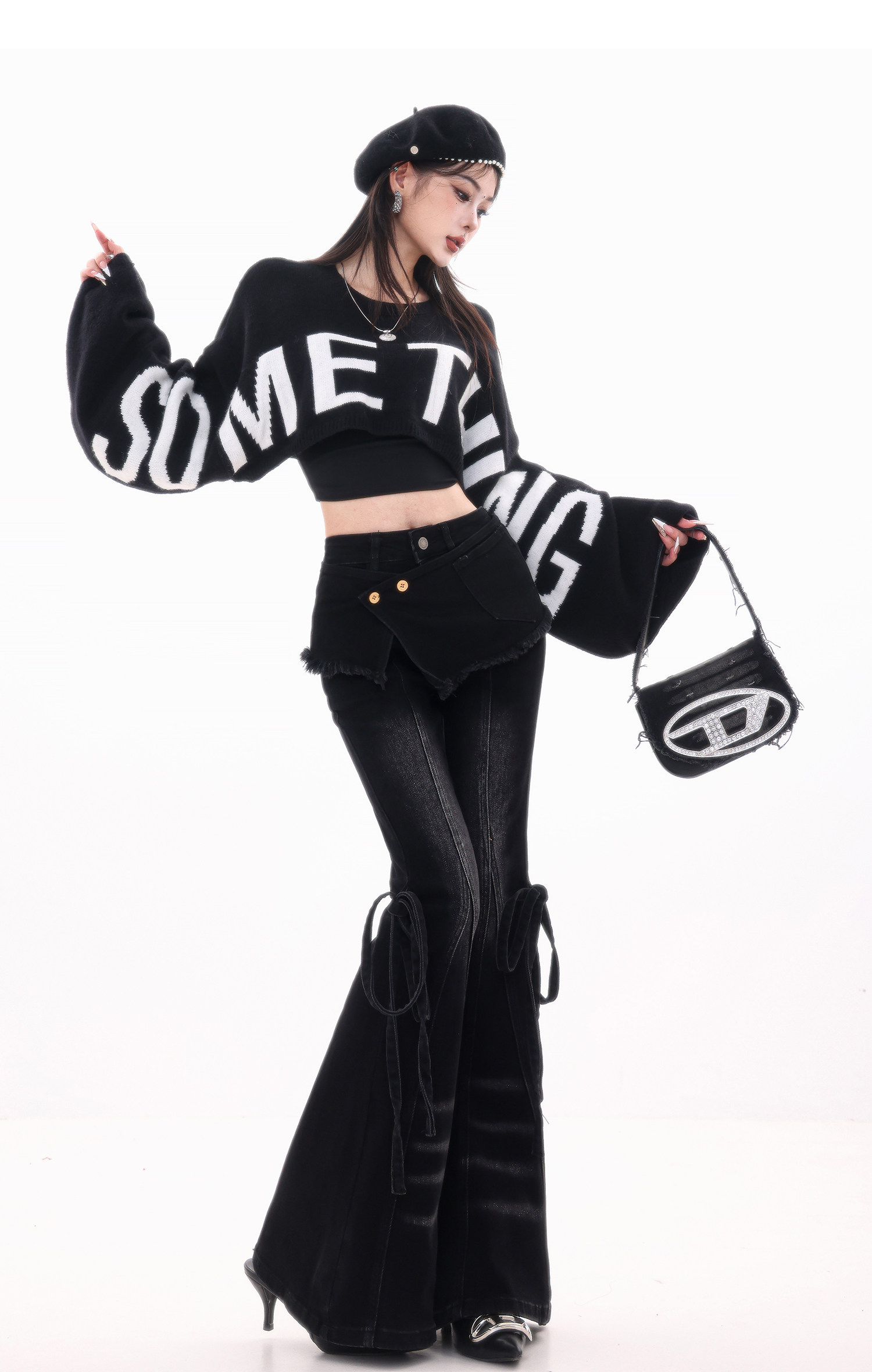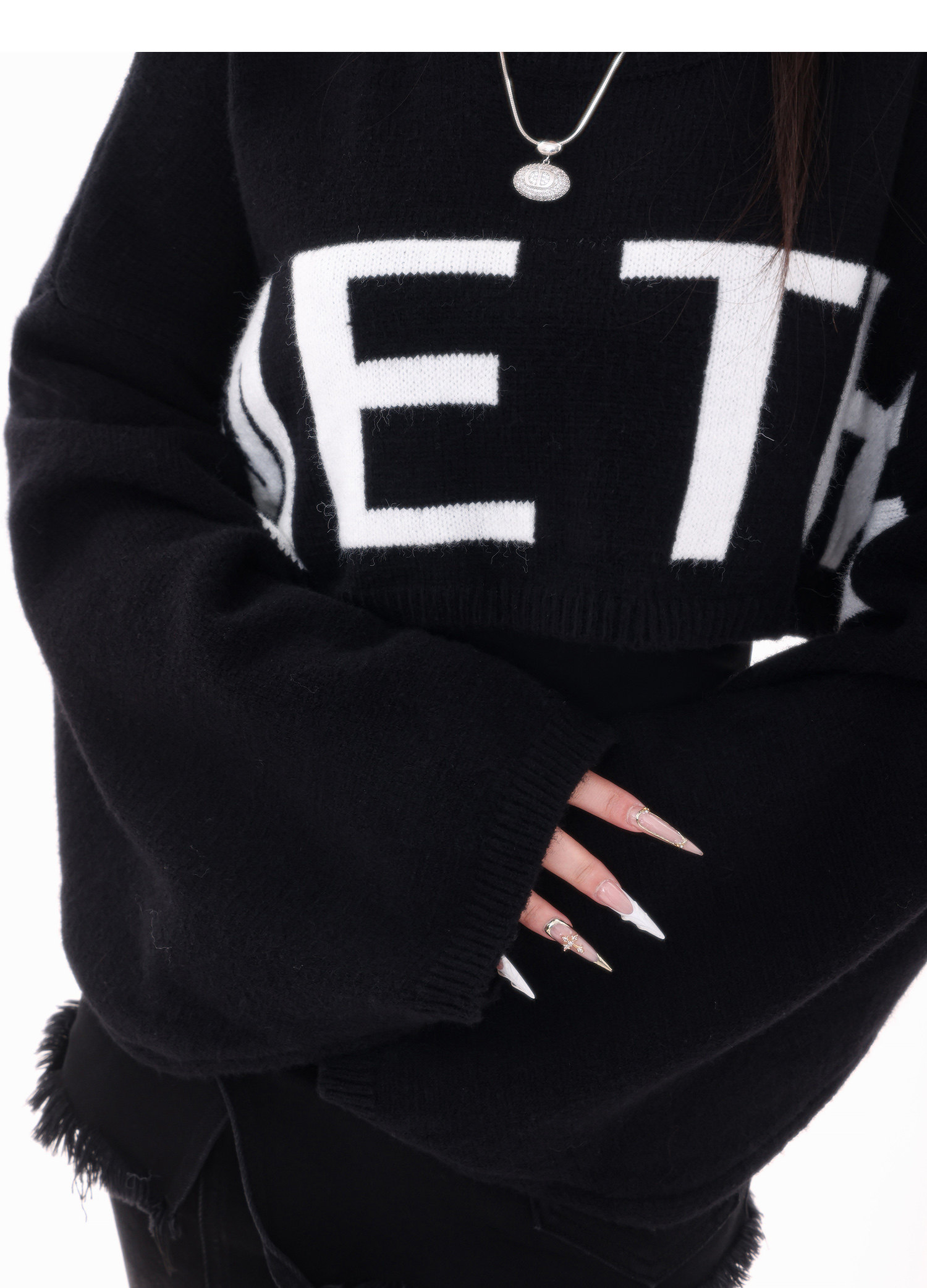 ABWLR潮流速遞-原創韓式蝙蝠袖毛針織衫女寬松百搭字母設計感毛衣