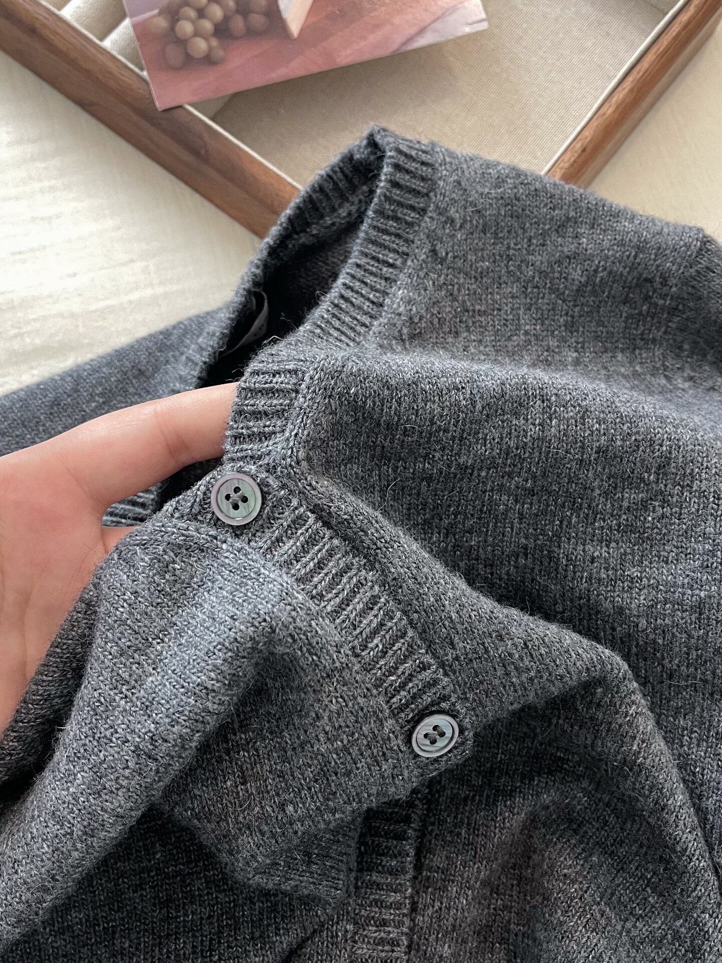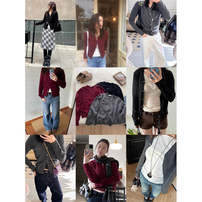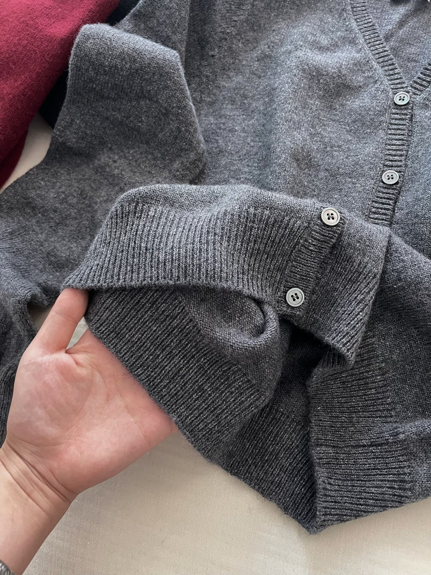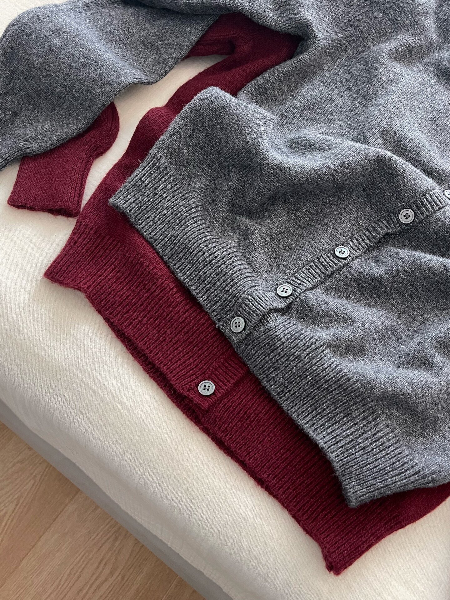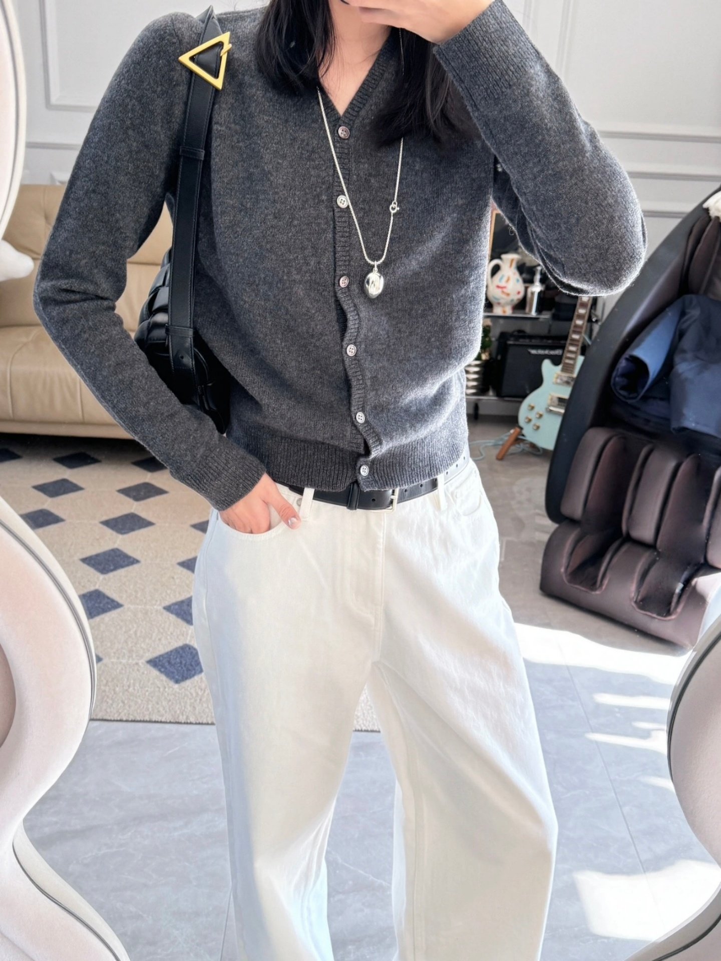 歐陽娜娜同款@at貴牌平替 經典基礎V領修身羊毛針織開衫毛衣外套