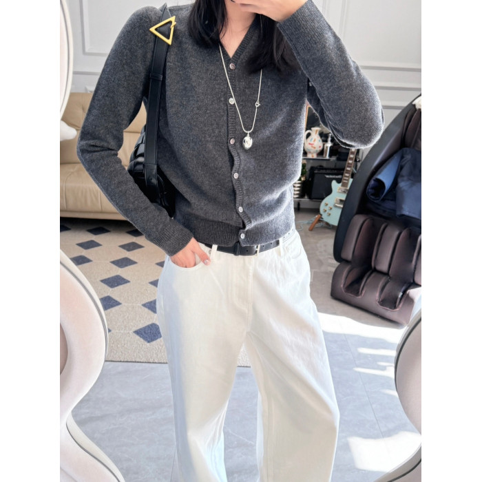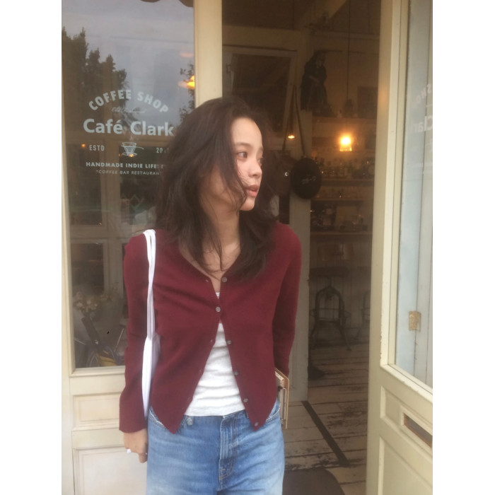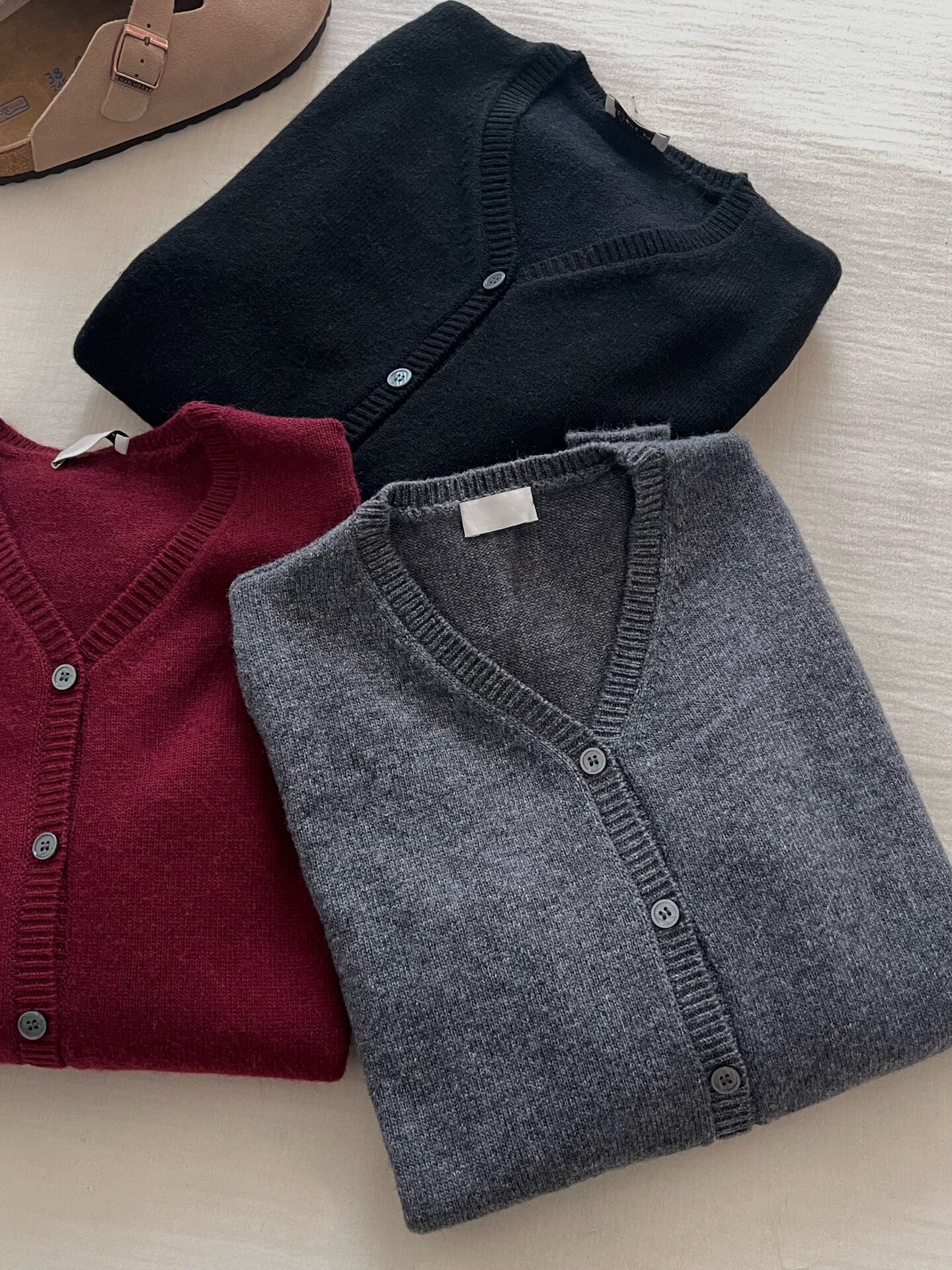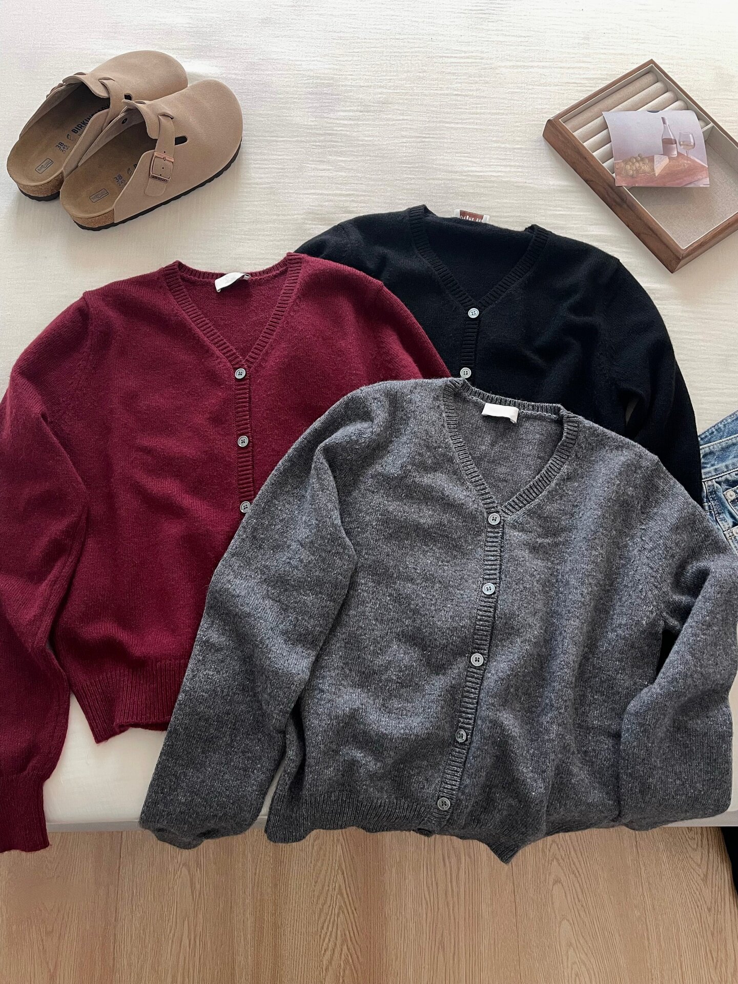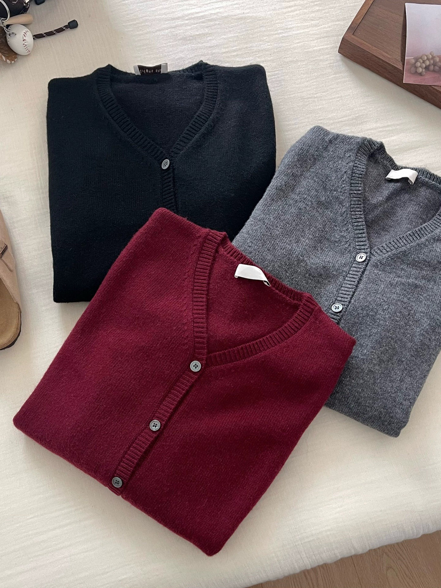 歐陽娜娜同款@at貴牌平替 經典基礎V領修身羊毛針織開衫毛衣外套