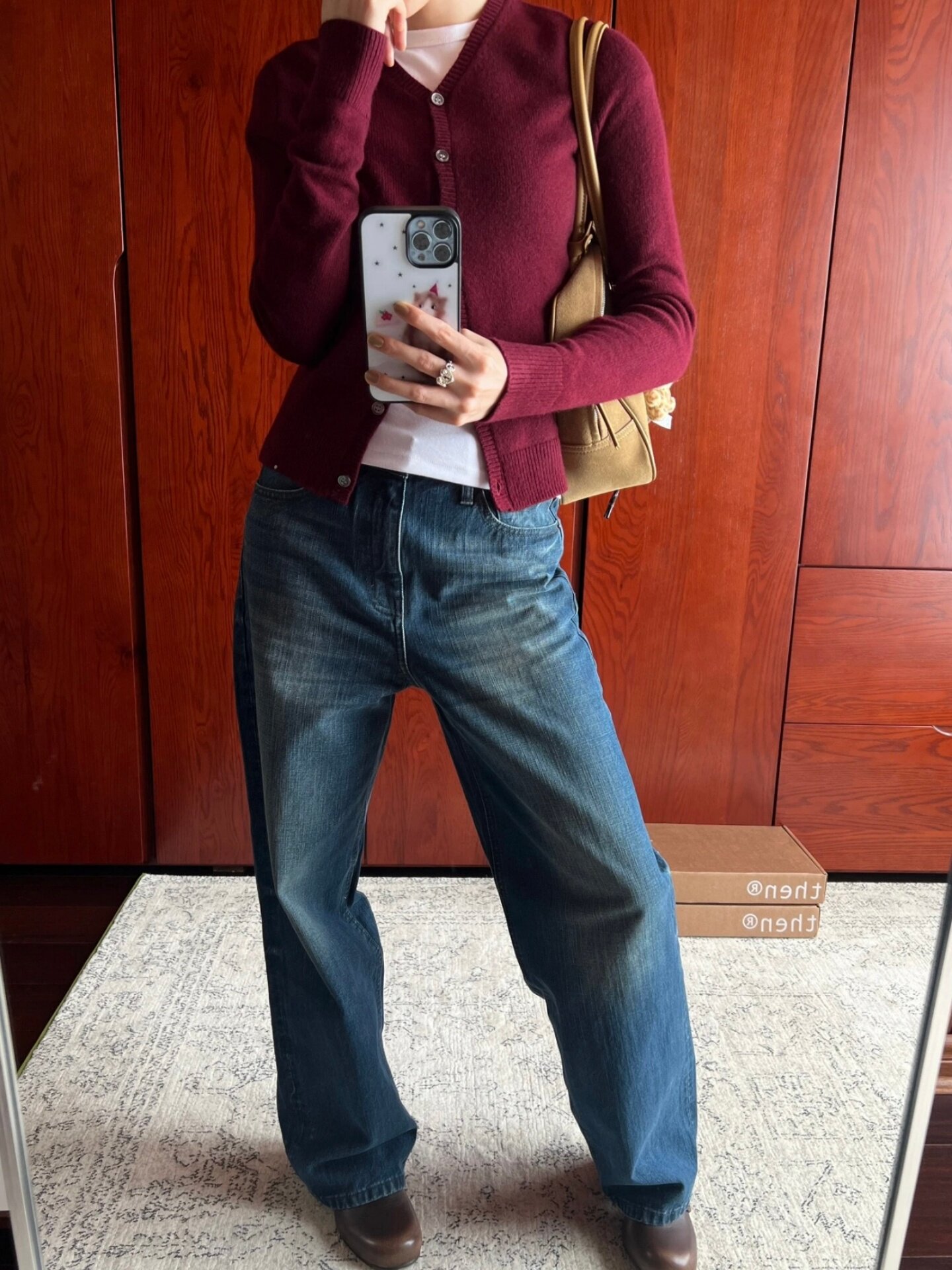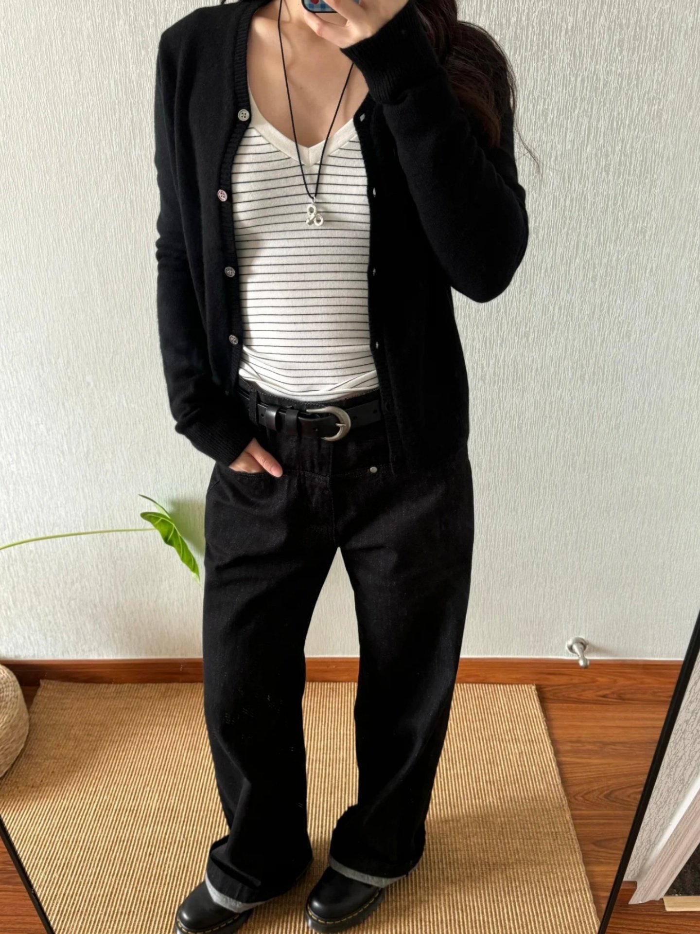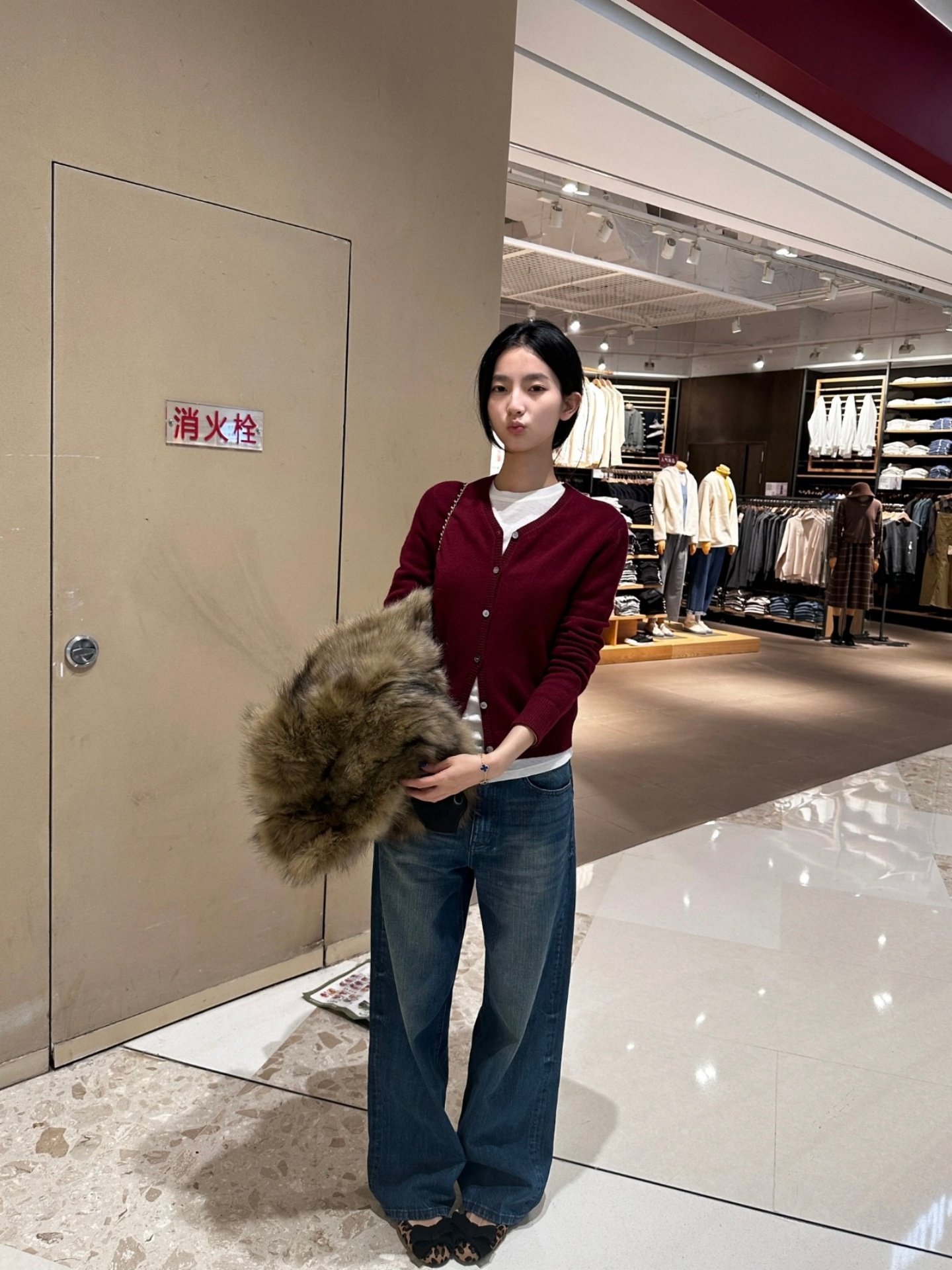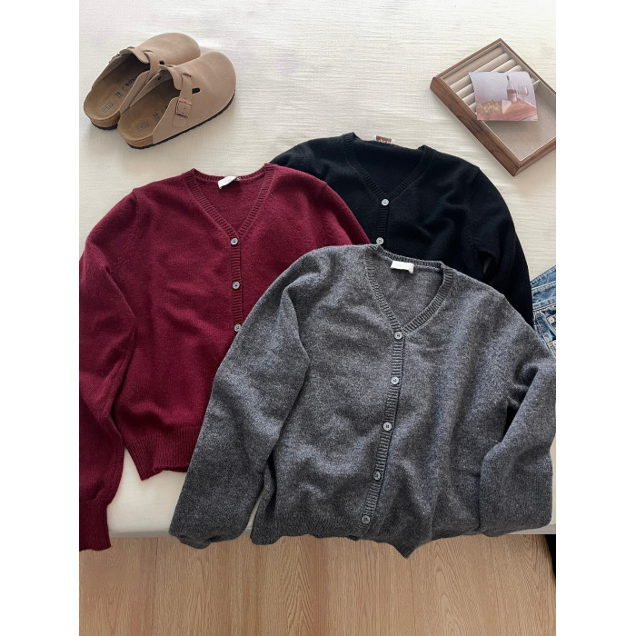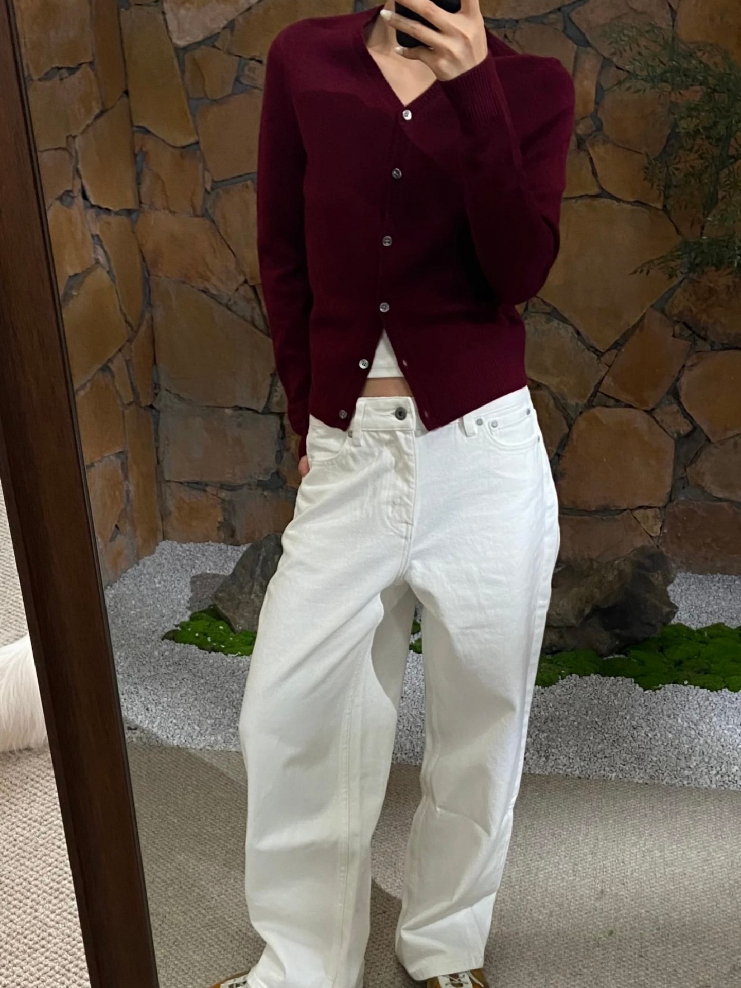 歐陽娜娜同款@at貴牌平替 經典基礎V領修身羊毛針織開衫毛衣外套