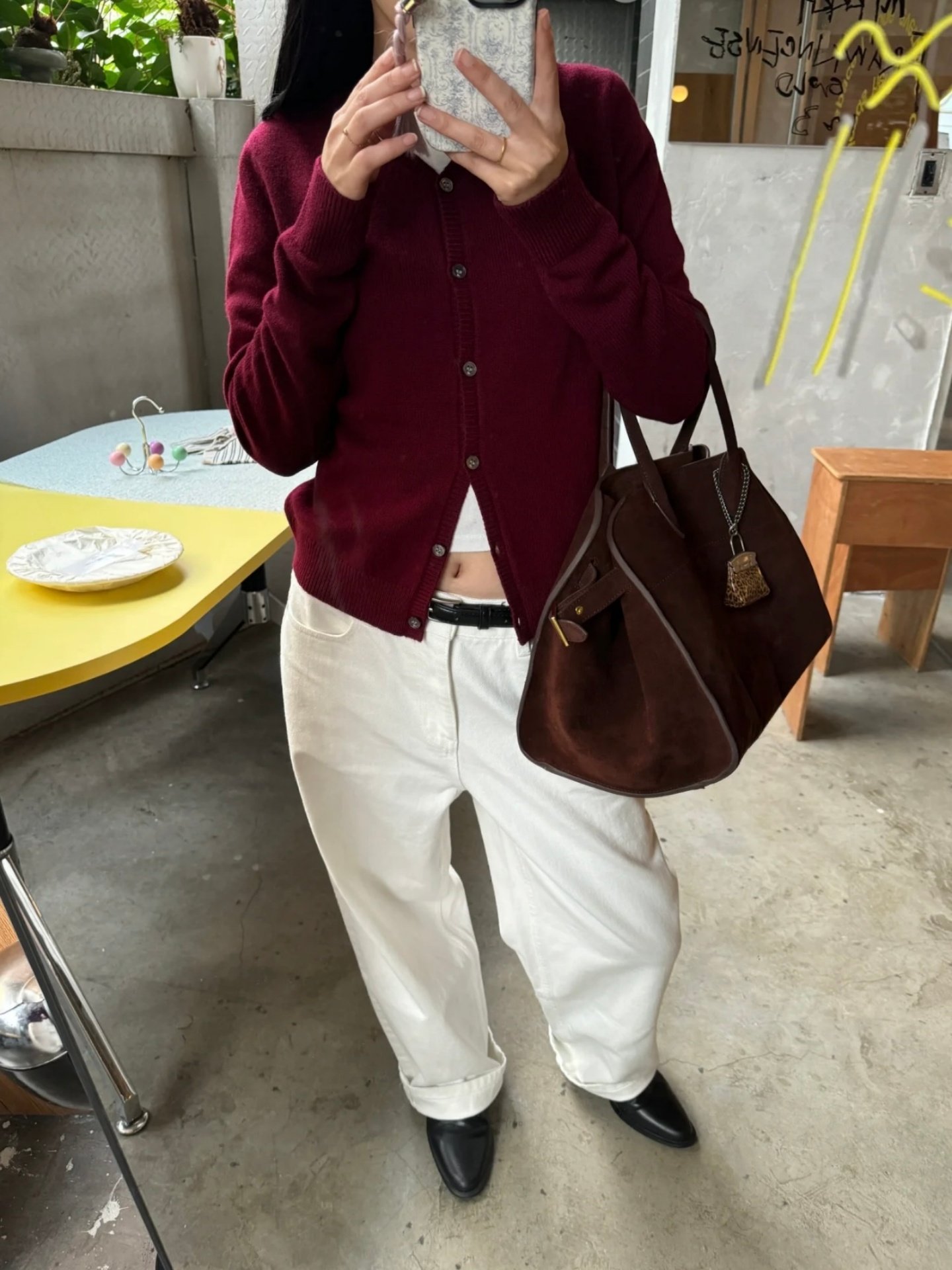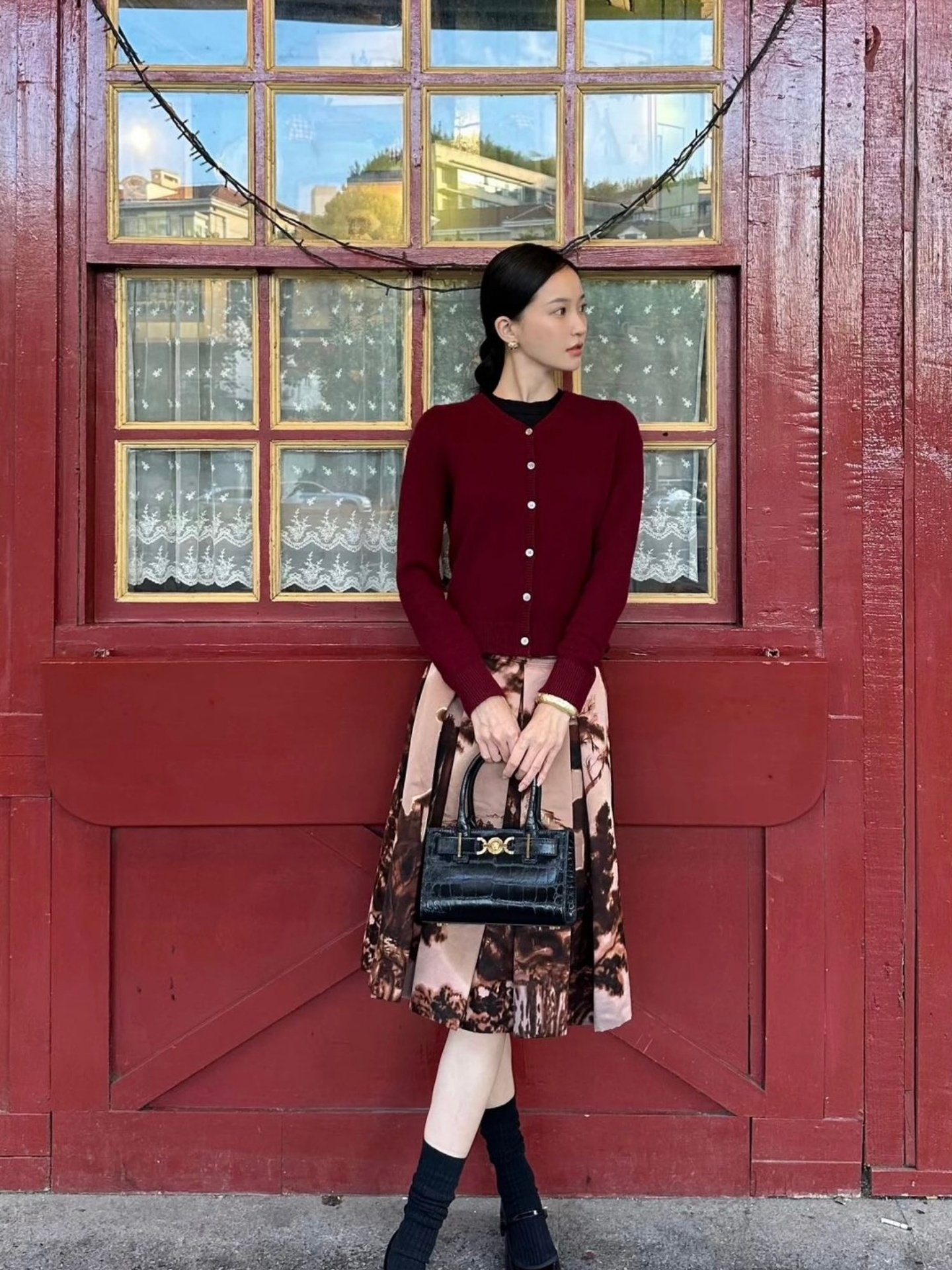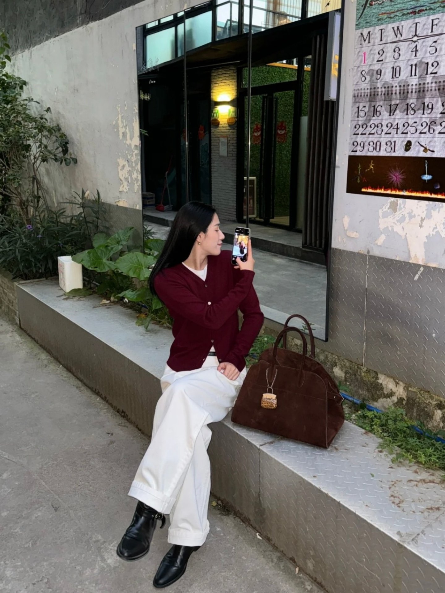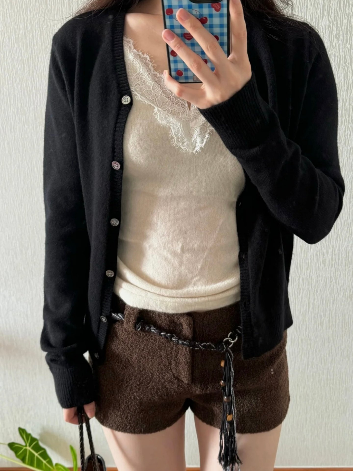 歐陽娜娜同款@at貴牌平替 經典基礎V領修身羊毛針織開衫毛衣外套