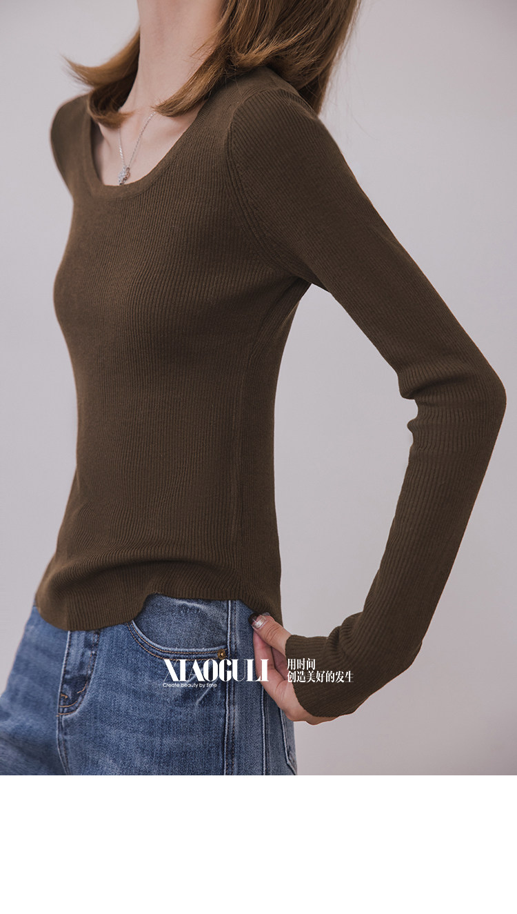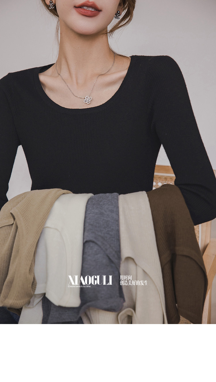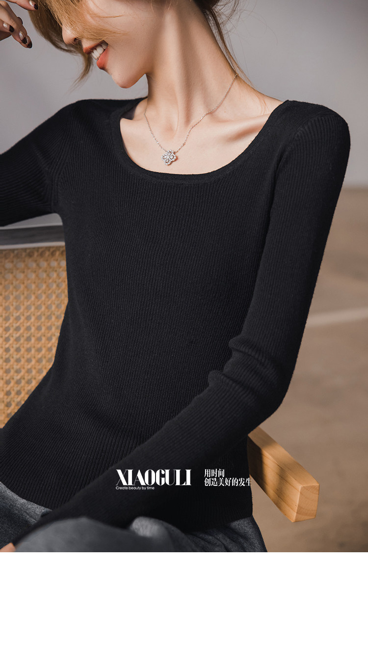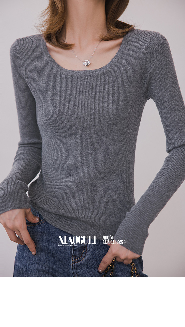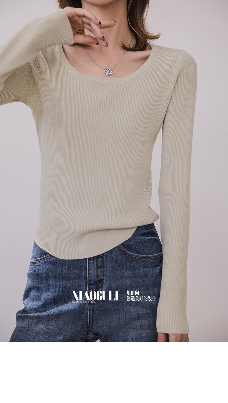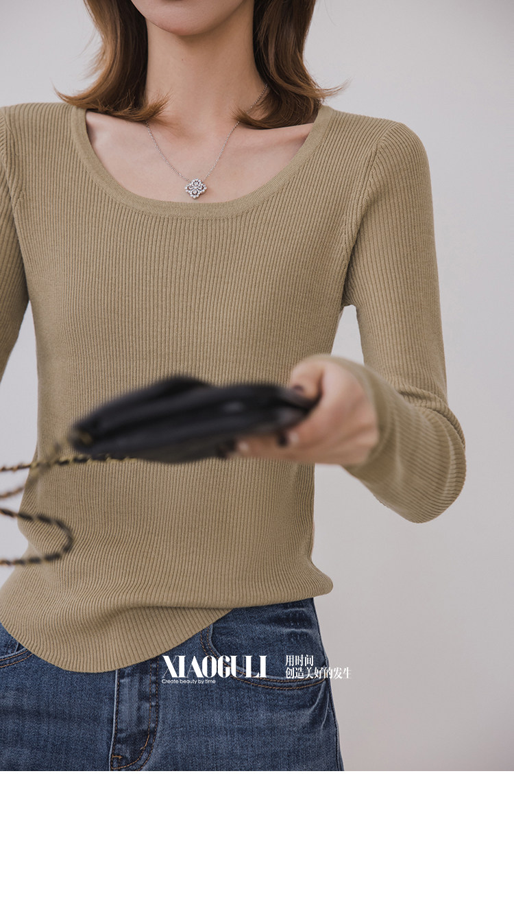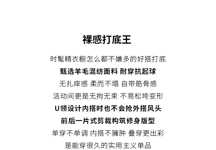 小穀粒裸感打底王 羊毛混紡針織衫女秋季新款u領修身顯瘦百搭上衣