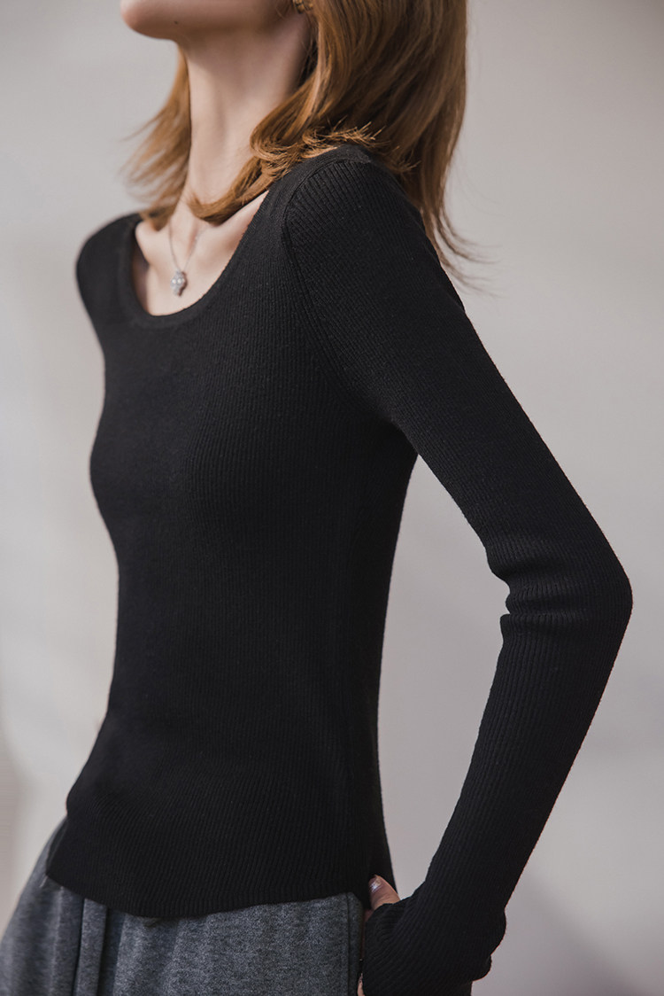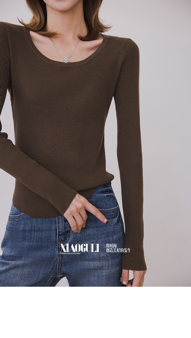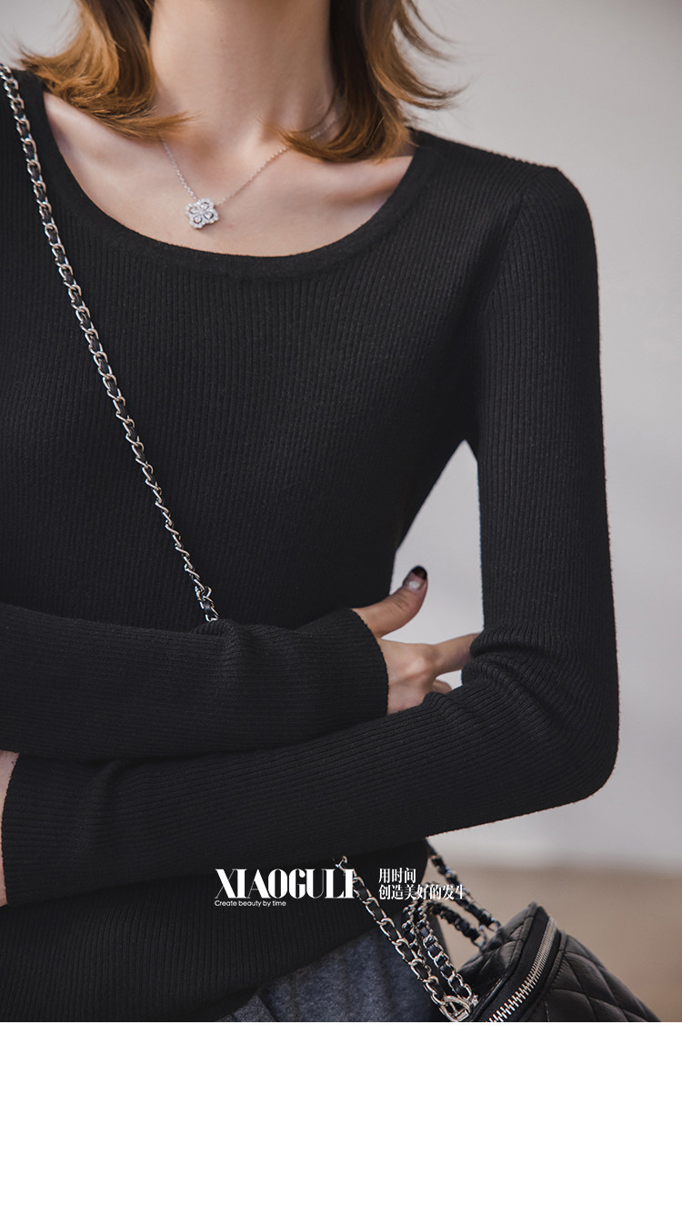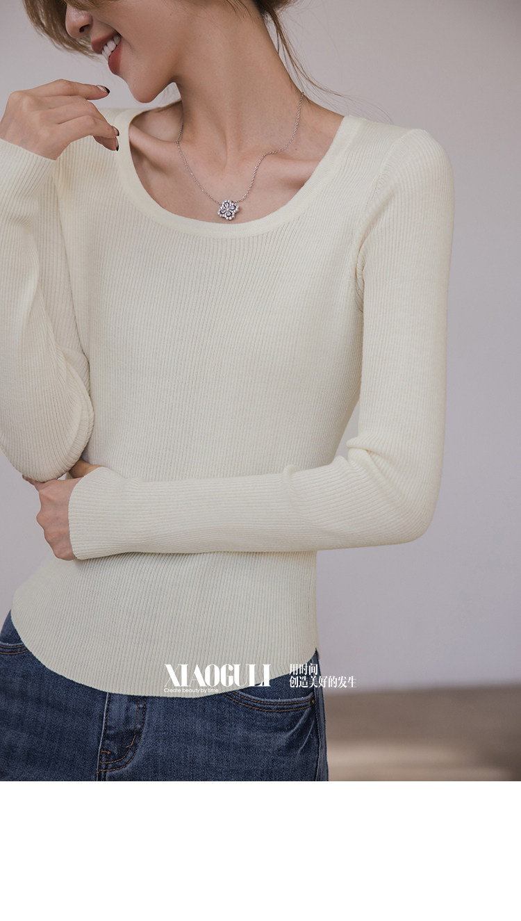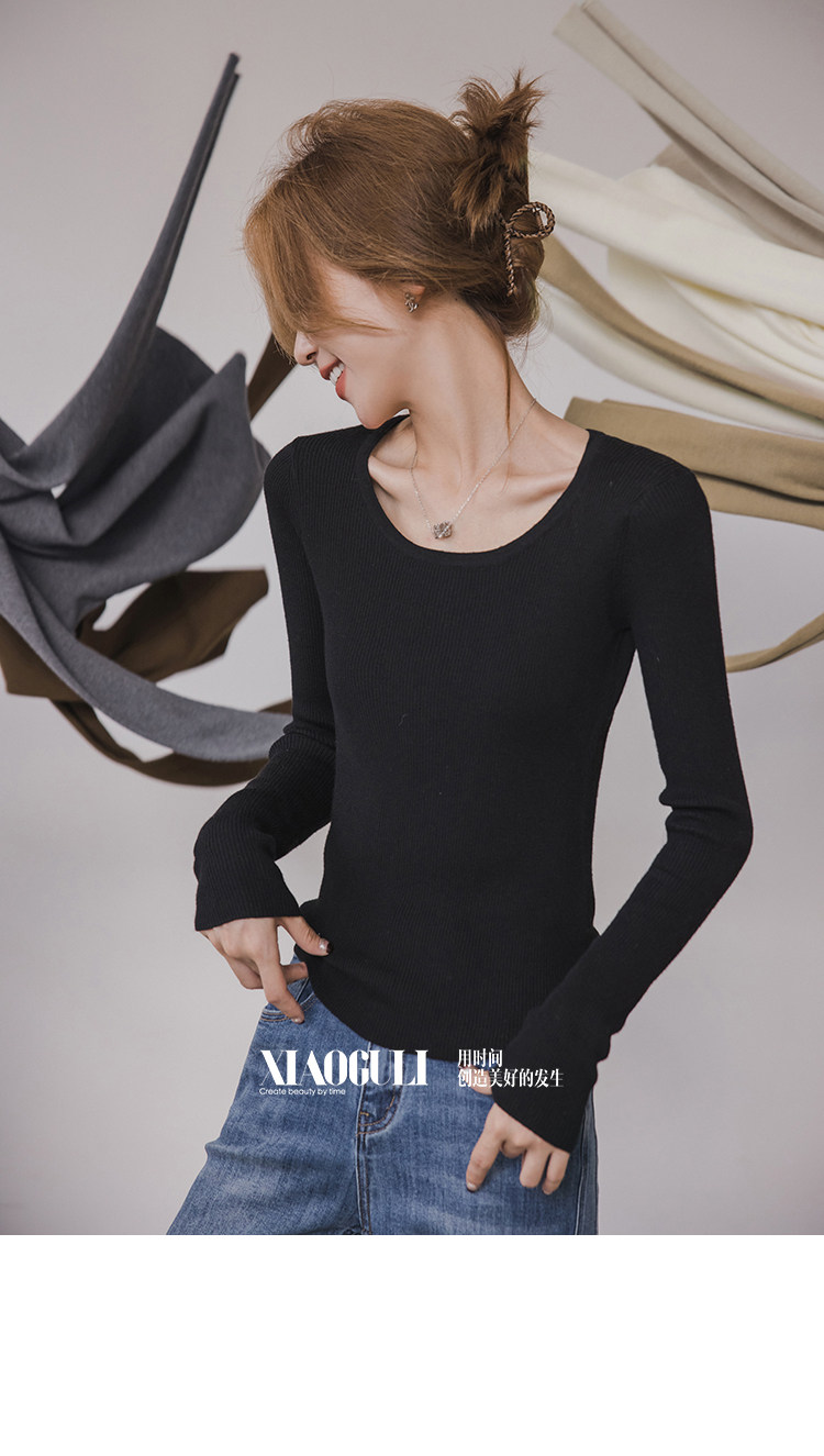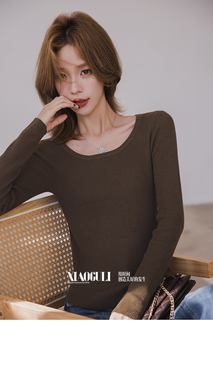 小穀粒裸感打底王 羊毛混紡針織衫女秋季新款u領修身顯瘦百搭上衣
