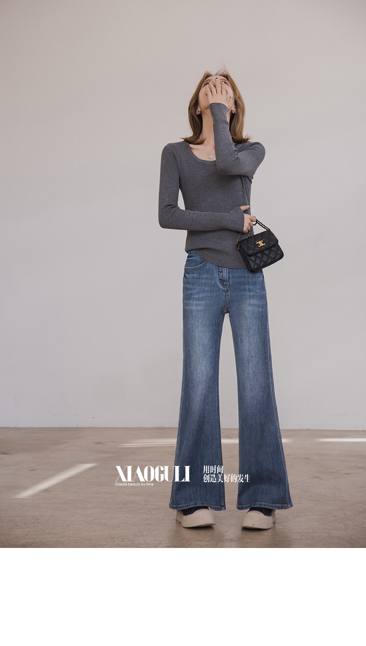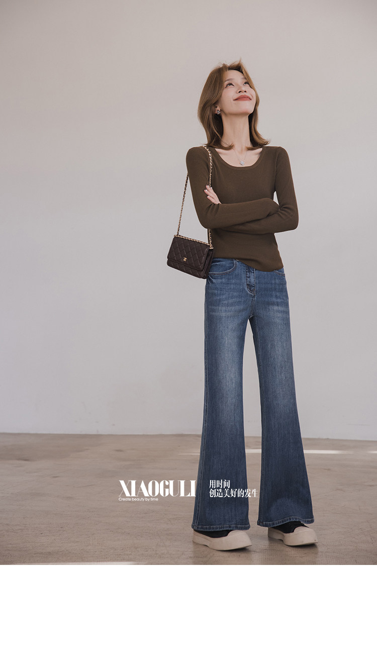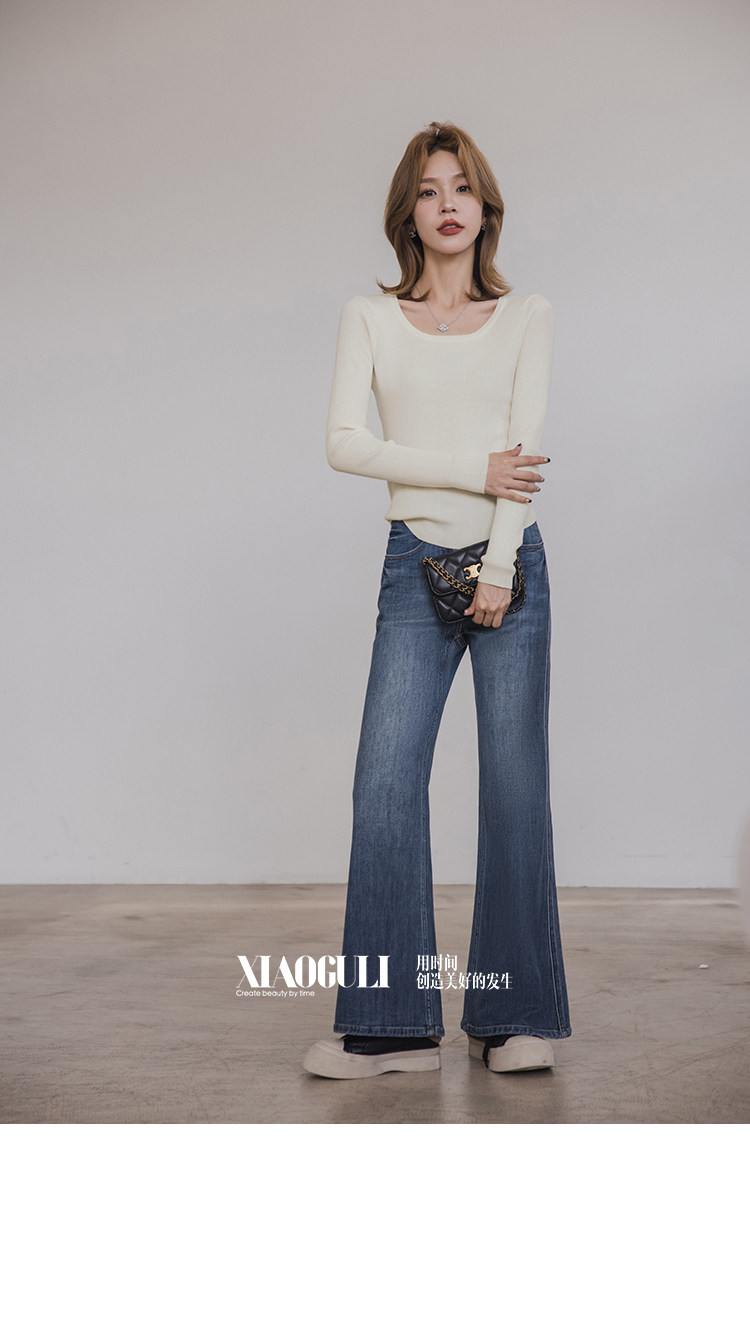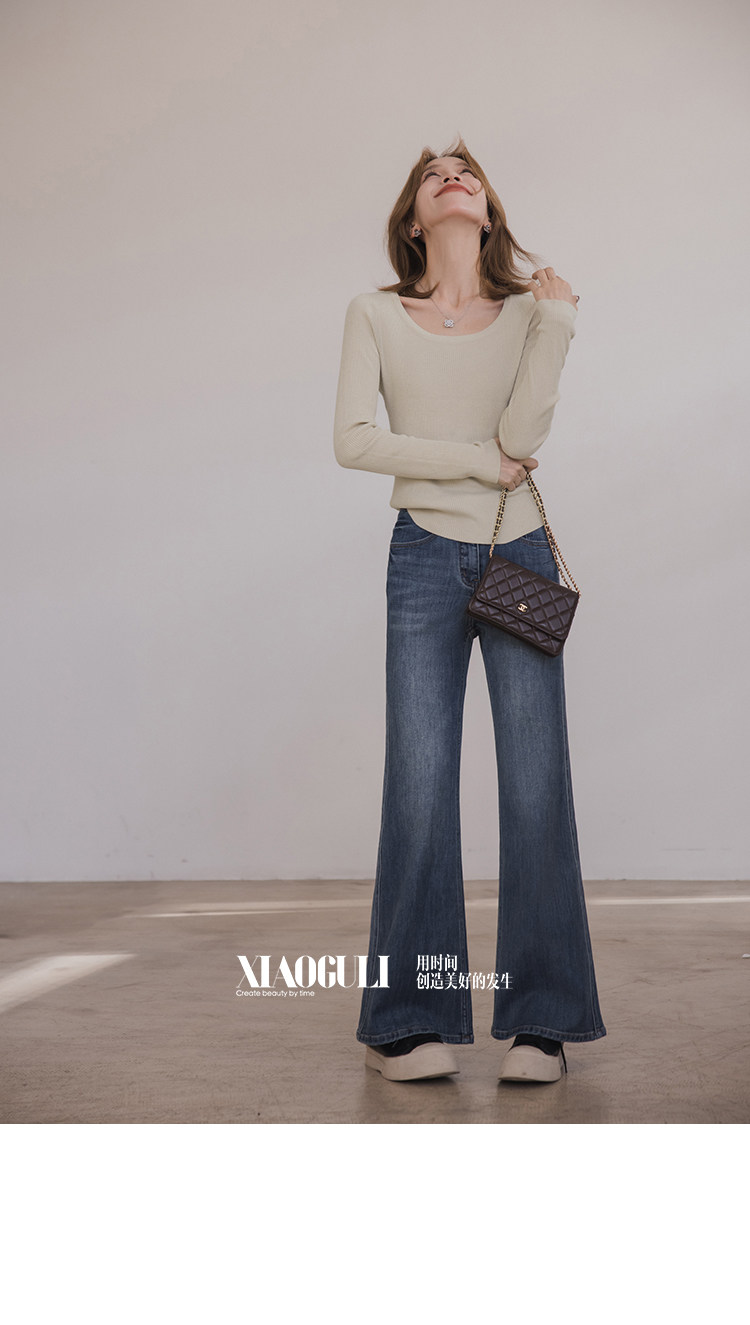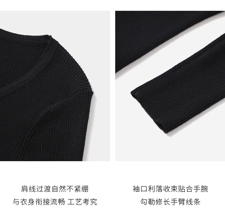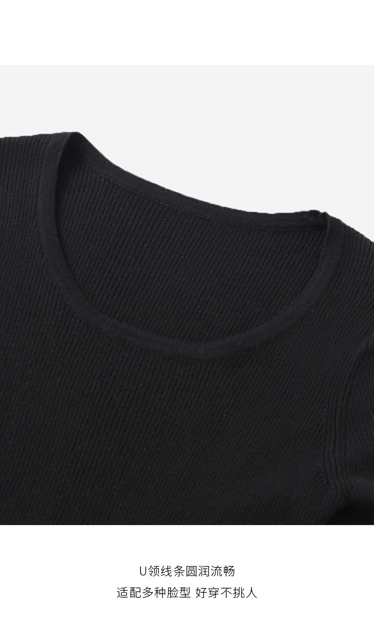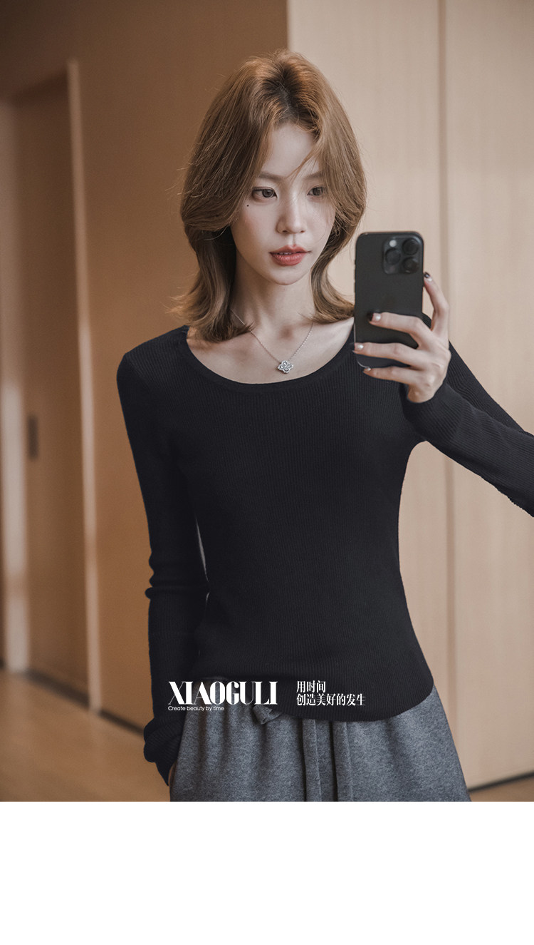 小穀粒裸感打底王 羊毛混紡針織衫女秋季新款u領修身顯瘦百搭上衣