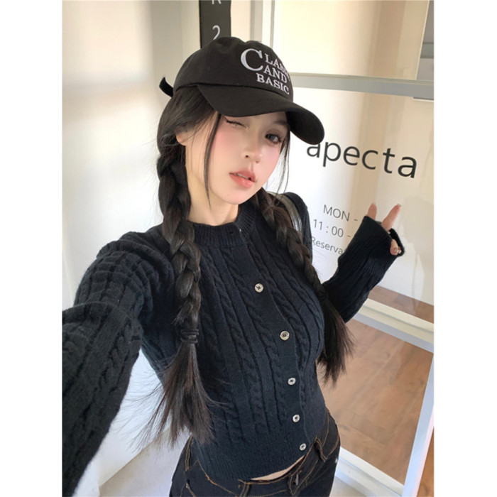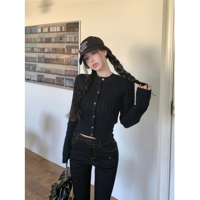 韓系麻花復古初春針織開衫短款外搭2026新款春季小個子毛衣外套女