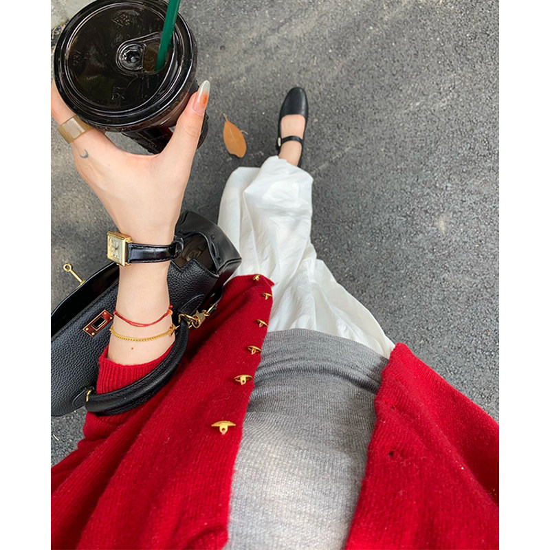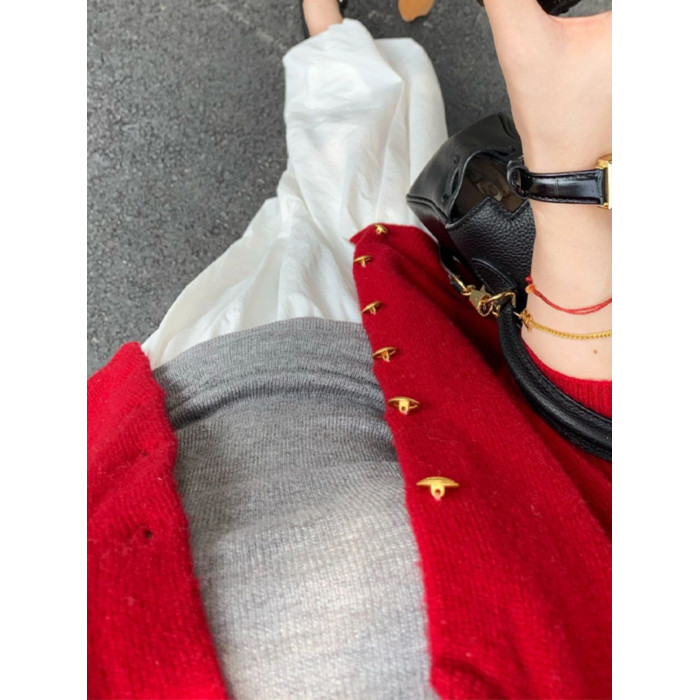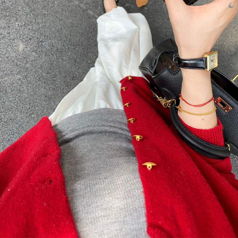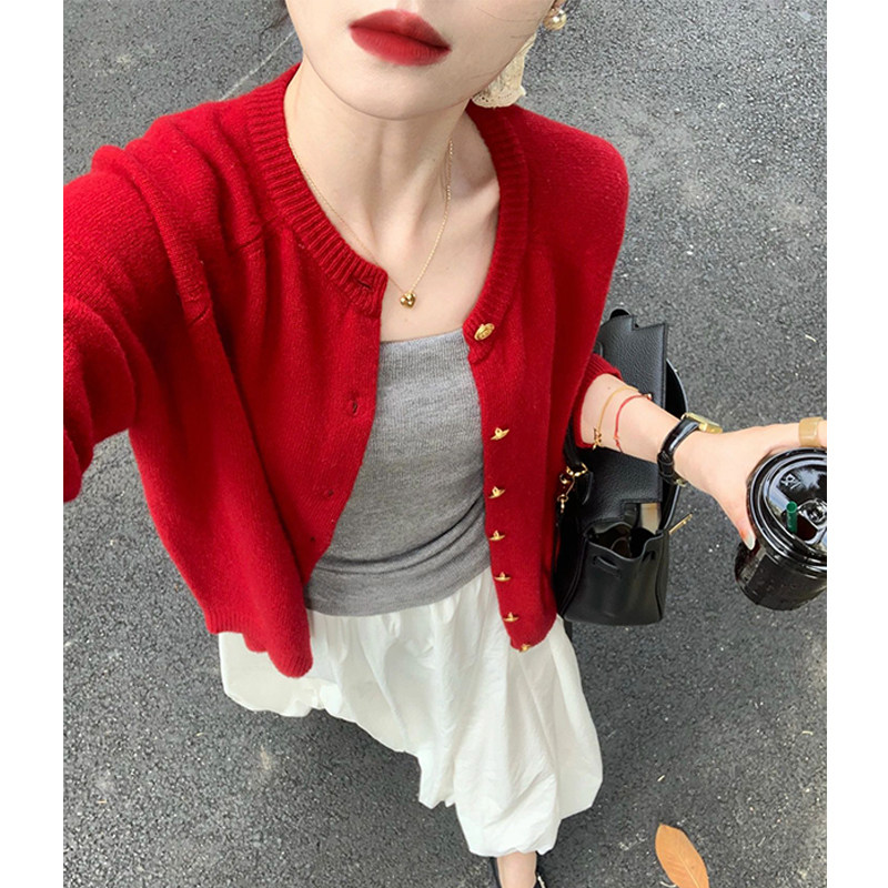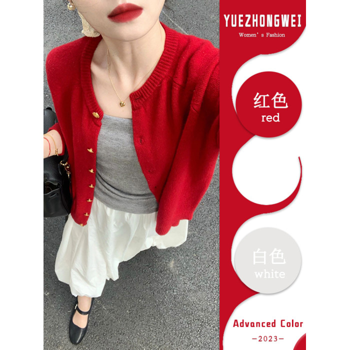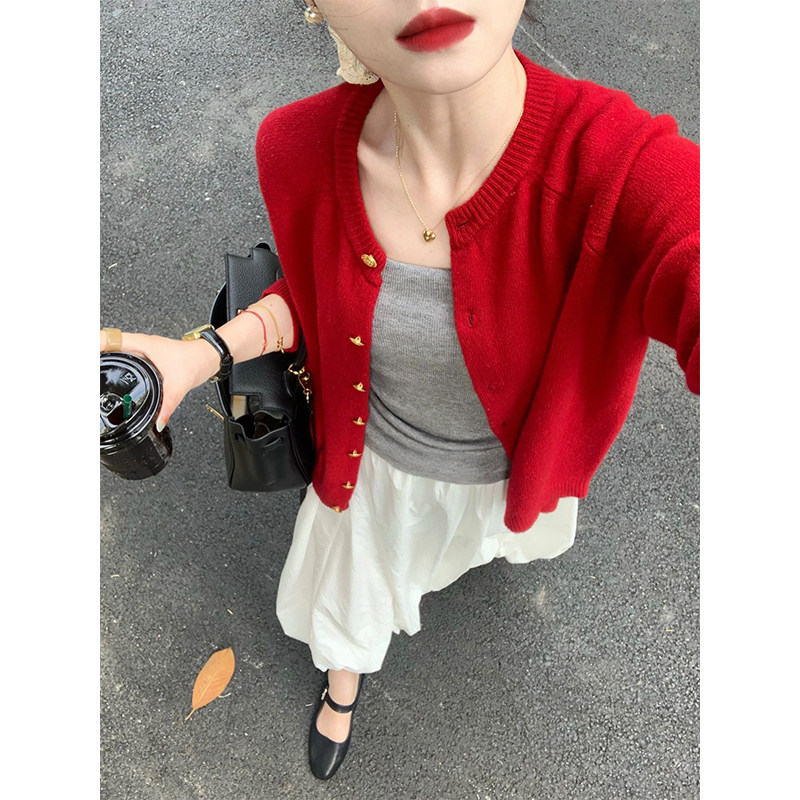 本命年2025新年聖誕紅色小香風毛衣外套女冬季小個子短款針織開衫