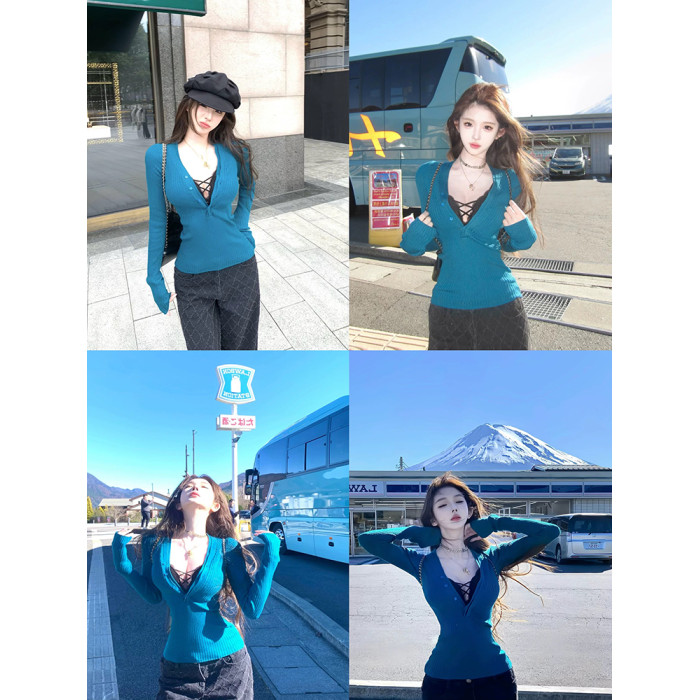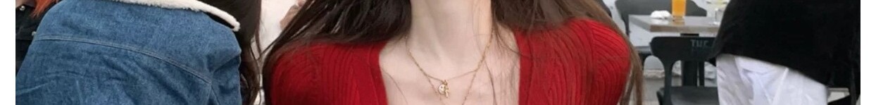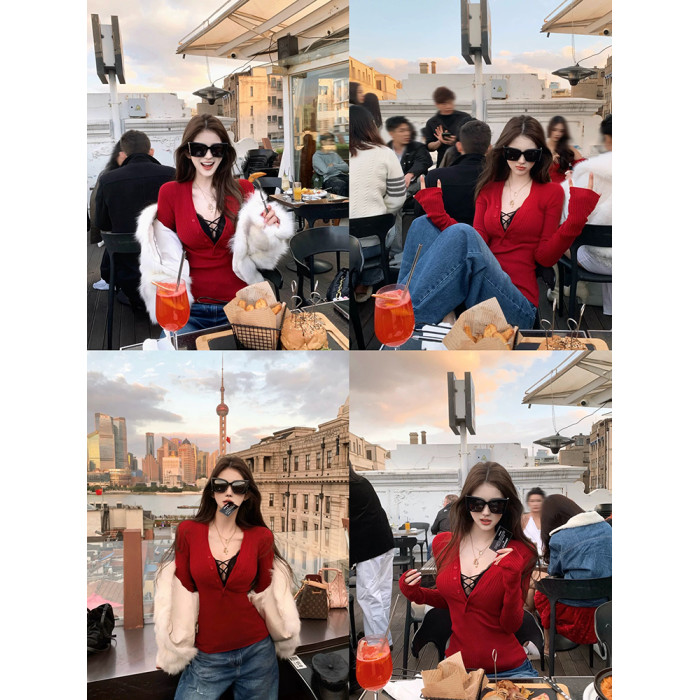 純欲性感聖誕紅色V領針織衫上衣女設計感修身打底衫內搭套裝秋冬