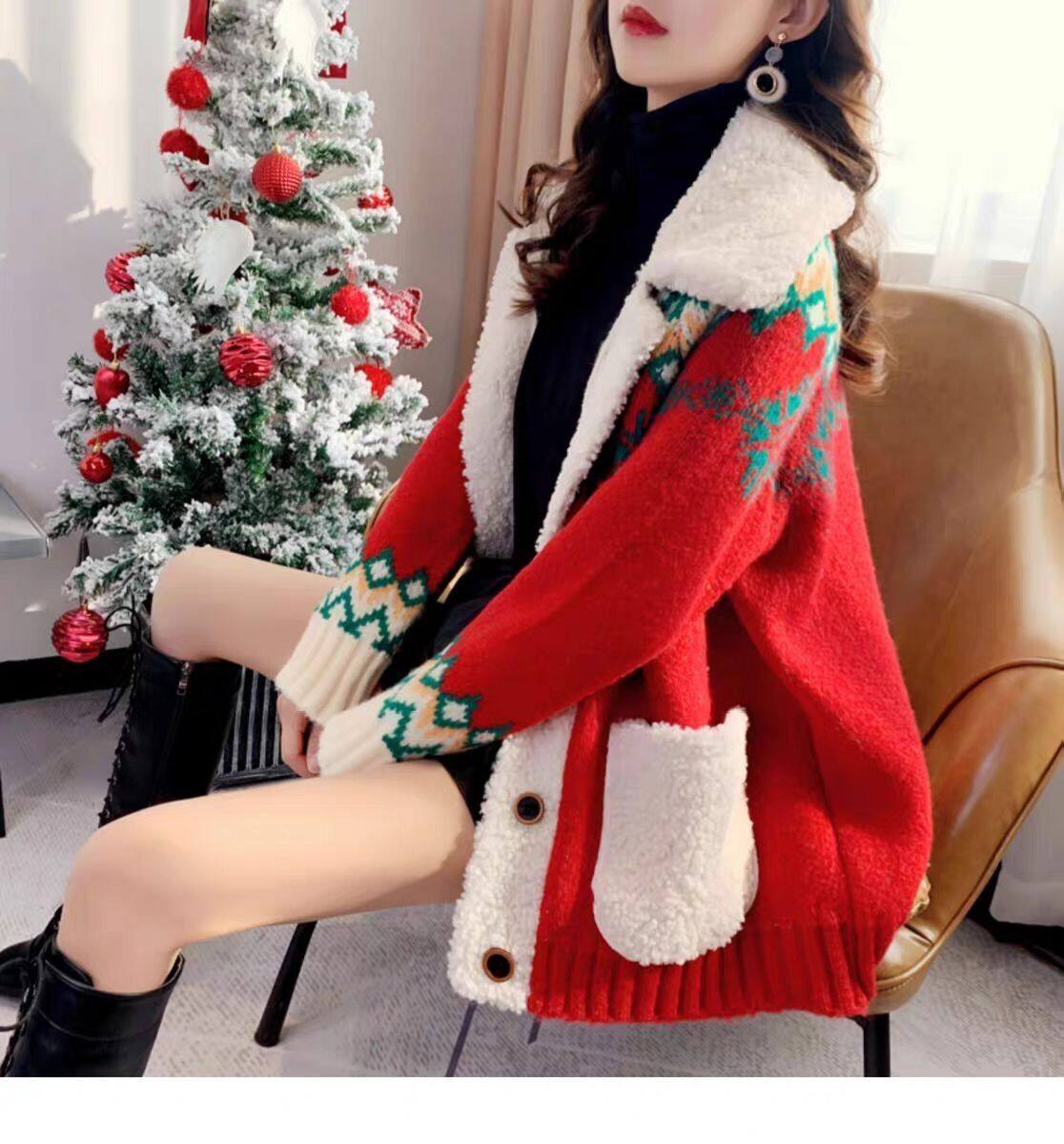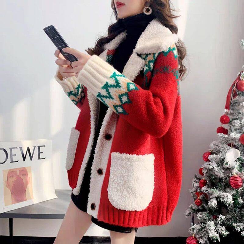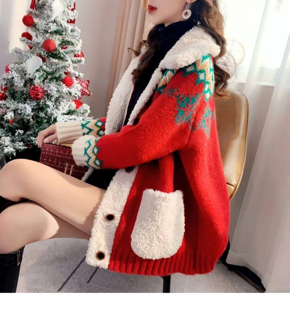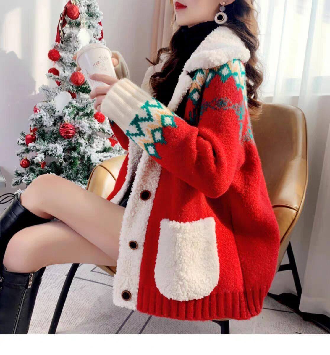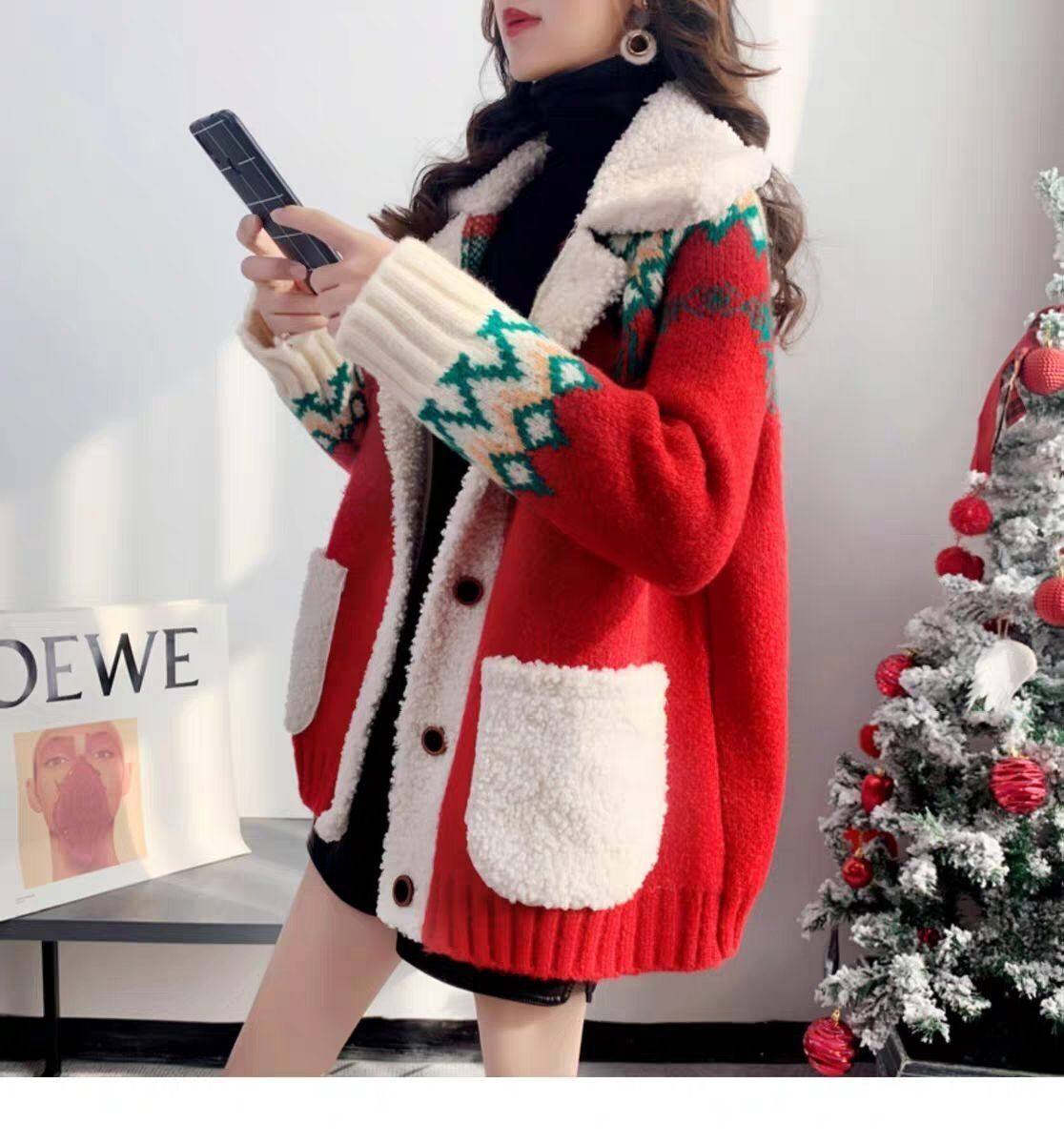 聖誕紅色開衫毛衣女2025年秋冬新款寬松外穿加厚慵懶風羊羔毛外套