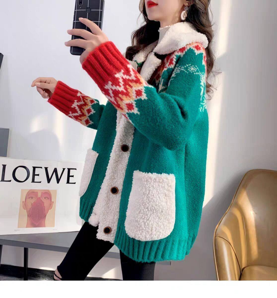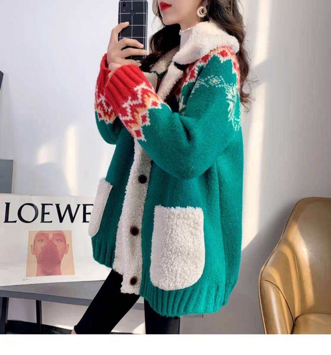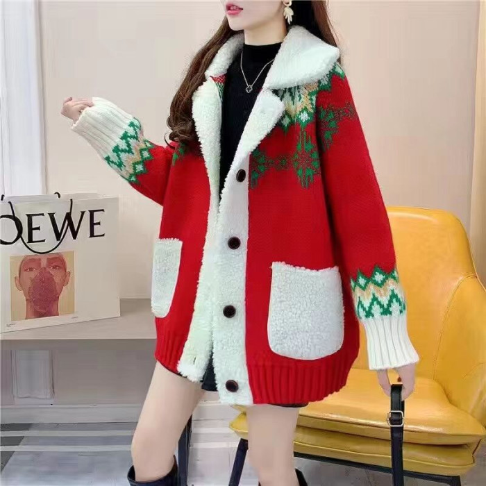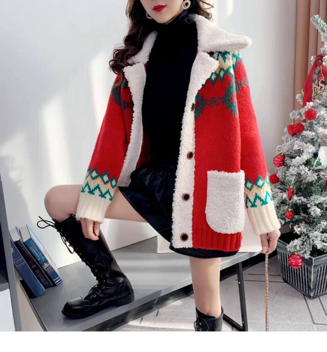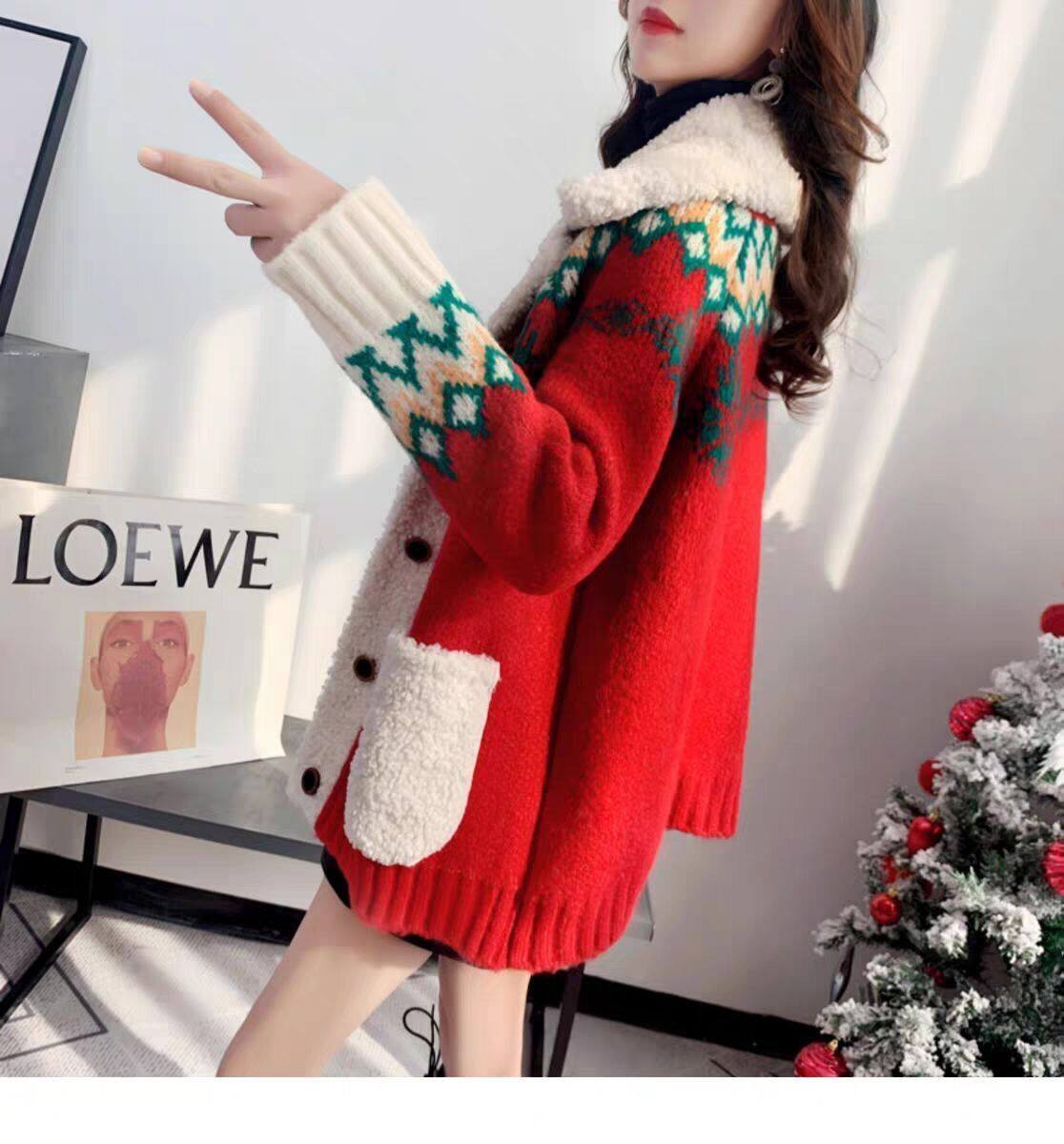 聖誕紅色開衫毛衣女2025年秋冬新款寬松外穿加厚慵懶風羊羔毛外套