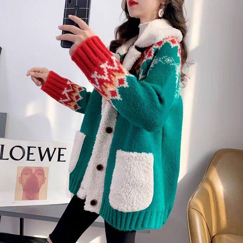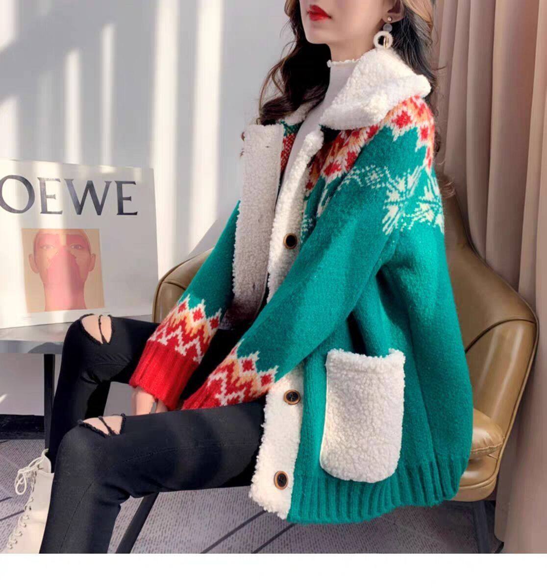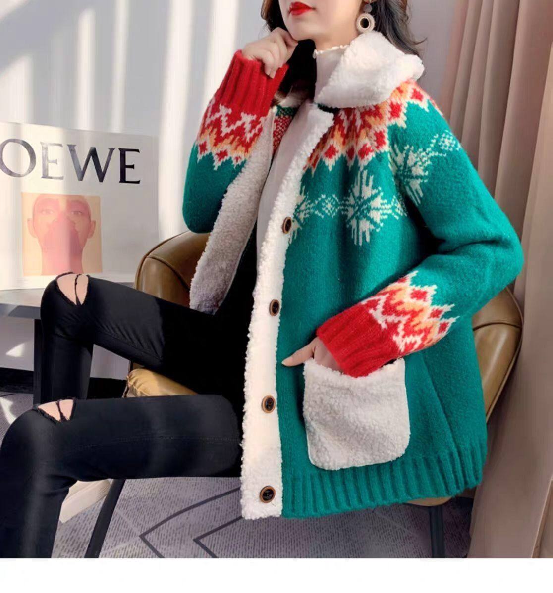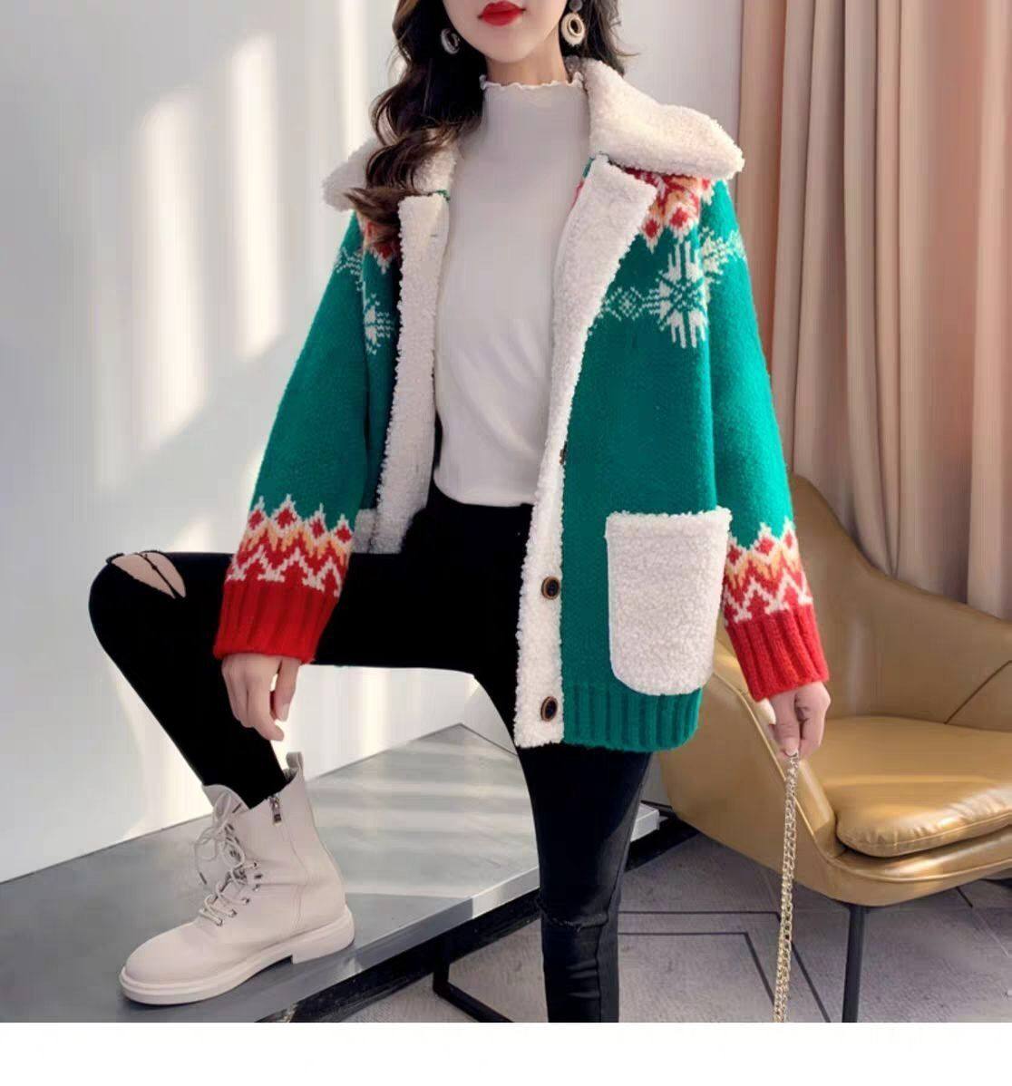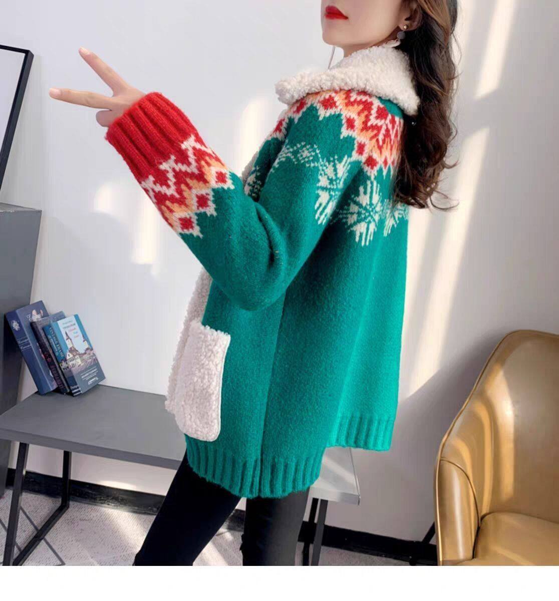 聖誕紅色開衫毛衣女2025年秋冬新款寬松外穿加厚慵懶風羊羔毛外套