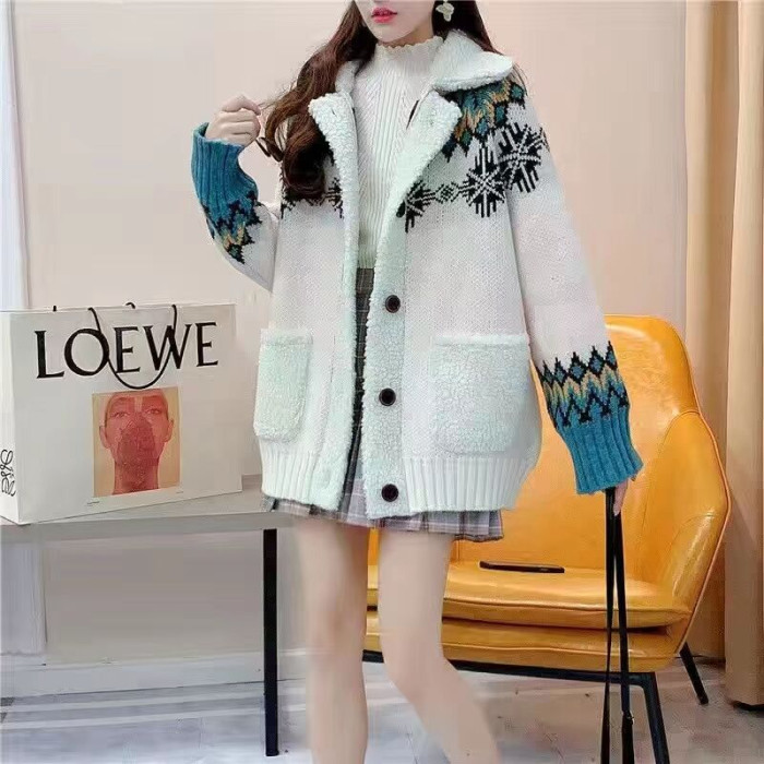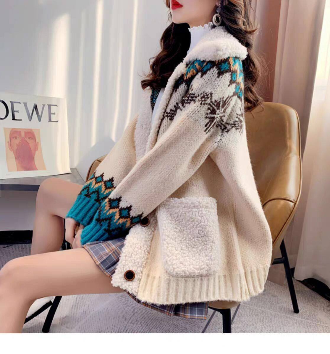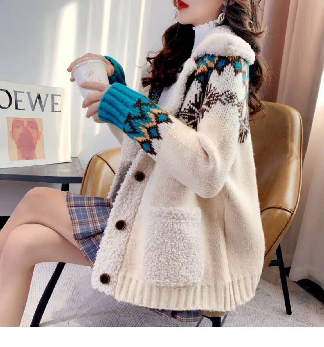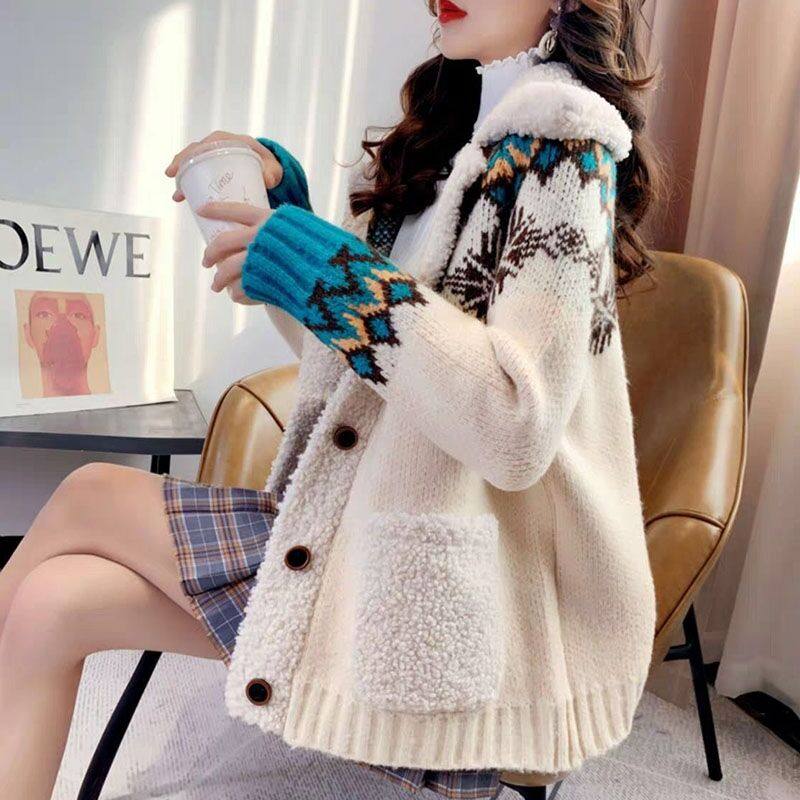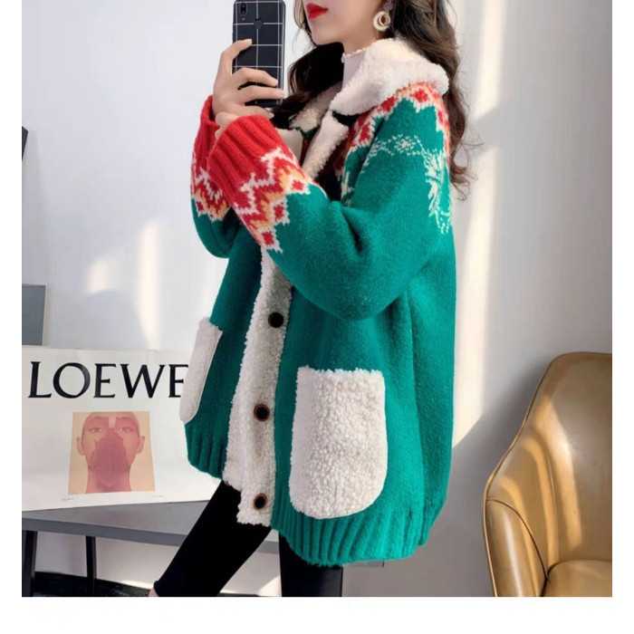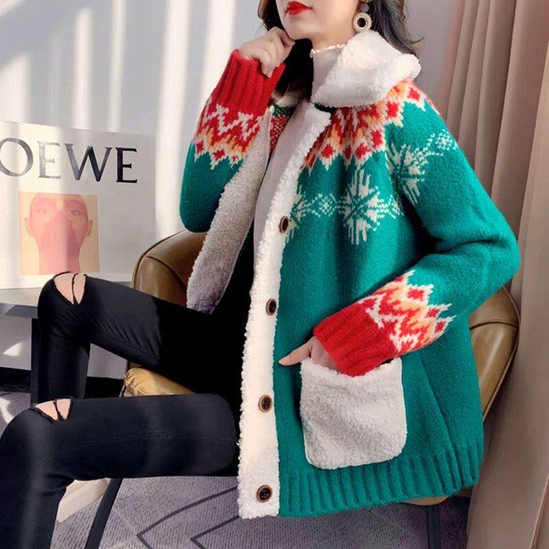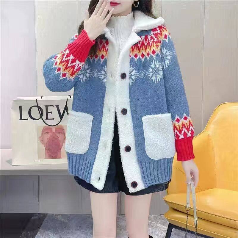 聖誕紅色開衫毛衣女2025年秋冬新款寬松外穿加厚慵懶風羊羔毛外套