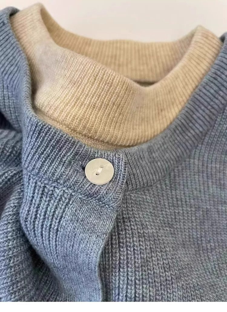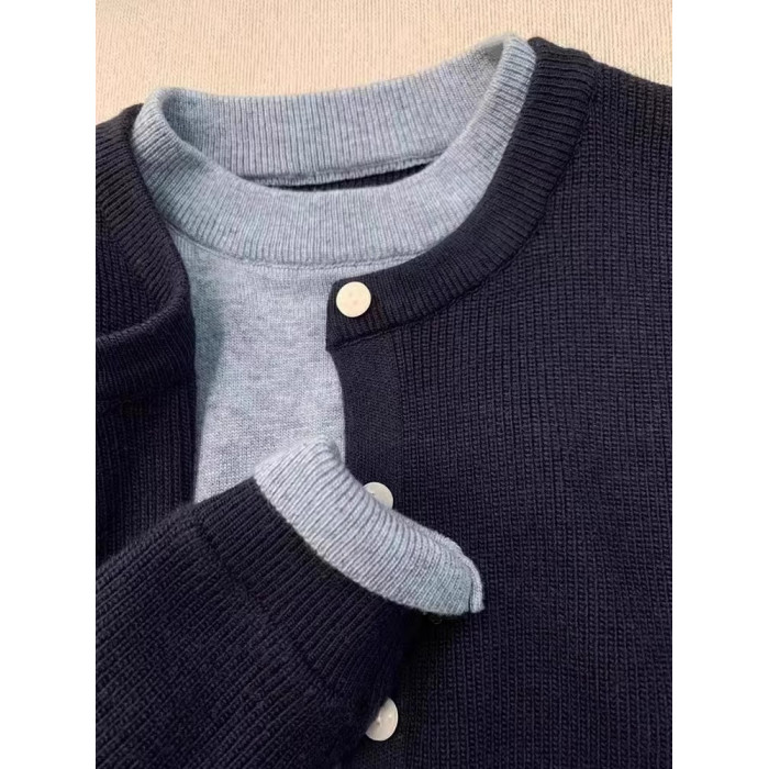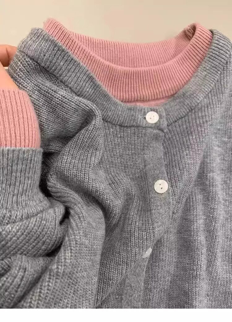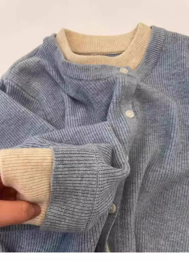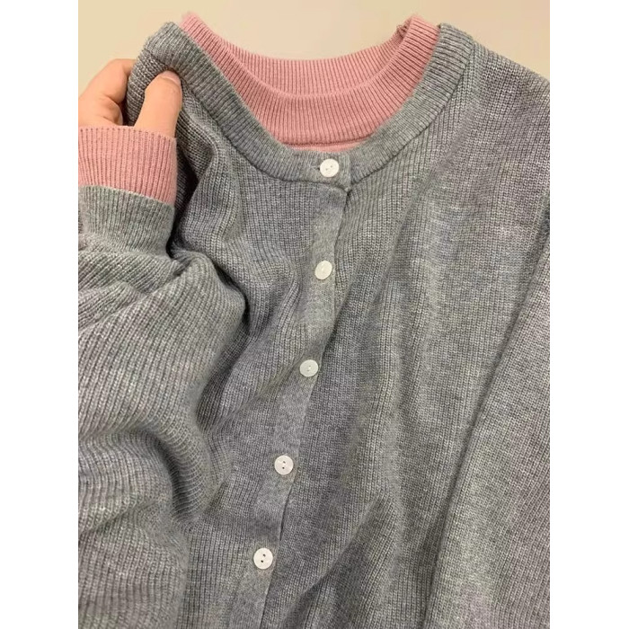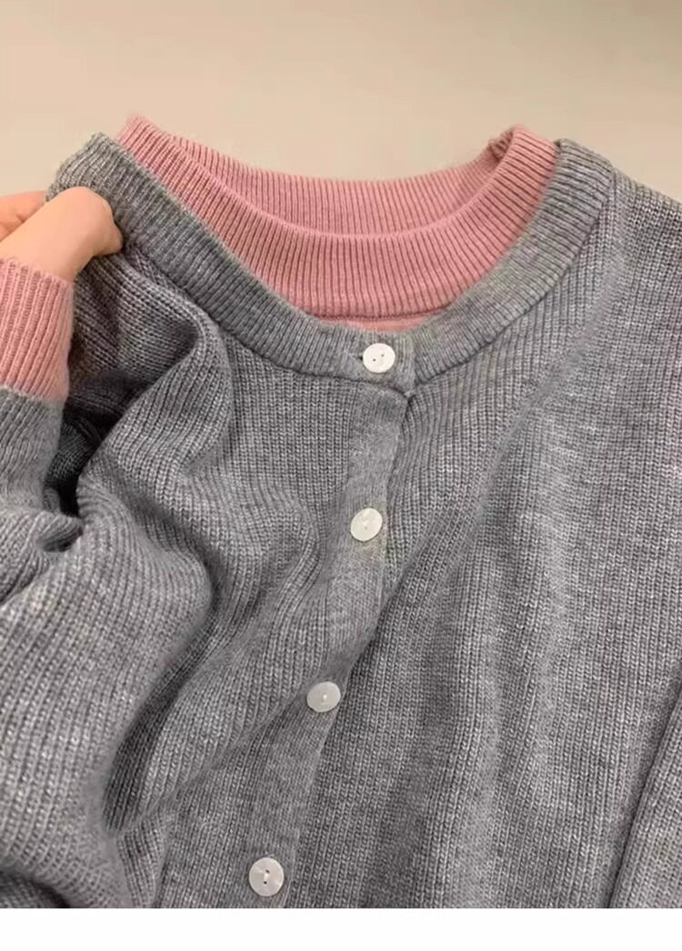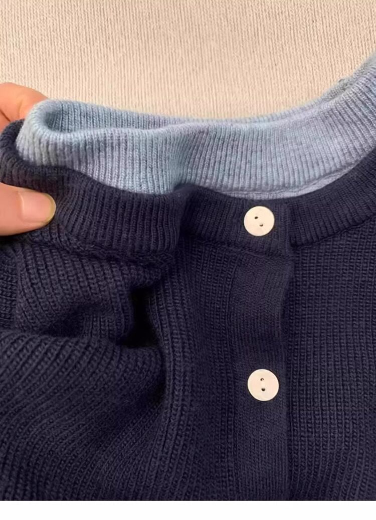新年紅色高級感假兩件聖誕紅針織衫女秋冬慵懶風圓領打底內搭毛衣