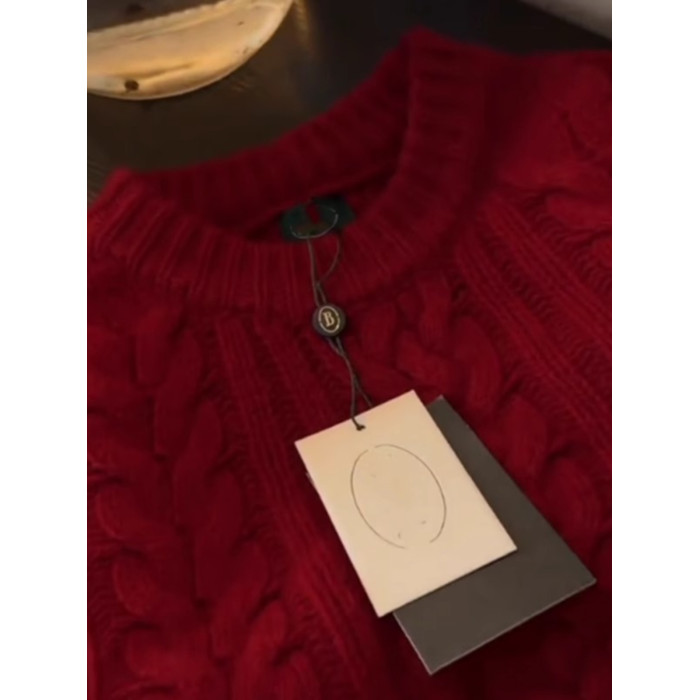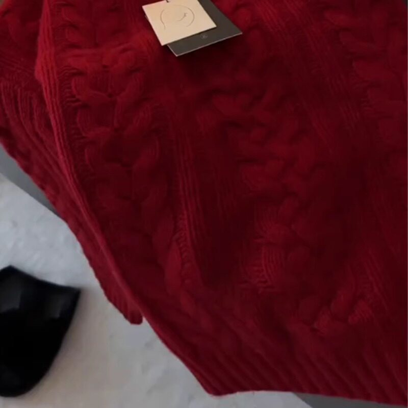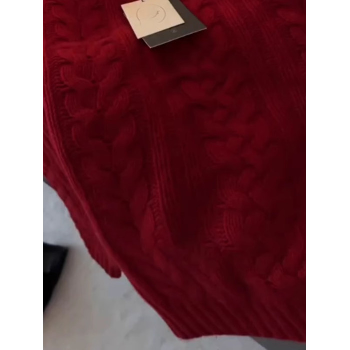 法式超好看聖誕紅色軟糯麻花毛衣女秋冬高級感別致套頭針織衫上衣