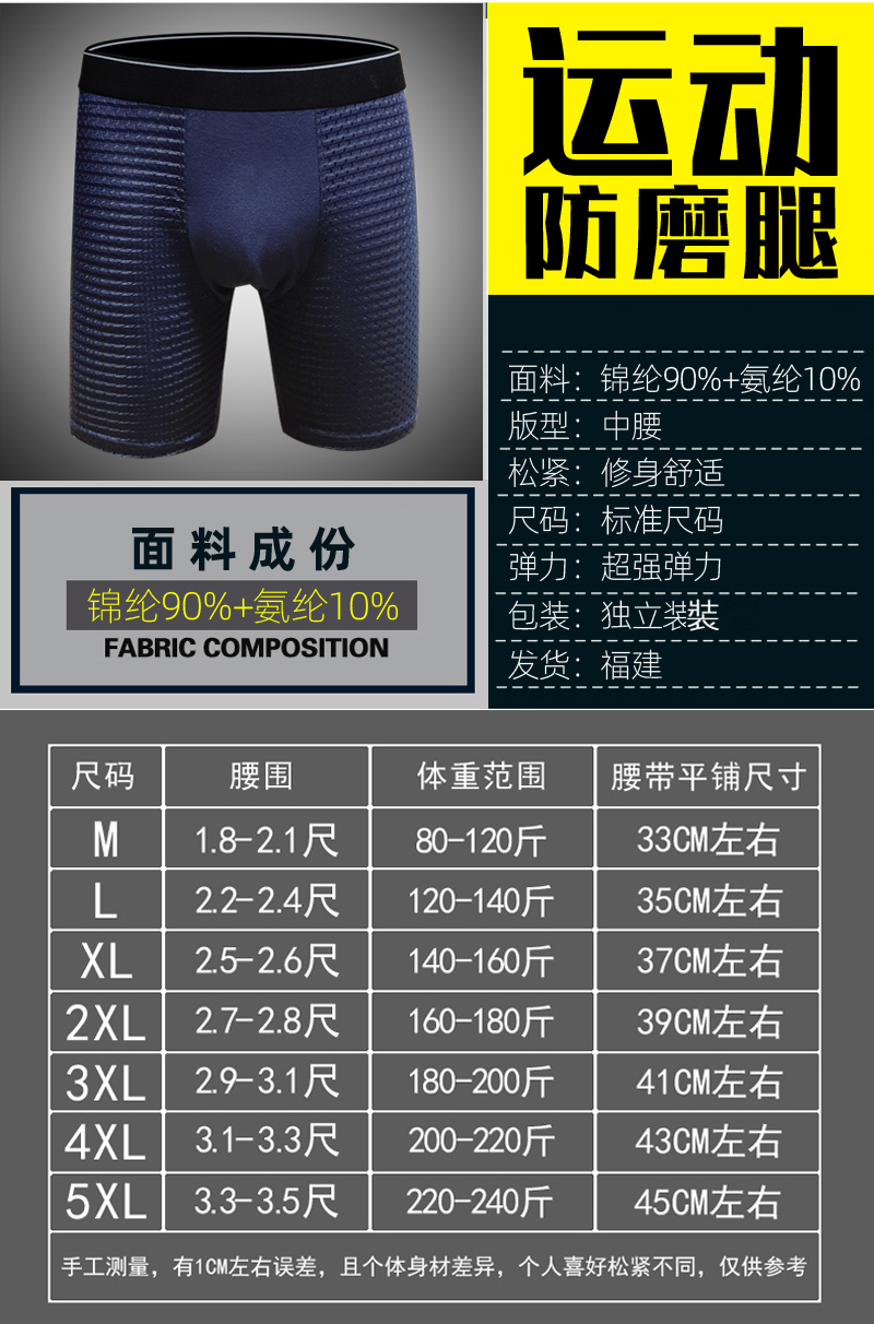 男士防磨腿內褲加長款冰絲運動摩擦短褲超薄款大碼寬松胖子防磨襠