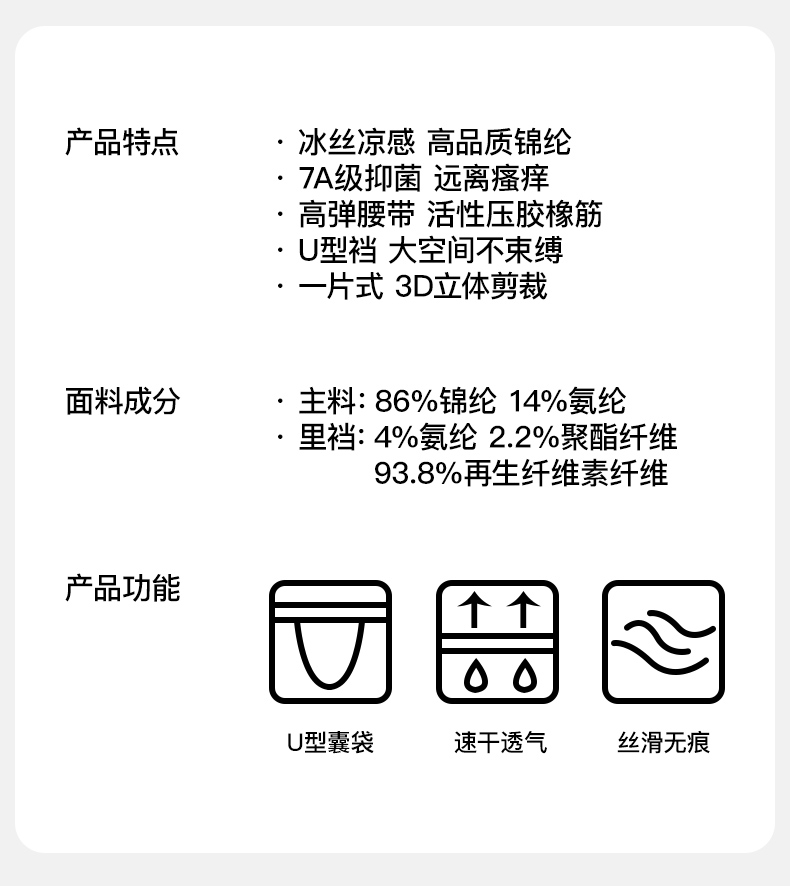 襠部材質成分 再生纖維素纖維93.8% 聚氨酯彈性纖維(氨綸)4% 聚酯纖維2.2%