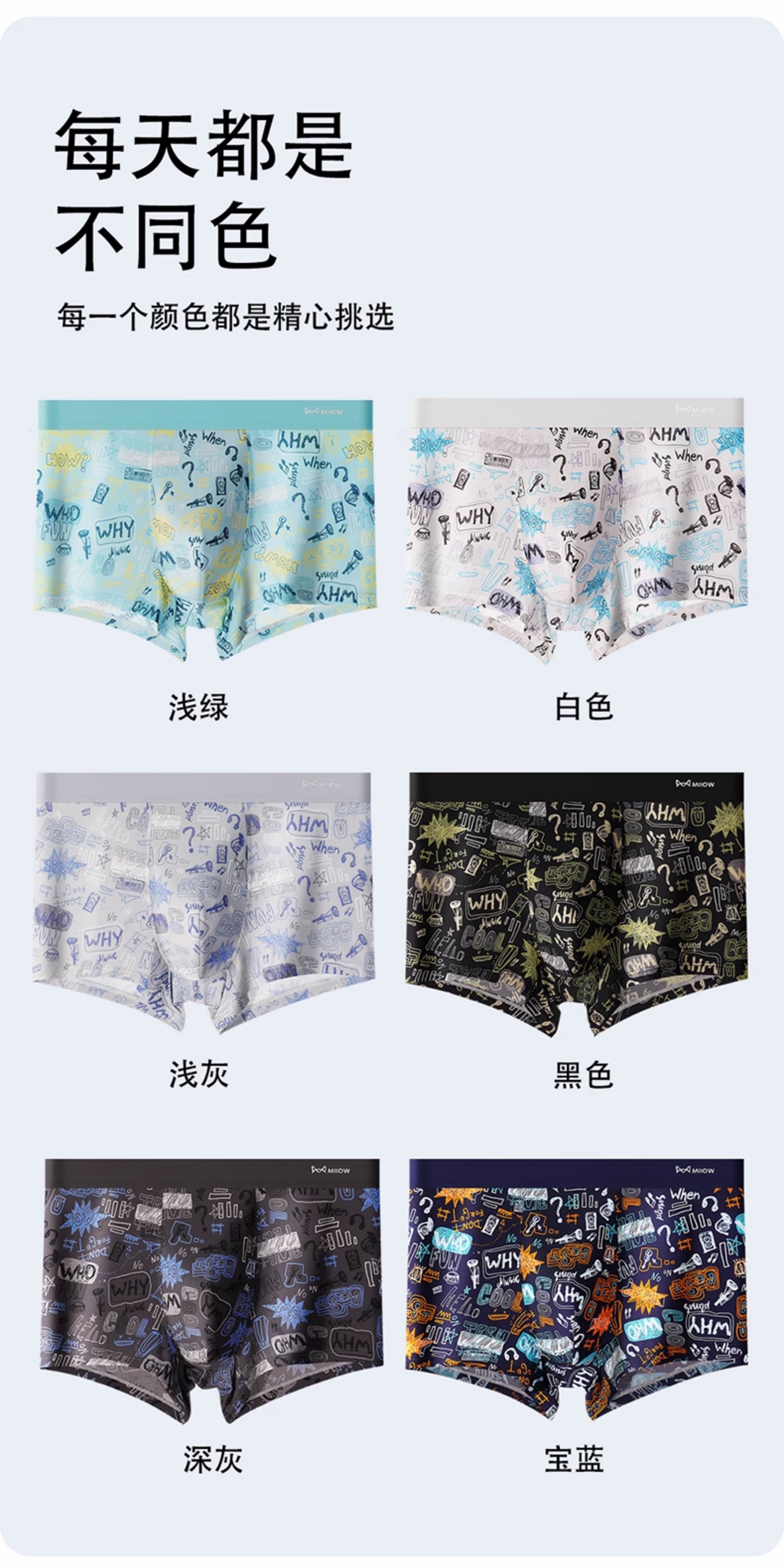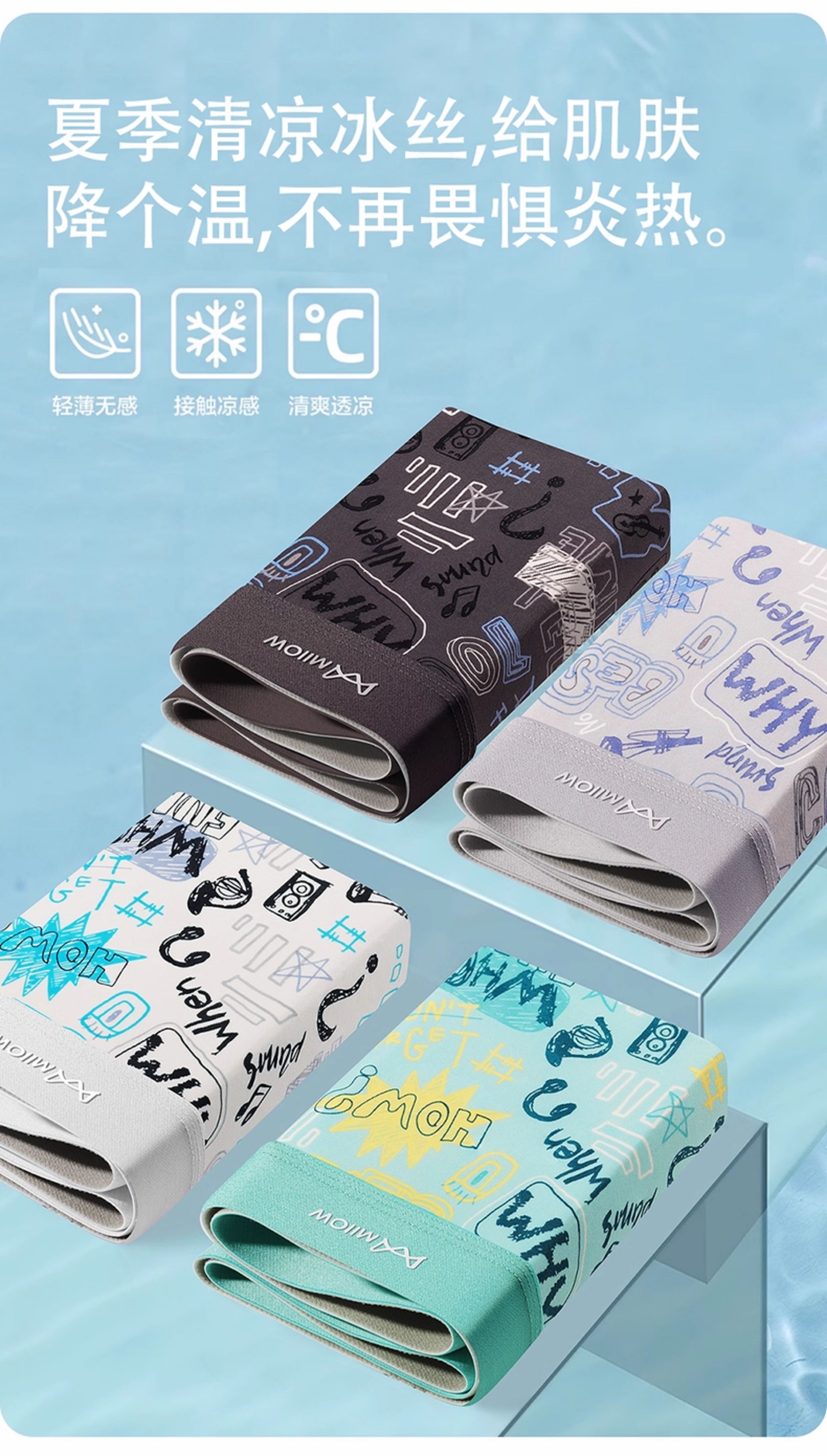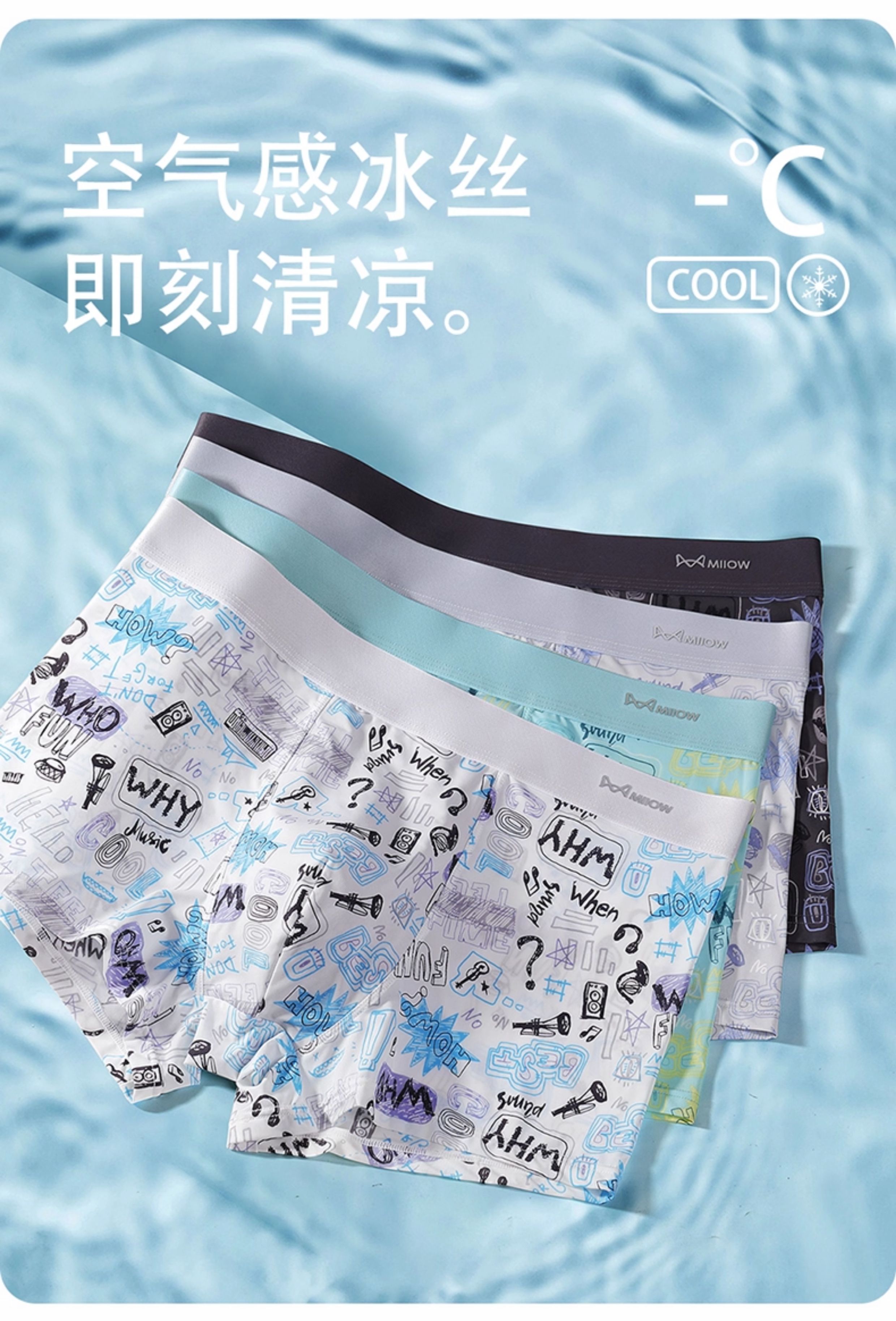 貓人男士內褲男生冰絲印花男式四角褲2025年新款青少年平角短褲頭