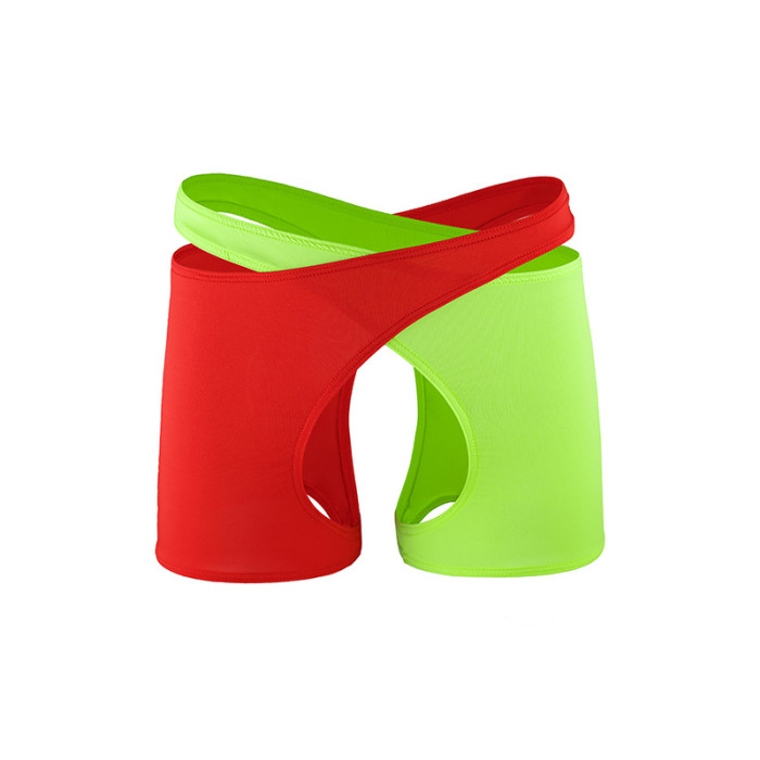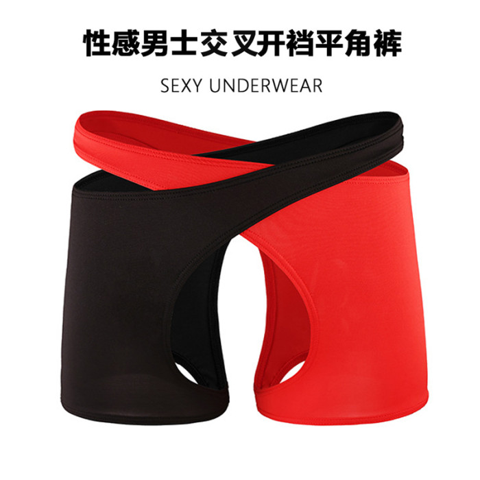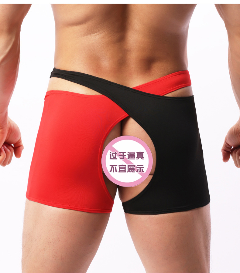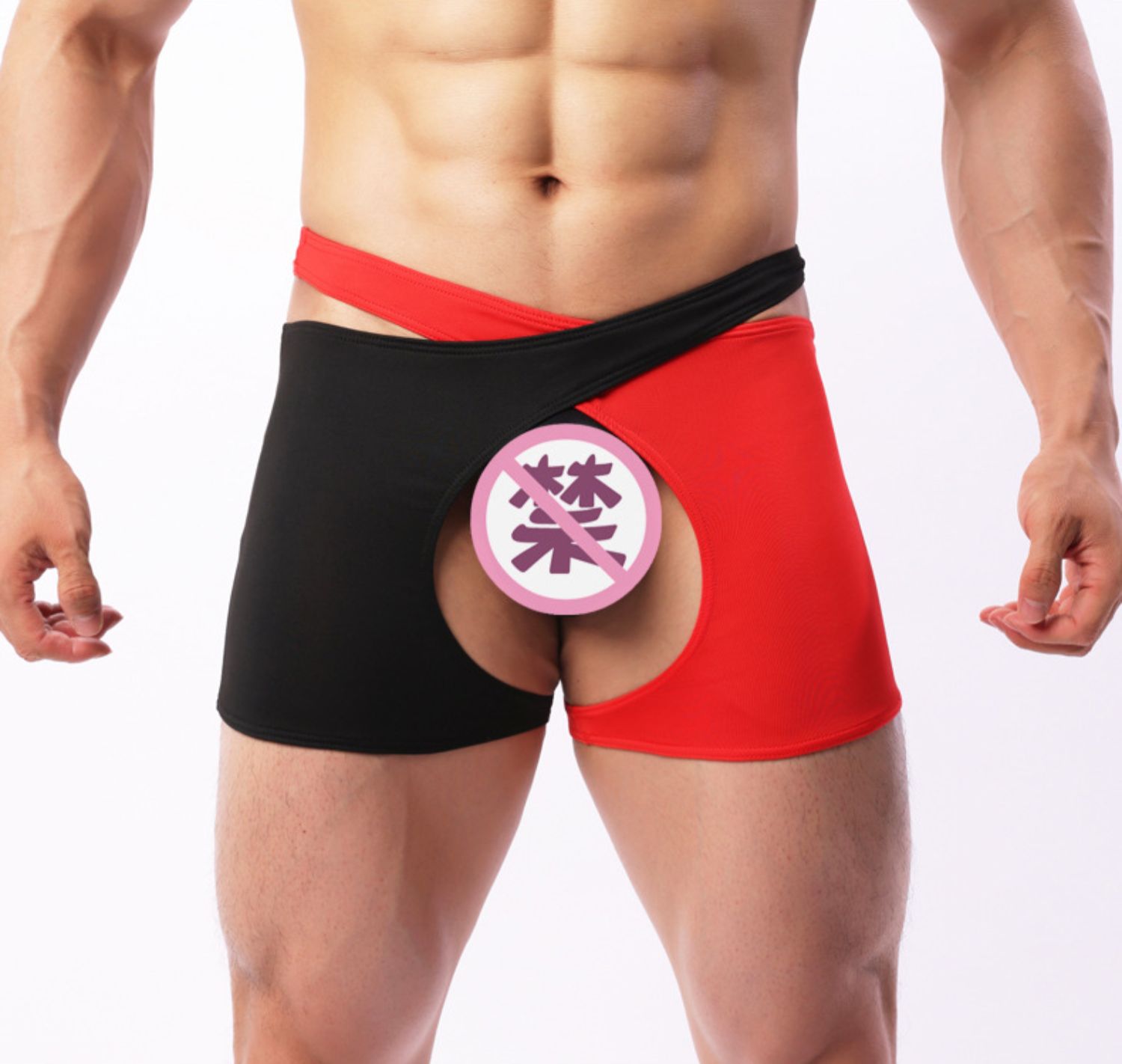 吉木家2025新款開襠個性平角內褲男士薄款透氣前後鏤空男生丁字褲