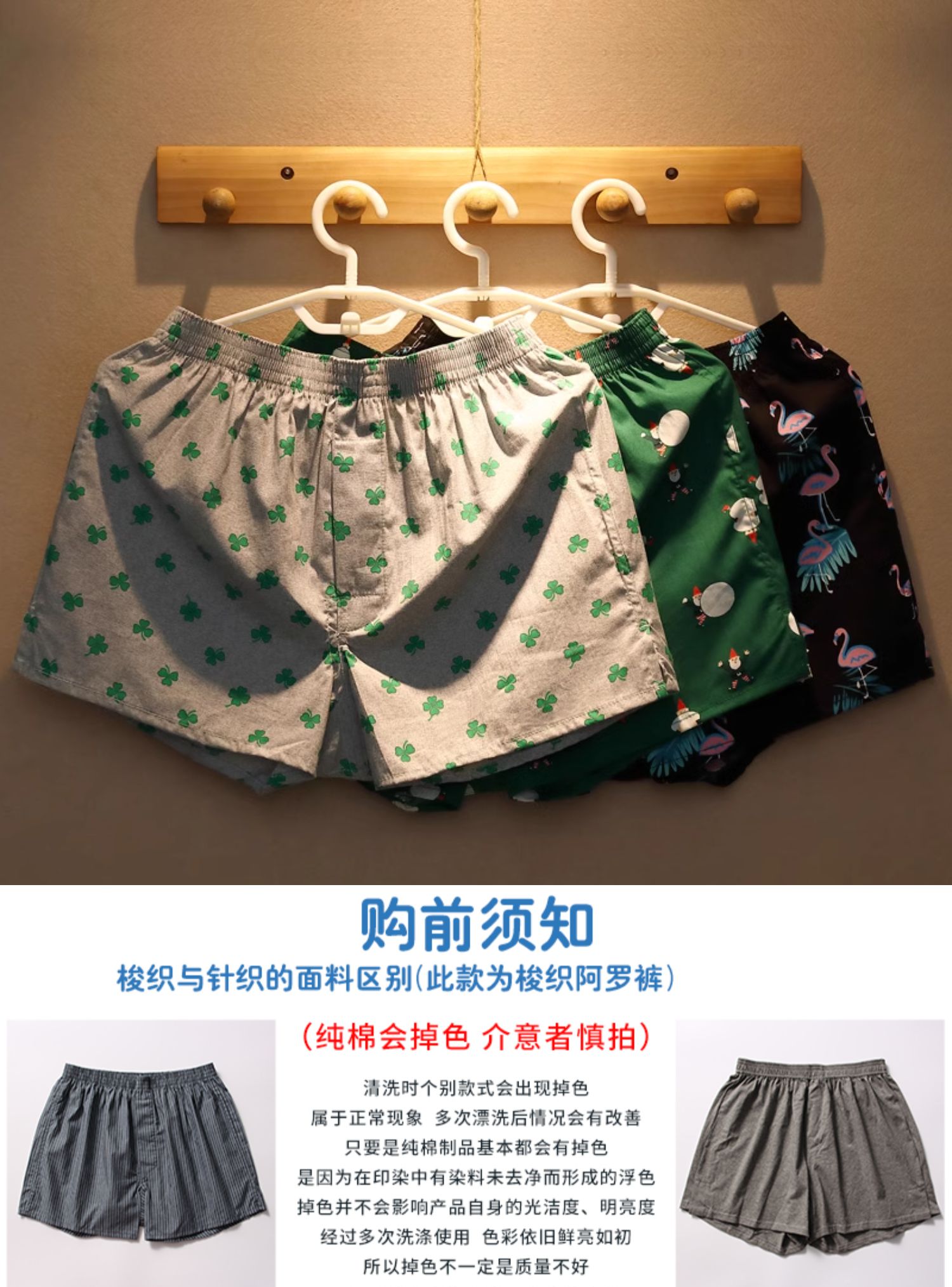寬松男士內褲男阿羅褲純棉平角褲衩夏季透氣居家休閒睡褲四角短褲