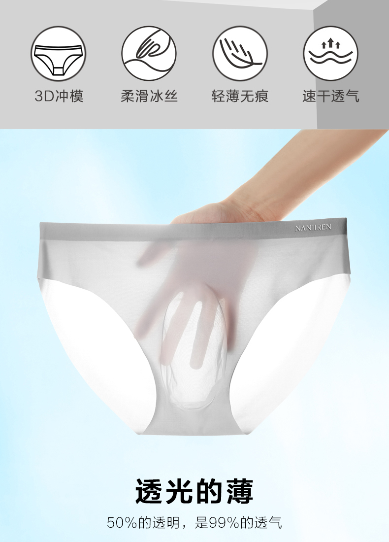 南極人男士內褲男生冰絲無痕三角褲透明性感男款夏季薄款2025新款