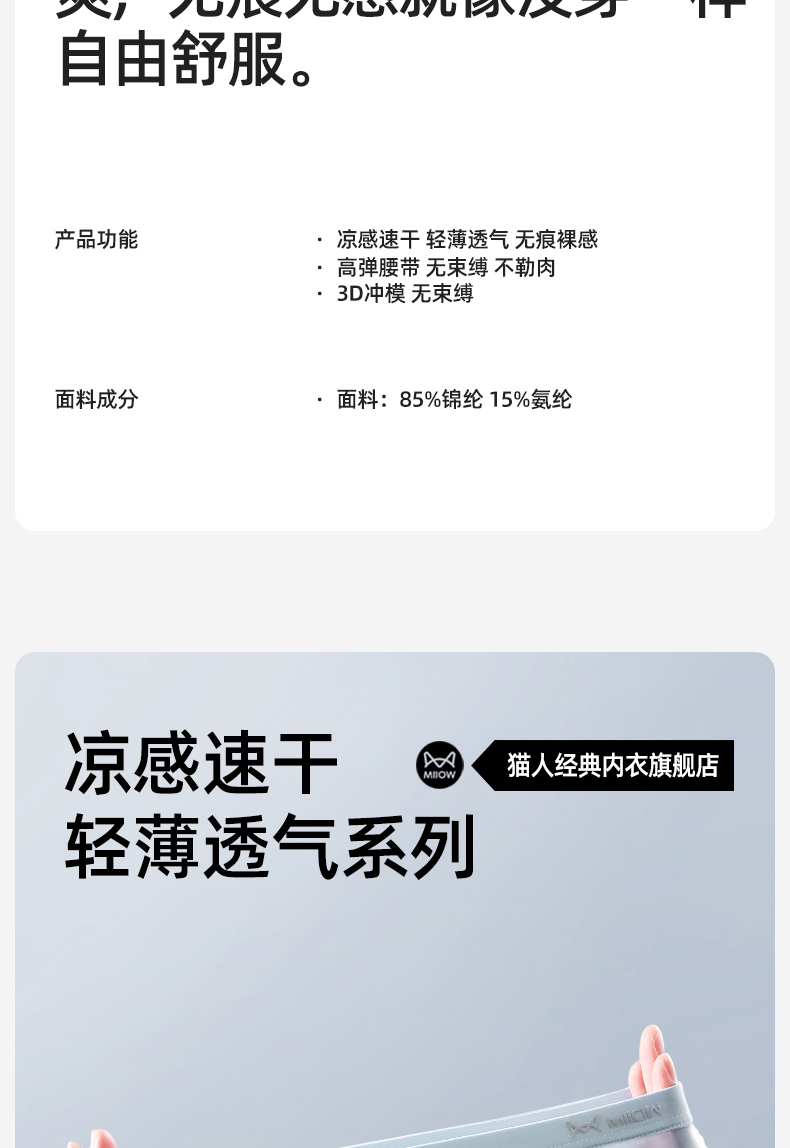 貓人冰絲男士內褲超薄男生四角短褲男款運動透氣抗菌無痕平角褲衩