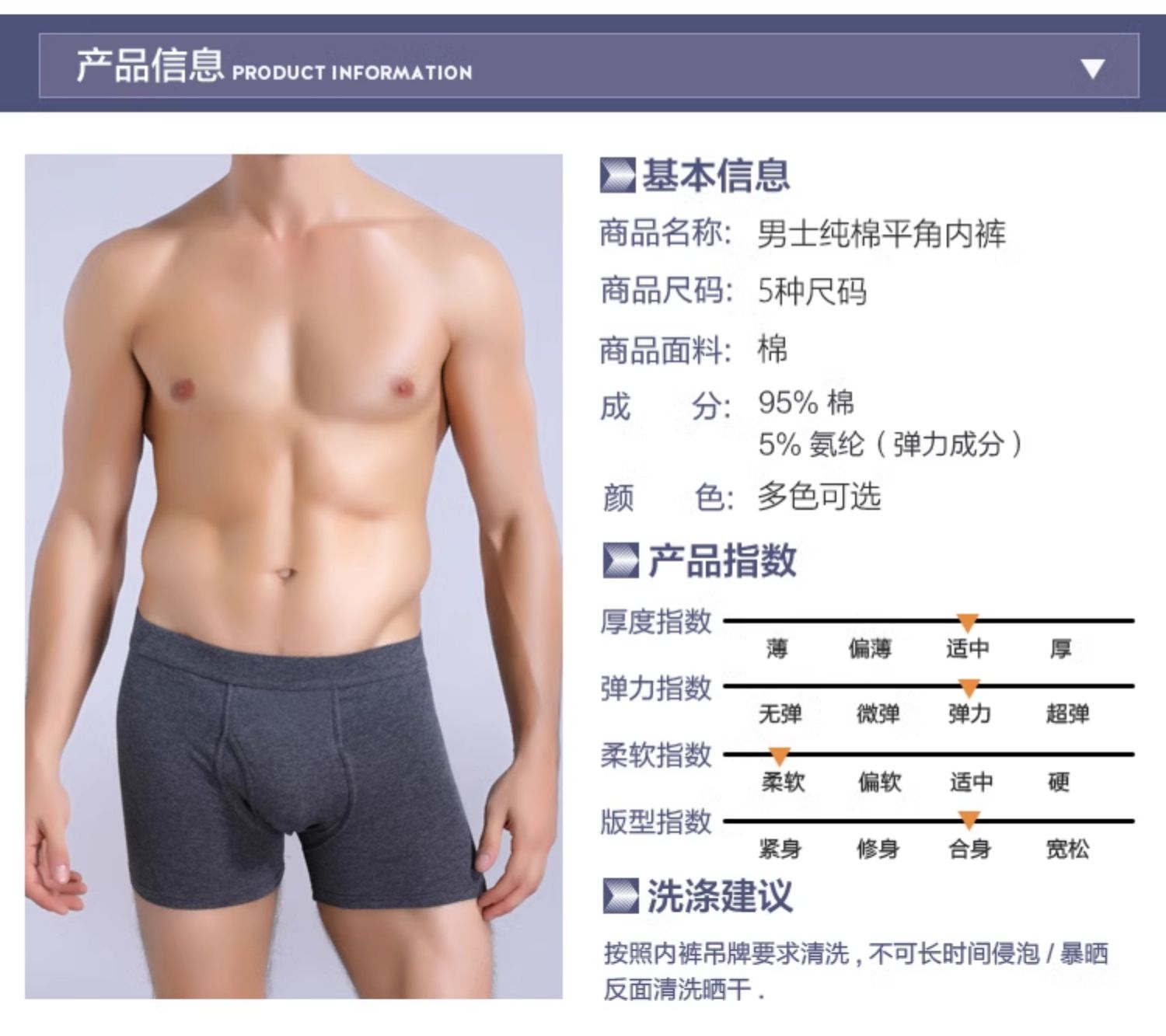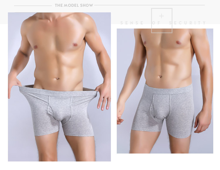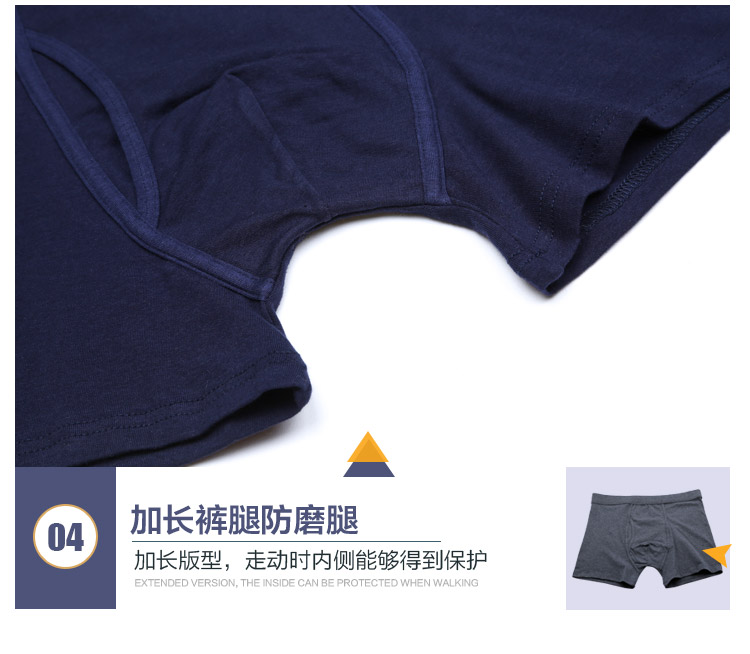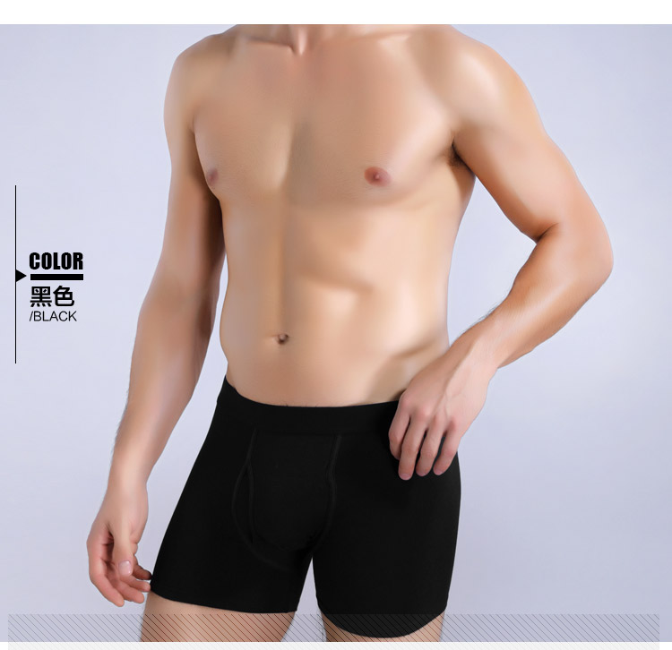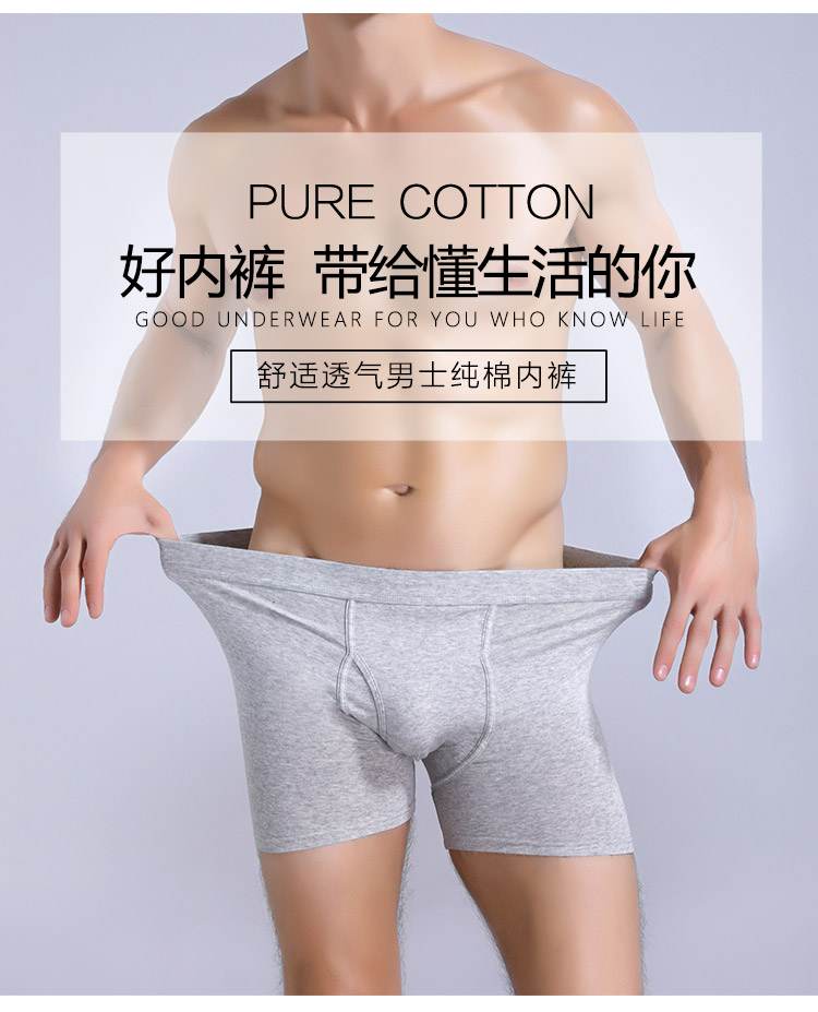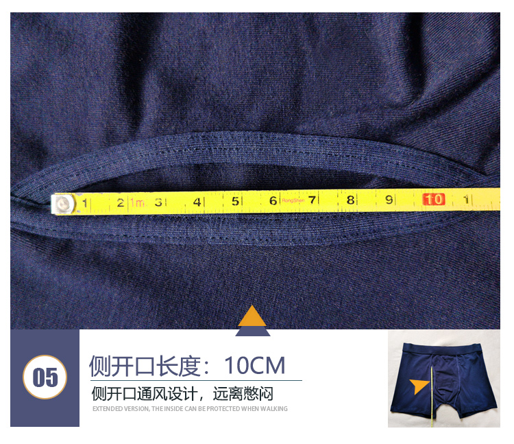 男士內褲純棉高腰前開洞加長款防磨腿平角褲側開口開襠四角短褲頭