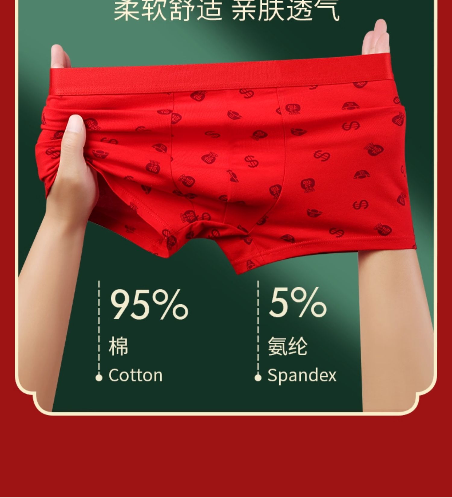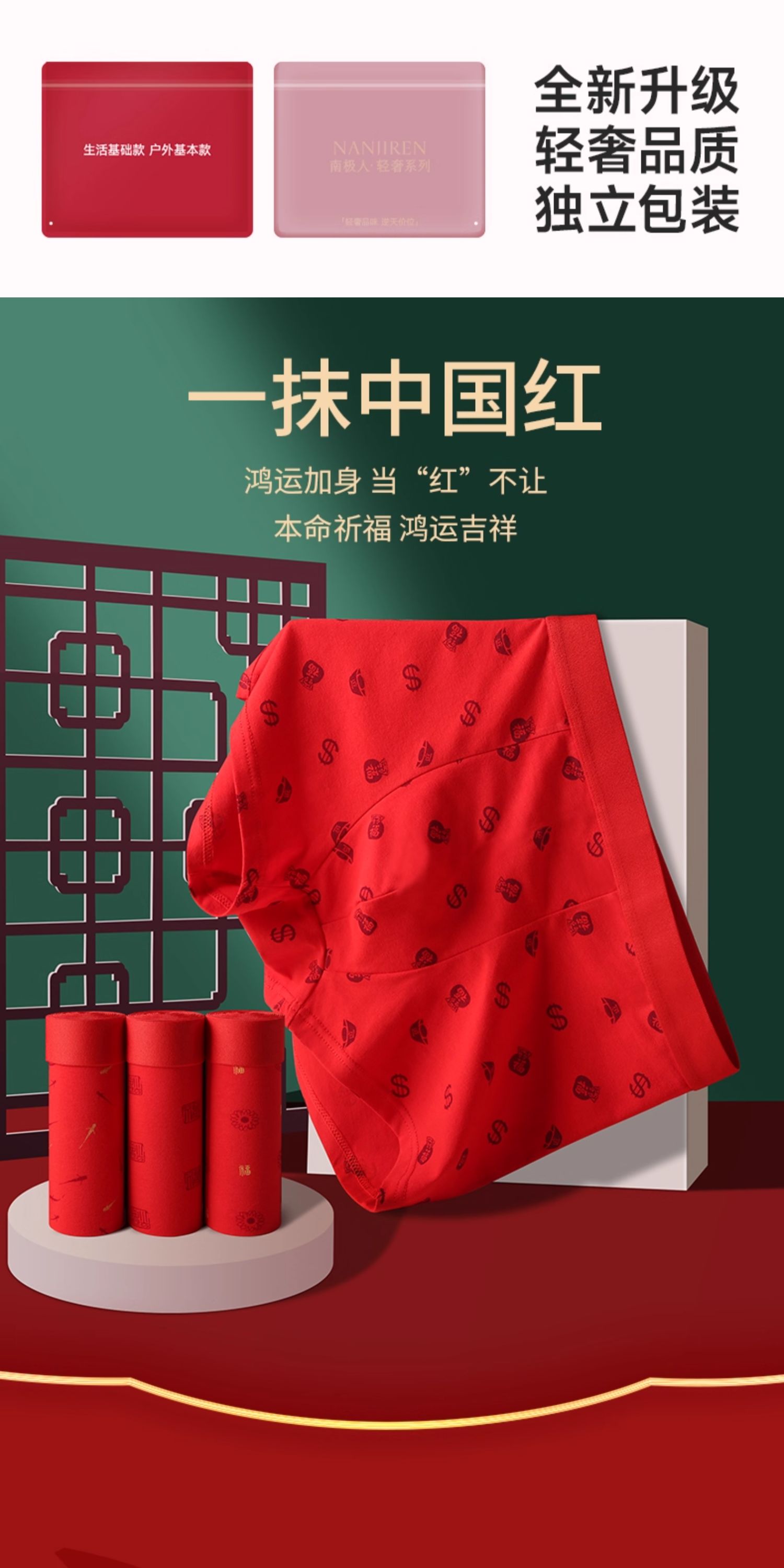 南極人男士內褲男生本命年純棉紅色四角平角短褲頭屬馬年禮物男款