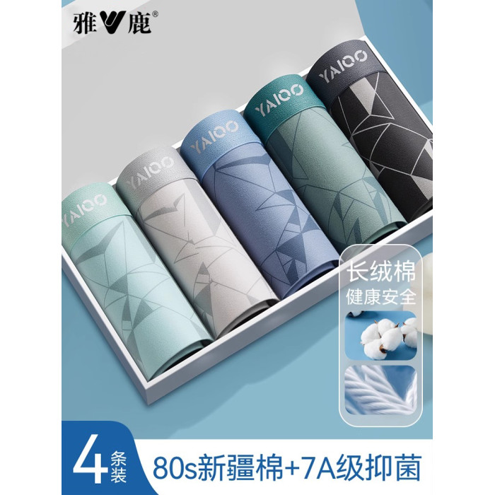 雅鹿男士內褲純棉平角短褲頭男生夏季薄款抗菌100%全棉襠四角褲衩