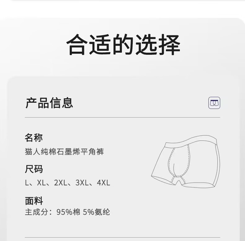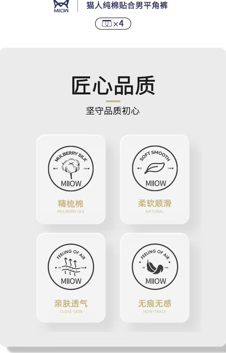 貓人全棉抑菌內褲男士無痕大碼平角褲厚款男生條紋棉印花四角褲