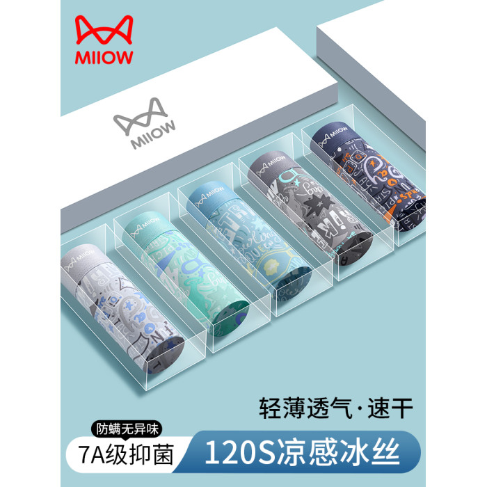 貓人冰絲男士內褲夏季薄款男生四角短褲頭青少年透氣2025新款平角