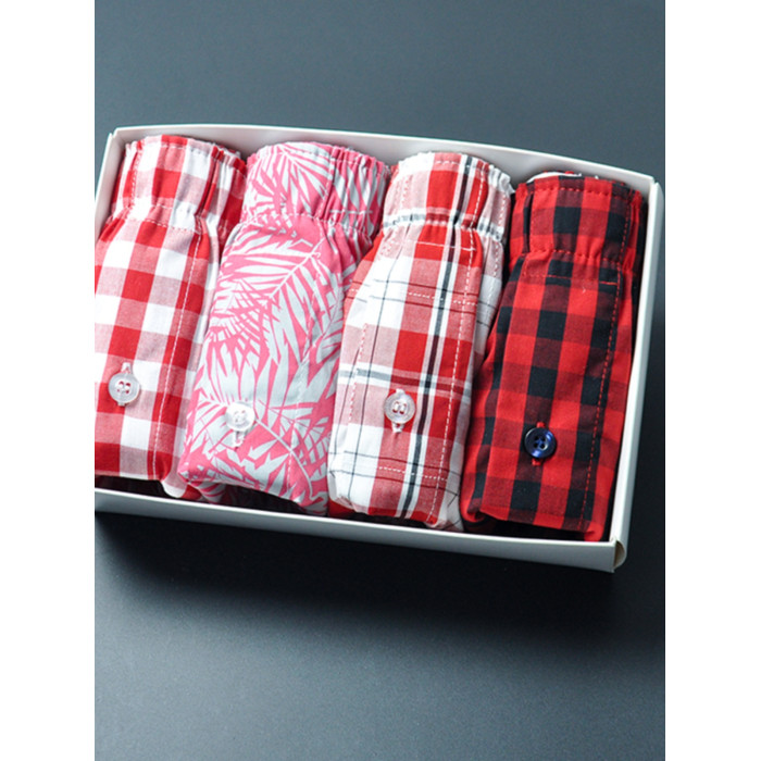 阿羅褲純棉寬松大碼本命年牛年大紅格子吉祥如意平四角內褲四條裝