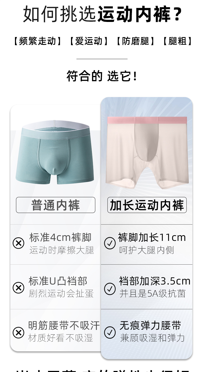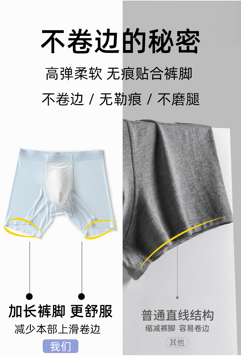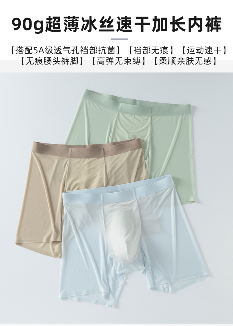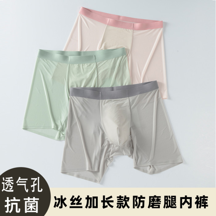 冰絲男士內褲加長款防磨腿運動四角褲無痕長腿跑步速乾平角褲夏季
