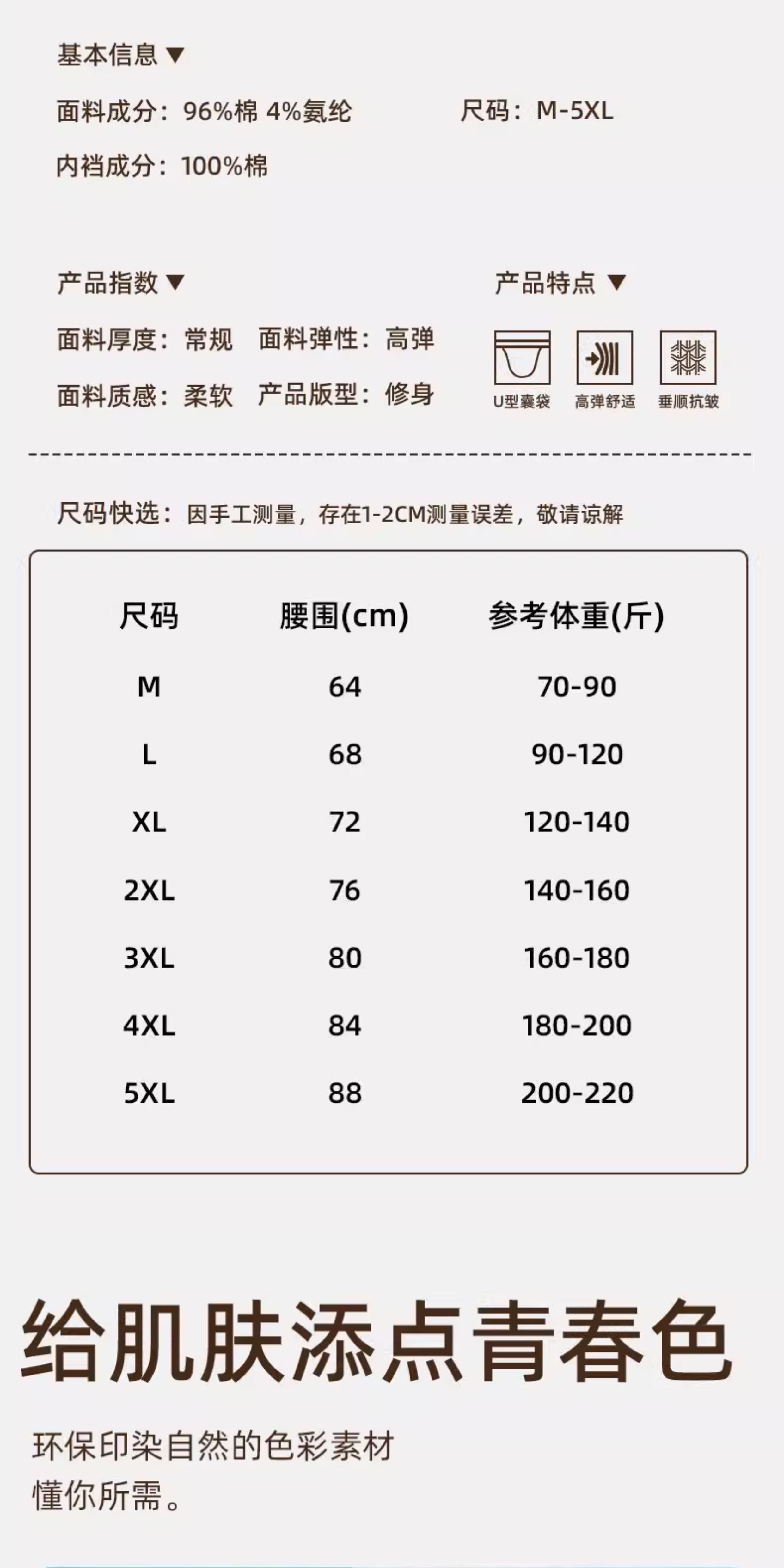 | 大身材質成分 | 棉96% 聚氨酯彈性纖維(氨綸)4% |