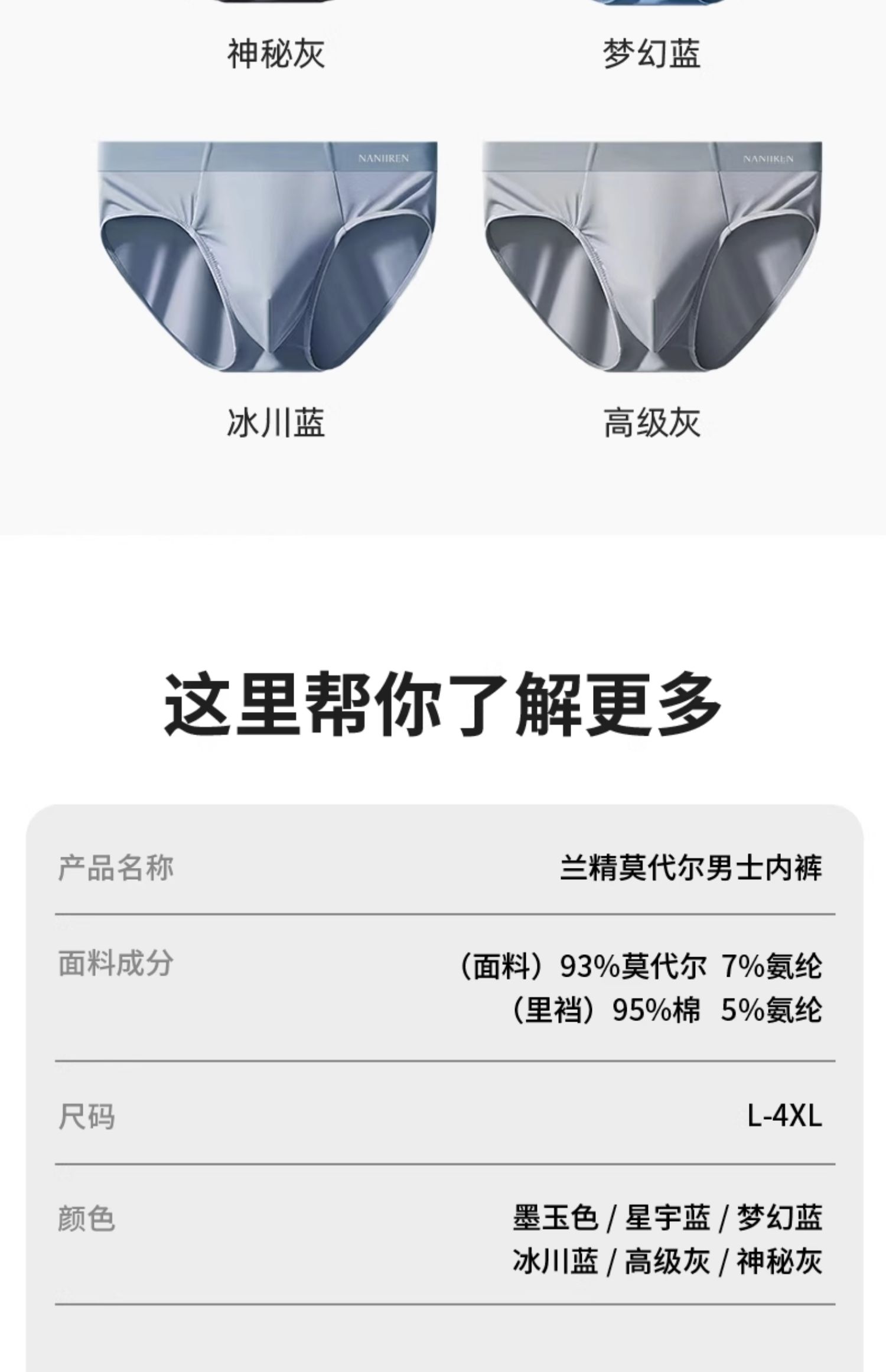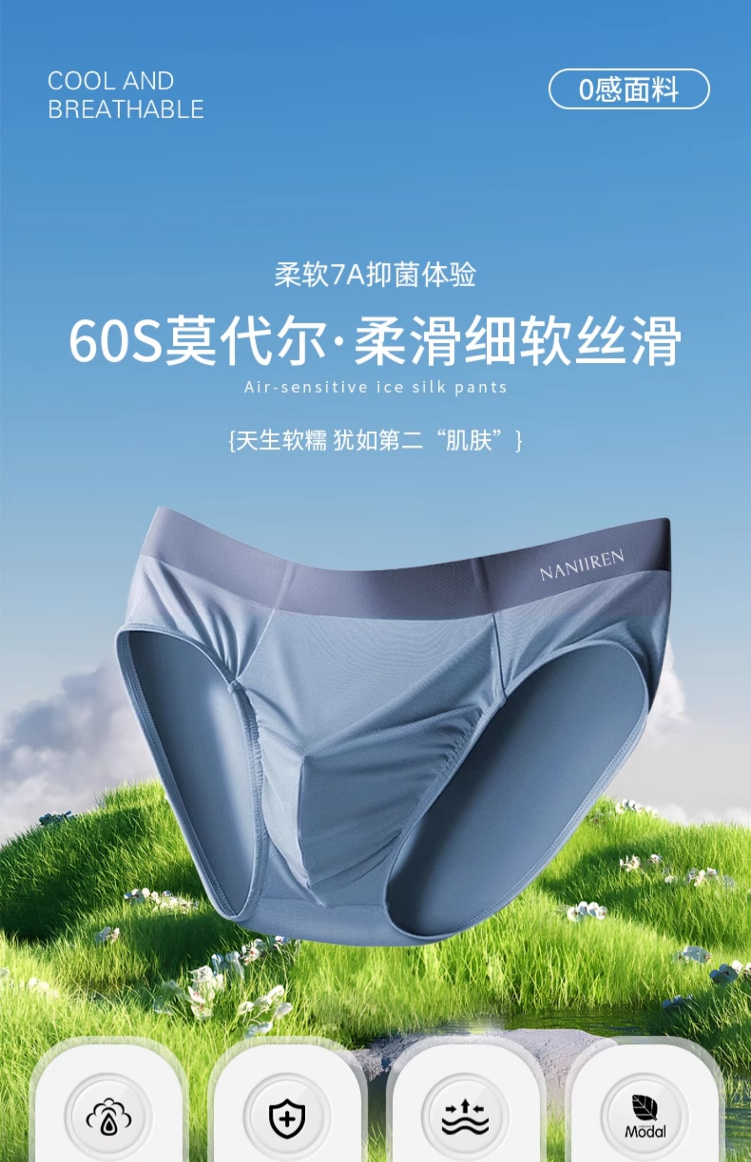 南極人內褲男士莫代爾無痕三角褲頭冰絲男生短褲2025新款夏季薄款