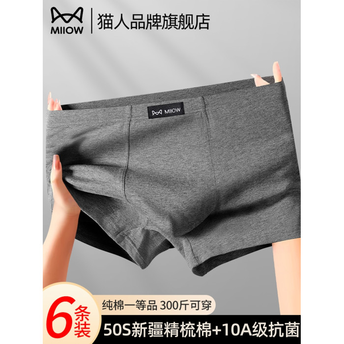 貓人男士內褲純棉男生夏季抗菌透氣男式大碼平角四角短褲衩子男款