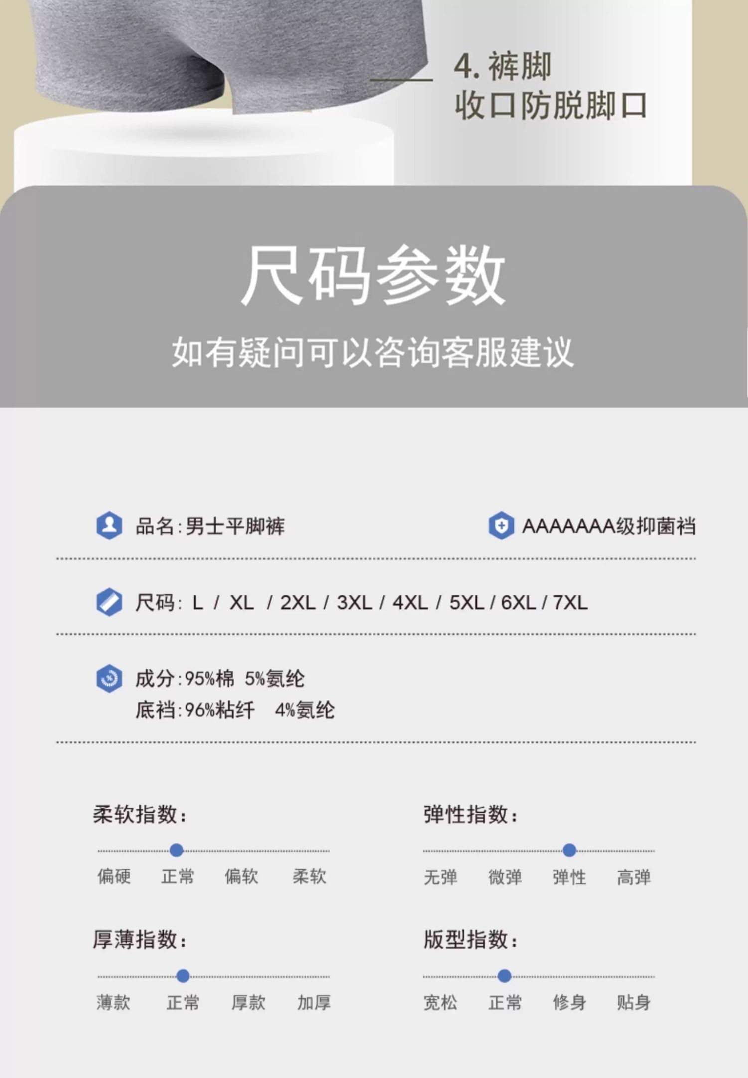 | 大身材質成分 | 棉95% 聚氨酯彈性纖維(氨綸)5% |