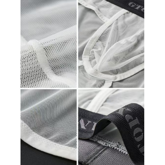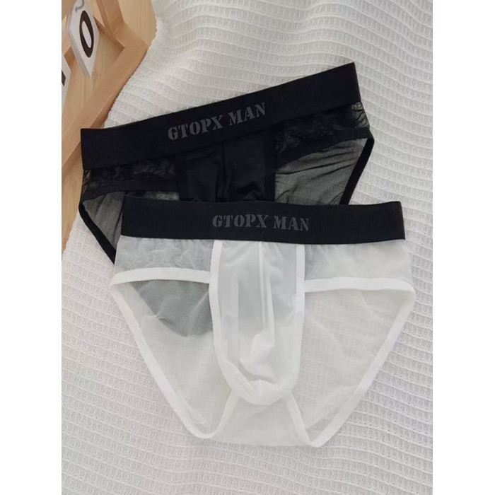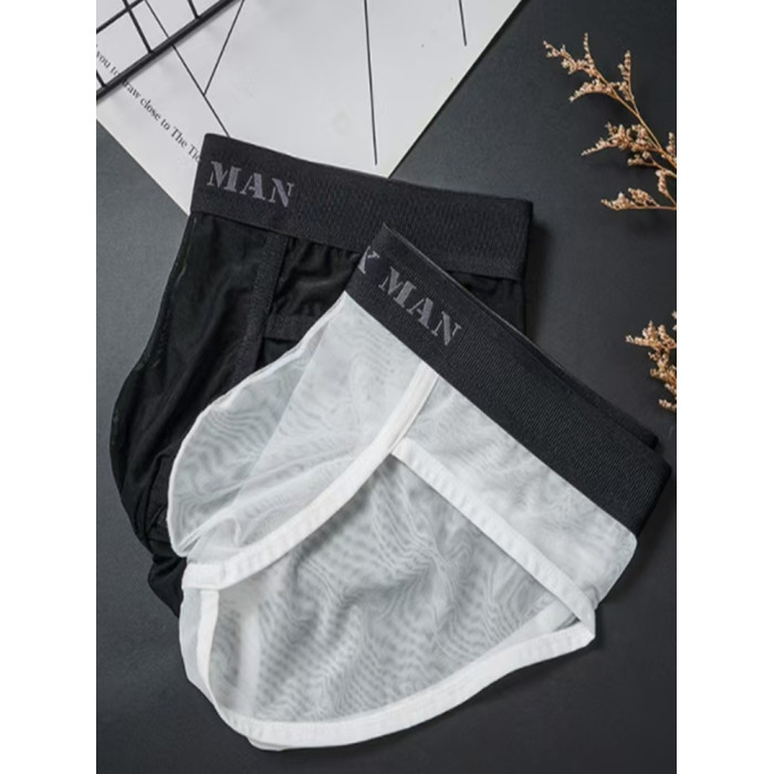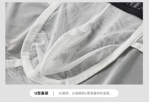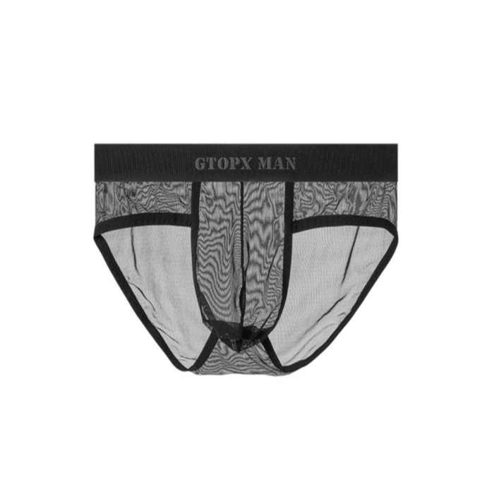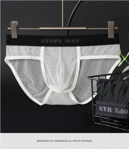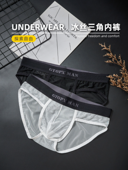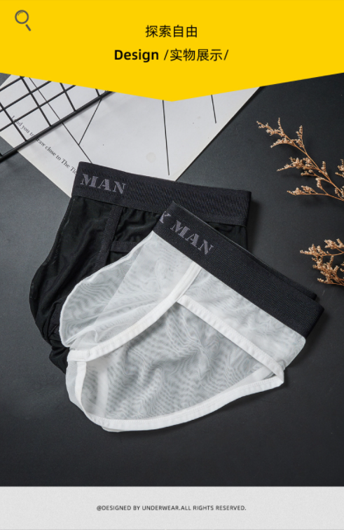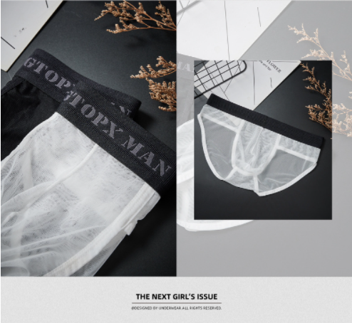 男士內褲2025新款冰絲 無痕三角低腰性感超薄U凸囊袋網紗蕾絲內褲