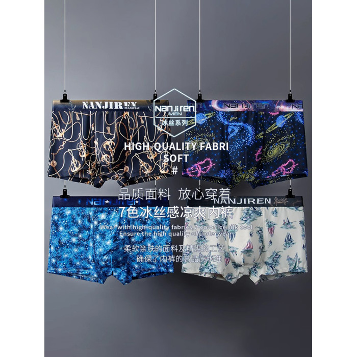 南極人男士內褲冰絲透氣平角2025新款青少年運動大碼寬松四角褲衩