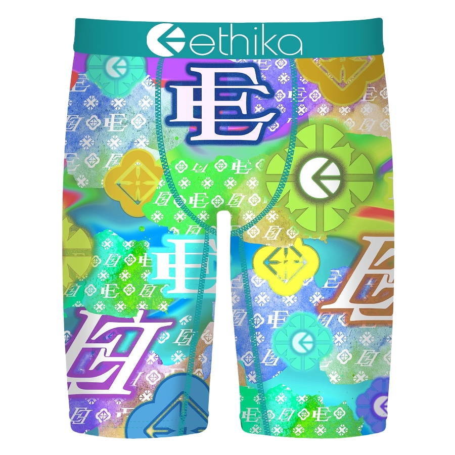 Ethika男士內褲冰絲加長褲衩子北美潮流個性印花運動男生四角短褲